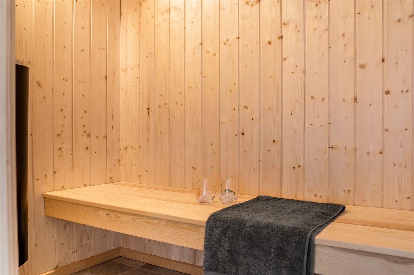 Er is 2 badkamers met douchehok en 2 toiletten. Er is vloerverwarming in 2 van de badkamers. De sauna biedt de gelegenheid tot ontspanning.