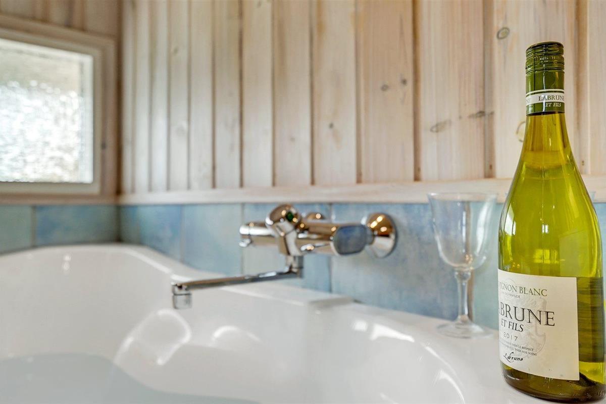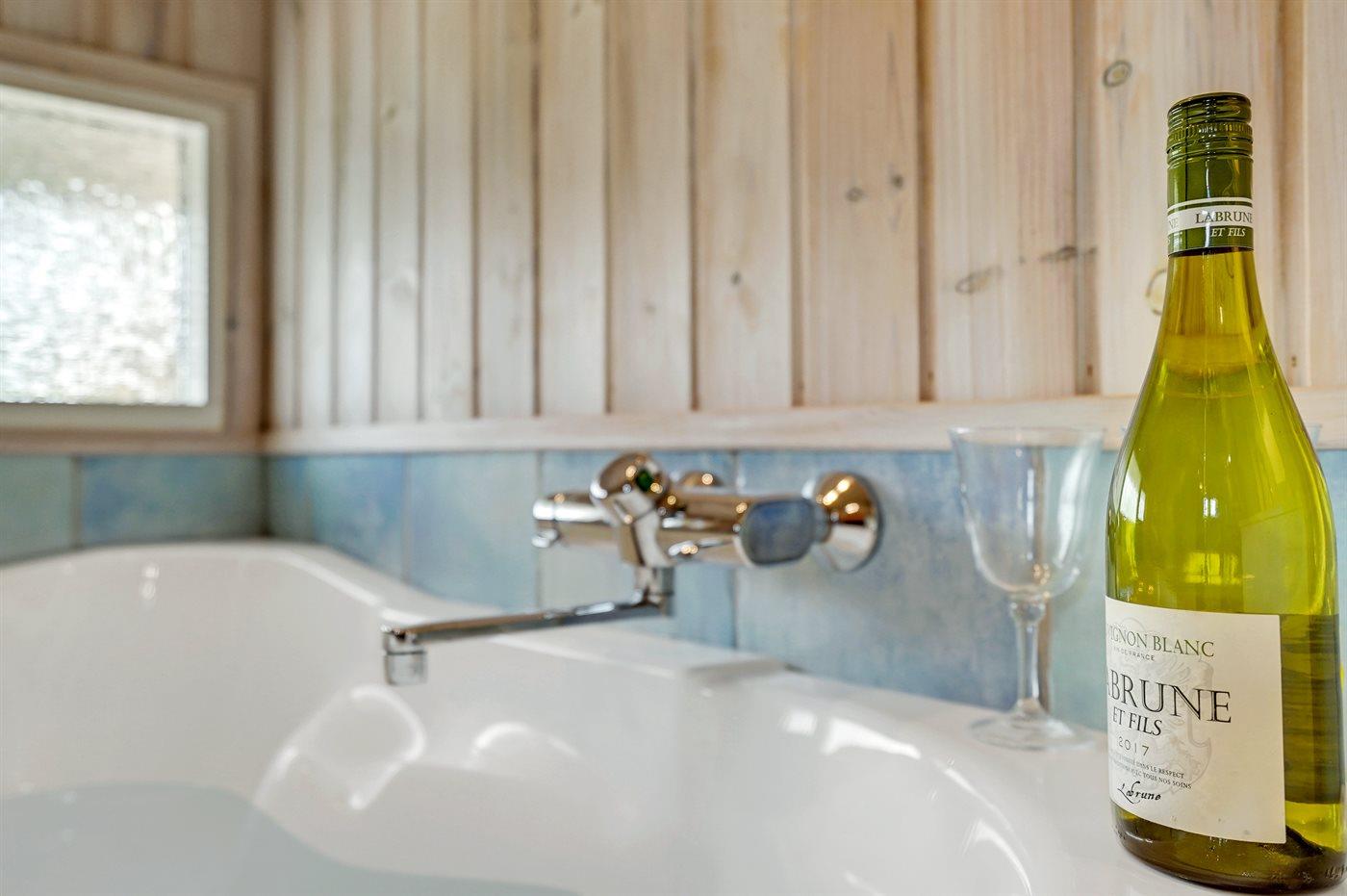 Het binnenbubbelbad (vulwater) biedt ontspanning aan 2 personen.