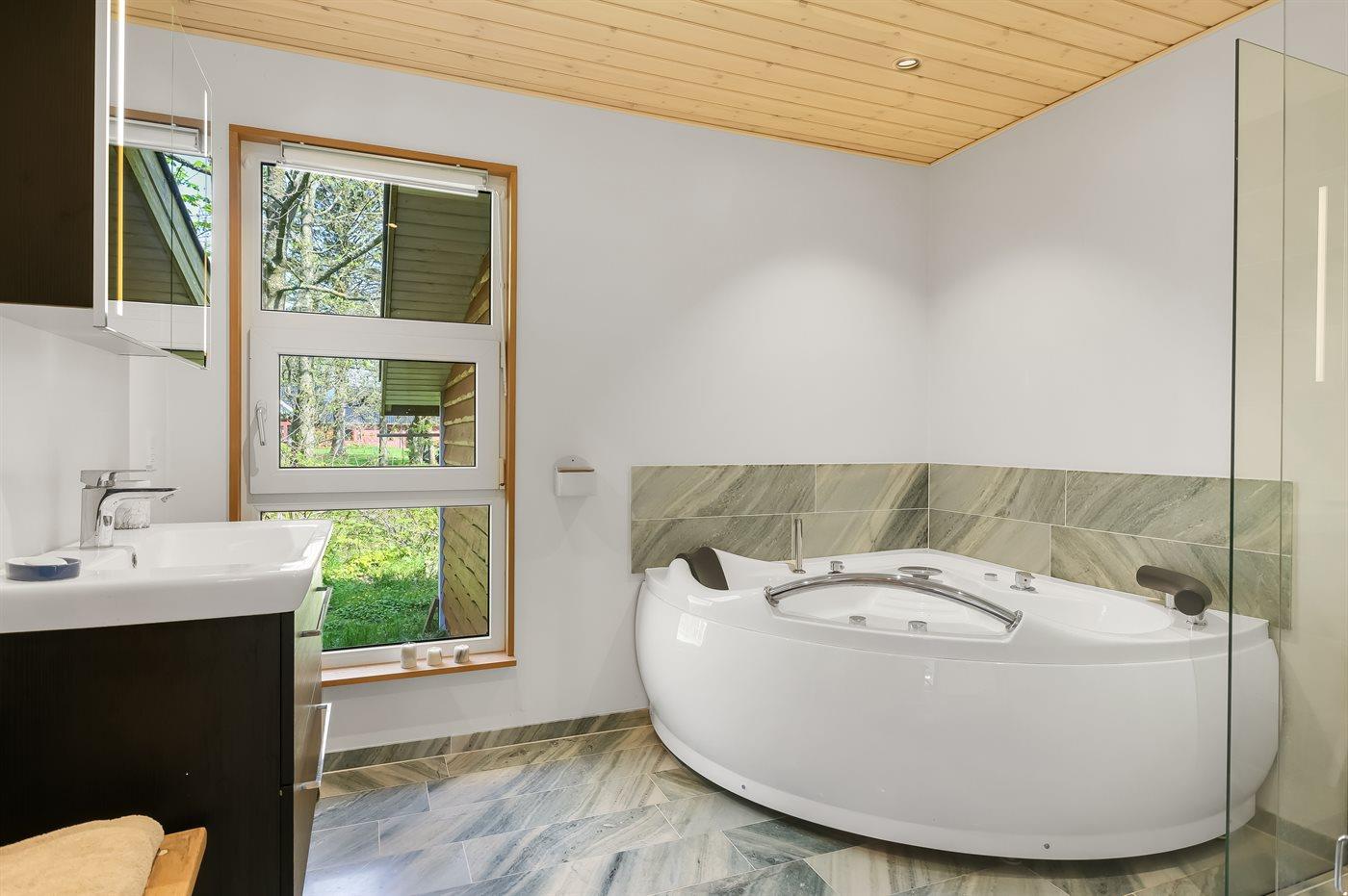 Er is 1 badkamer met douchehok en 2 toiletten. Er is vloerverwarming in 1 badkamer. Er is vloerverwarming in het gastentoilet.