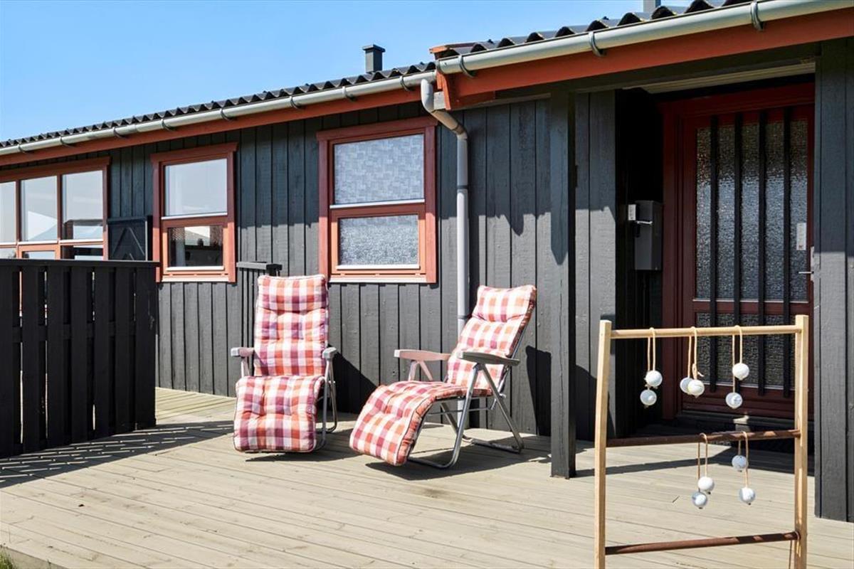 Wenn das gute Wetter Sie nach draußen lockt, haben sie mehrere schöne Orte zur Auswahl. Um das Haus herum sind mehrere Holzterrassen angelegt, sodass Sie zu jeder Tageszeit eine hyggeliges Sonnenplätzchen finden. Wenn Sie mehr Lust auf Schatten haben, gibt es auch mehrere überdachte Terrassenflächen. Alternativ können Sie die Sonnenstunden auch mit einer Runde Kubb/Wikingerschach oder beim Fußballspielen auf dem Rasen verbringen.