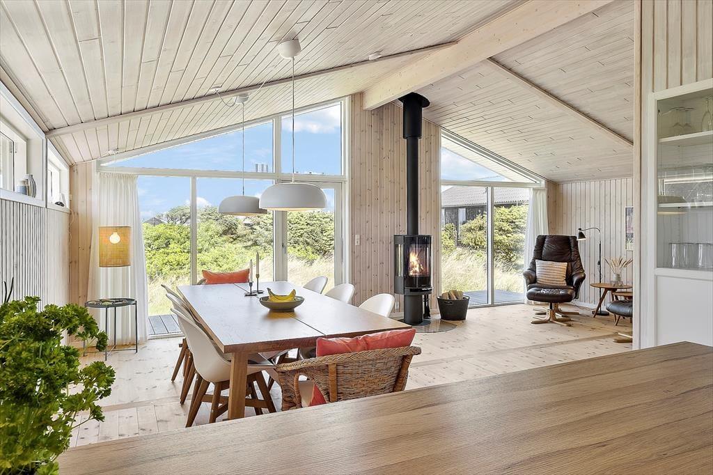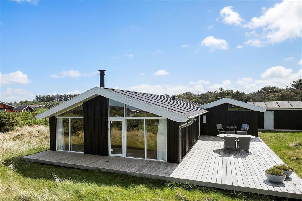 Das 117 m² umfassende Urlaubsdomizil wurde bereits im Jahr 1980 errichtet. Nach einer umfassenden Renovierung in 2020 präsentiert es sich nunmehr richtig schön und einladend. Das geräumige Badezimmer beinhaltet eine Duschnische, eine Waschmaschine und eine Fußbodenheizung. Dank der guten Küchenausstattung wird die Zubereitung der Mahlzeiten zum reinen Vergnügen. Die Küche ist offen in den Wohnraum integriert, sodass Sie nur wenige Schritte vom schönen Essplatz trennen. Selbstverständlich können Sie Ihre Mahlzeiten auch auf der leicht zugänglichen Terrasse servieren. Der Wohnraum verzaubert mit einer schönen Wohnatmosphäre, der behaglichen Wärme des Kaminofens und der komfortablen Möblierung. Es gibt drei Schlafräume, die allesamt mit je einem Doppelbett eingerichtet sind.