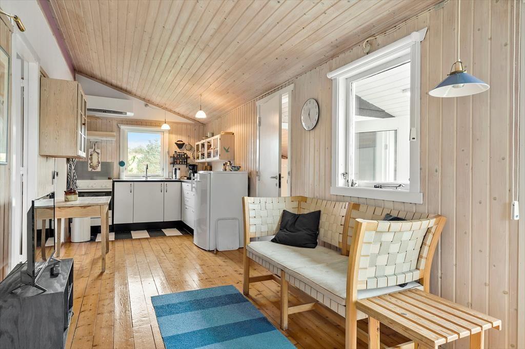Es liegen nur einige wenige Ferienhäuser am kleinen, geschlossenen Polarhundsvej, dadurch genießen Sie Ruhe und Frieden und einen guten Abstand zum nächsten Nachbarn. In der Nähe des Hauses führt eine Treppe hinunter zum Strand, falls Sie in der Nordsee ein Bad nehmen möchten. Darüber hinaus können Sie gemeinsam einen netten Spaziergang zum Skallerups Seaside Resort unternehmen. Mit dem Auto dauert es keine zehn Minuten zur beschaulichen Küstenstadt Lønstrup, die unter anderem für ihre spannenden Galerien und Kunsthandwerkstätten und -läden bekannt ist. Etwas weiter die Küste hinunter finden Sie die Wanderdüne Rubjerg Knude mit dem malerischen Leuchtturm, die auf jeden Fall einen Besuch wert ist.