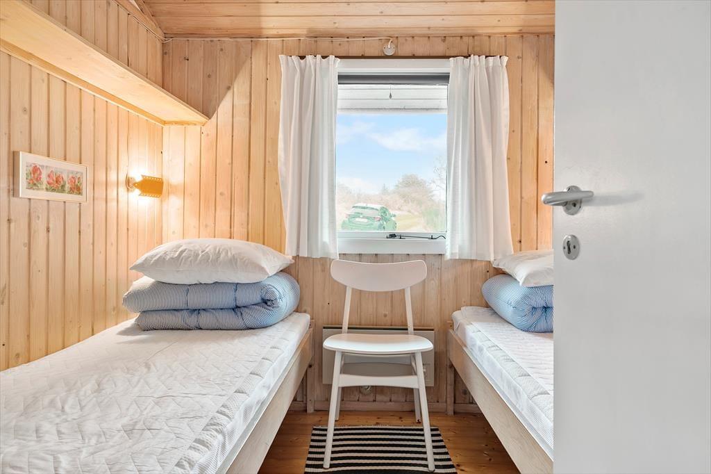 Das Ferienhaus ist 63 m² groß und bietet Raum für fünf Personen. Sie werden von einem kleinen Eingangsbereich begrüßt, von dem aus Sie über wenige Treppenstufen in den Aufenthaltsraum gelangen. Dieser besteht aus einem offenen, mit der Küche verbundenen Wohnzimmer, somit werden Sie die Entspannungsphasen des Tages und die gemeinsamen Stunden sicher hier verbringen. Der Esstisch steht direkt an einem großen, nach Südwesten ausgerichteten Fenster, sodass Sie während des Essens einen freien Blick auf die Landschaft haben. Nach dem Essen dürfen Sie alle die Ärmel hochkrempeln, denn es ist kein Geschirrspüler vorhanden - allerdings können Sie während des Abwaschs die Aussicht genießen. Der Abend kann auf dem Sofa vor dem Kaminofen verbracht werden, vielleicht mit einem Film auf dem Flachbildfernseher. Und wenn es ins Bett gehen soll, können Sie sich auch die drei Schlafräume des Hauses verteilen. Zudem bietet das Ferienhaus Ihnen ein Badezimmer mit einer Dusche.