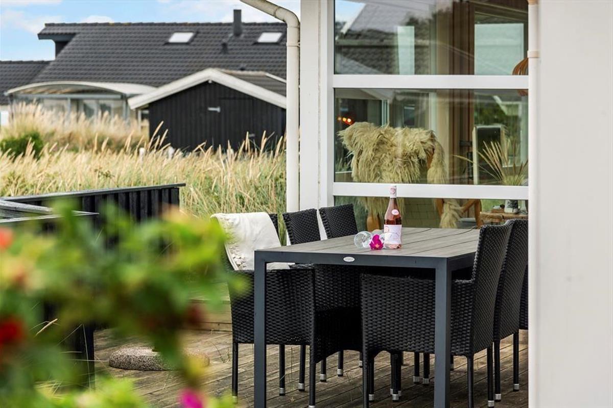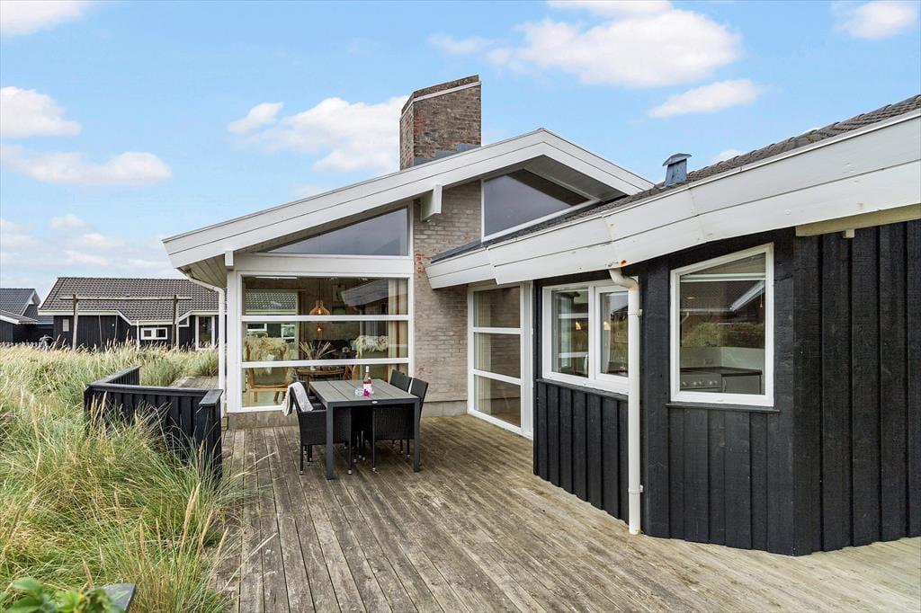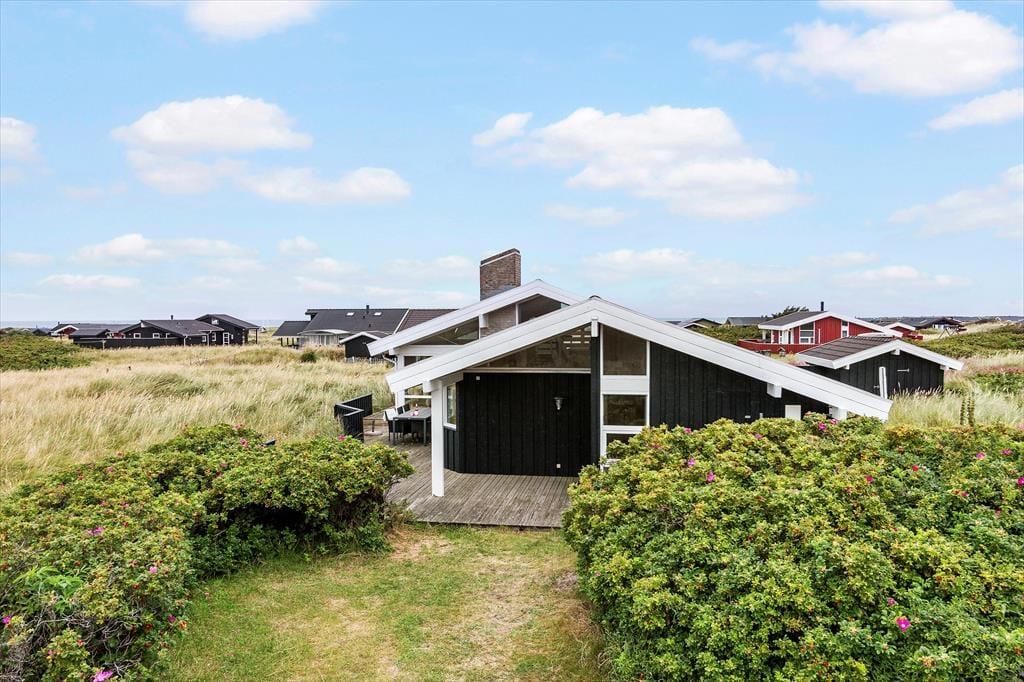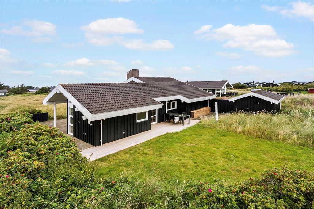 Die Außenbereiche des Hauses sind perfekt für lange, entspannte Tage unter freiem Himmel. Eine schöne Terrasse umgibt das Ferienhaus und bietet zahlreiche Möglichkeiten, sowohl Sonne als auch Schatten zu finden. Mit einem Grill, bequemen Gartenmöbeln und Liegestühlen lässt es sich hier leicht stundenlang verweilen, begleitet vom Vogelgezwitscher und frischer Luft. Kinder können sich auf dem großen Naturgrundstück austoben, und die kurze Entfernung zu Strand und Dünenlandschaft macht kleine Wanderungen zu Fuß einfach und angenehm.
