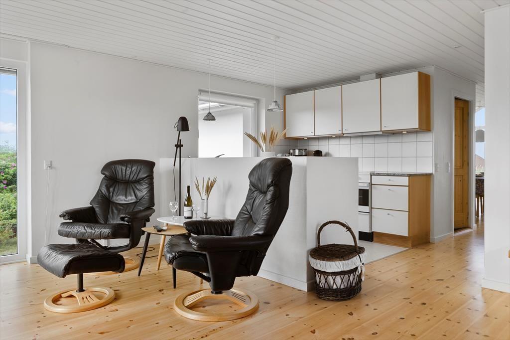 Im Inneren des Hauses erwartet Sie ein offenes und lichtdurchflutetes Wohnzimmer, in dem Wohnzimmer und Küche eine gemütliche und funktionale Raumaufteilung bilden. Die großen Fenster im Wohnzimmer lassen viel Licht herein und bieten einen wunderschönen Blick auf die Natur, während Sie den Meerblick vom Essbereich aus genießen können. Das Haus verfügt über drei komfortable Schlafzimmer, in denen Sie nach einem Tag voller Aktivitäten zur Ruhe kommen können. Die helle und einladende Einrichtung sorgt für ein Gefühl von Wärme und Komfort, sodass sich sowohl Kinder als auch Erwachsene rundum wohlfühlen. Das angrenzende Anbauhäuschen bietet zusätzlichen Platz, ideal für Gäste oder ältere Kinder, und sorgt für Privatsphäre, wenn dies gewünscht wird.