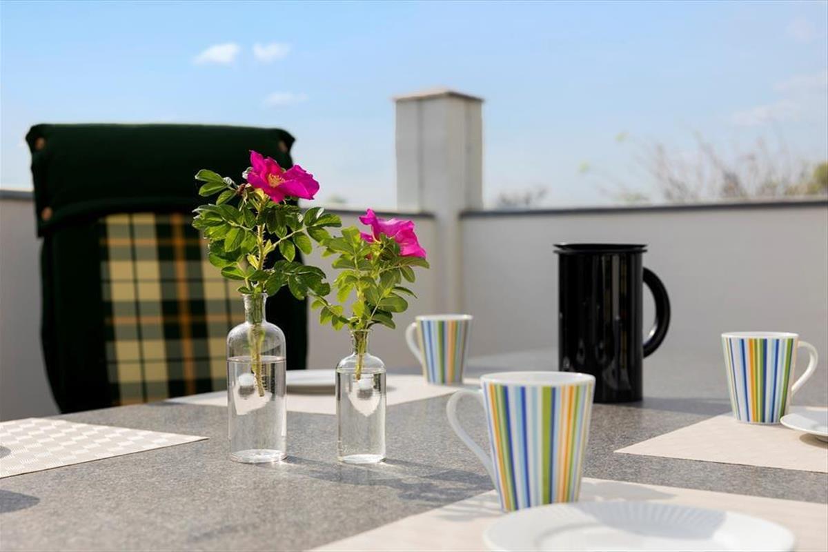 Draußen finden Sie mehrere herrliche Terrassen, auf denen Sie sich entspannen und die Sonne genießen oder im Schatten verweilen können. Es gibt eine nach Südwesten ausgerichtete Terrasse, die perfekt ist, um Mahlzeiten im Freien zu genießen, sowie eine nach Osten ausgerichtete Terrasse, auf der Sie Ihren Morgenkaffee genießen können. Vom Wohnzimmer und Schlafzimmer aus haben Sie direkten Zugang zu den Terrassen, sodass Sie die frische Luft jederzeit genießen können. Wenn Sie die Umgebung erkunden möchten, ist es nur ein kurzer Spaziergang zum Strand, wo Sie im erfrischenden Wasser schwimmen oder lange Spaziergänge entlang des breiten Sandstrandes machen können.