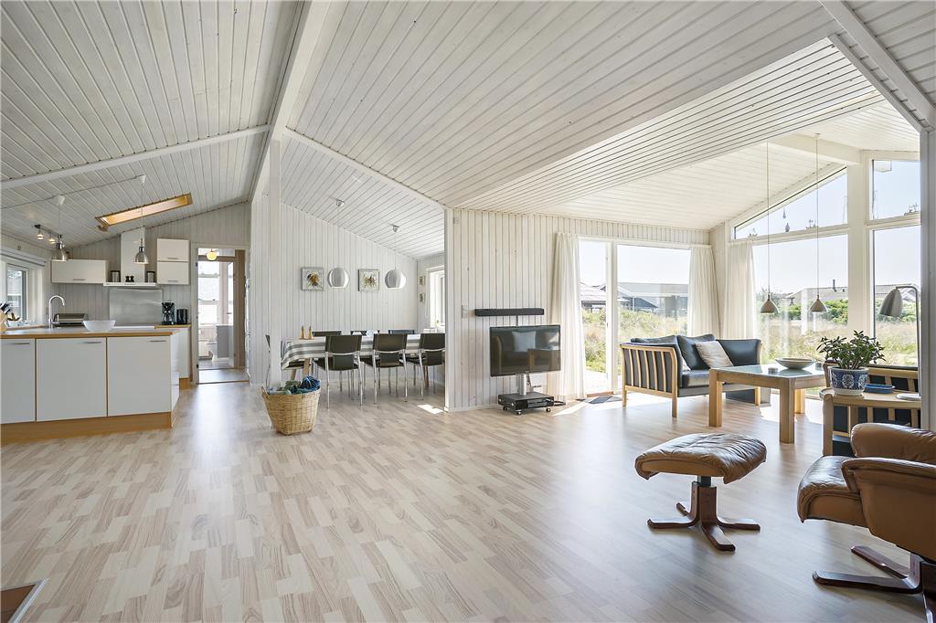 Das reizvolle Mietobjekt liegt etwas abseits des Strandes, auf einem großen Dünengrundstück mit dünentypischem Bewuchs. Von hier aus erreichen Sie innerhalb weniger Minuten zu Fuß das beliebte Skallerup Seaside Resort mit einem Badeland, einem Wellnesscenter, Reitmöglichkeiten und einem breitgefächerten, attraktiven Aktivitätenprogramm für Groß und Klein. Der beschauliche, alte Fischerort Lønstrup ist mit dem Auto ebenfalls schnell erreicht. Lønstrup besticht mit seiner ganz eigenen Atmosphäre, gemütlichen Restaurants und einer Vielzahl von arbeitenden Werkstätten und Galerien der hier ansässigen Kunsthandwerker. Für ein wenig weitere Ausflüge gen Norden bieten sich das spektakuläre Nordsøen Oceanarium in Hirtshals und die legendäre Stadt Skagen mit Grenen an, der Stelle an dem Kattegat und Skagerak aufeinanderprallen.