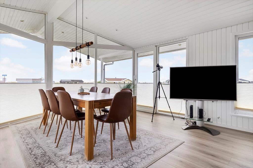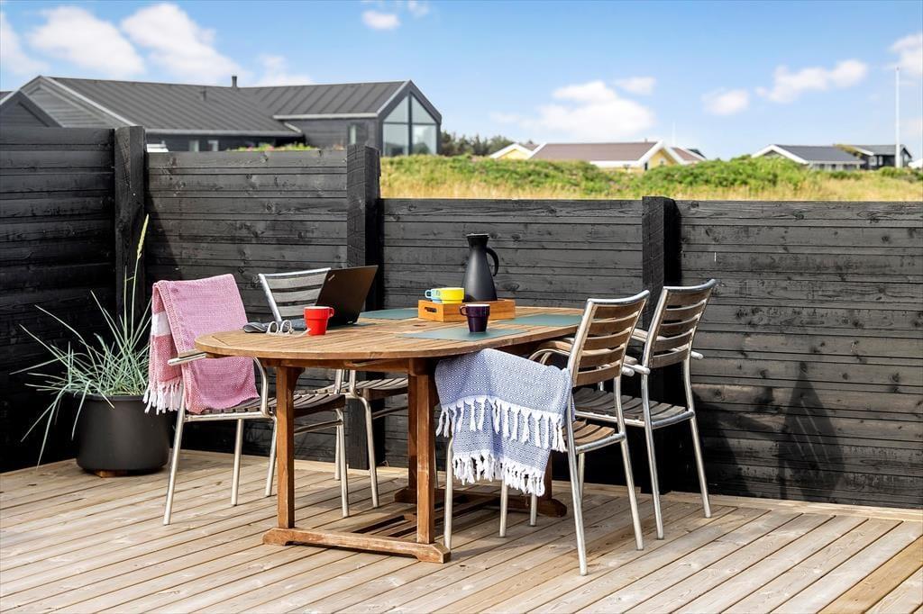 Dieses moderne Ferienhaus in der Bøvlingbjergvej 7 in Skallerup Klit bietet einen wunderschönen und komfortablen Rahmen für den Urlaub. Hier verbindet sich ein stilvolles Interieur mit einer einzigartigen Lage, von der aus man das Meer sehen kann, und der Strand ist nur einen kurzen Spaziergang entfernt. Mit seiner Nähe zum Skallerup Seaside Resort und der gemütlichen Atmosphäre sowohl drinnen als auch draußen ist dieses Ferienhaus die perfekte Wahl für alle, die einen erholsamen Urlaub suchen.
