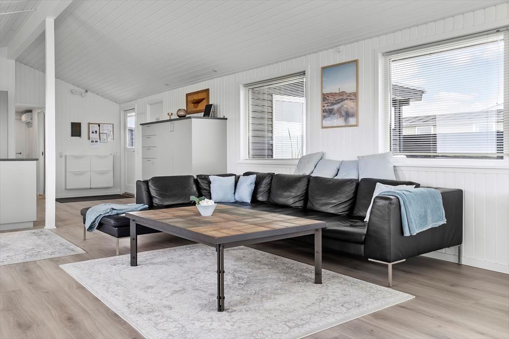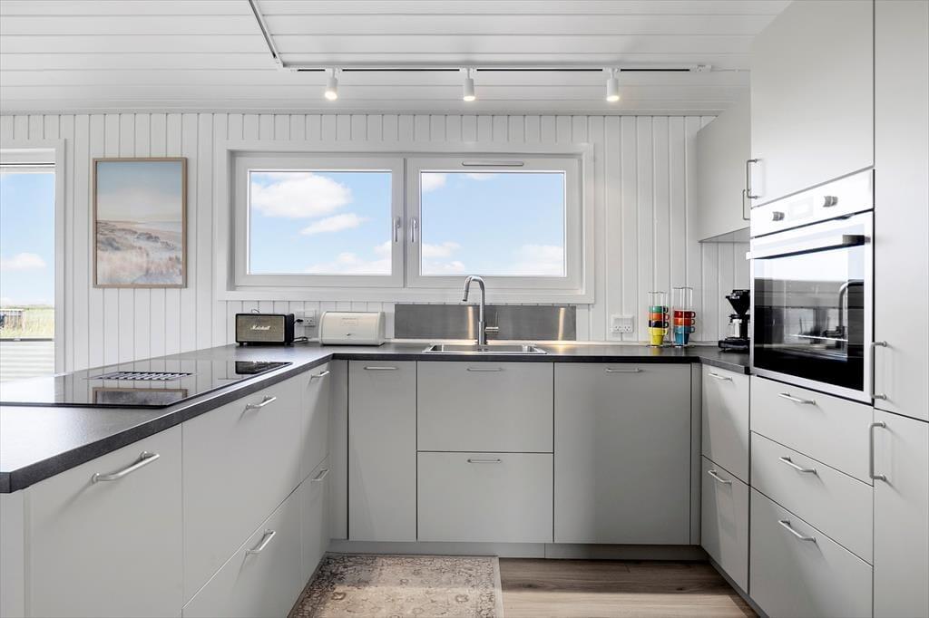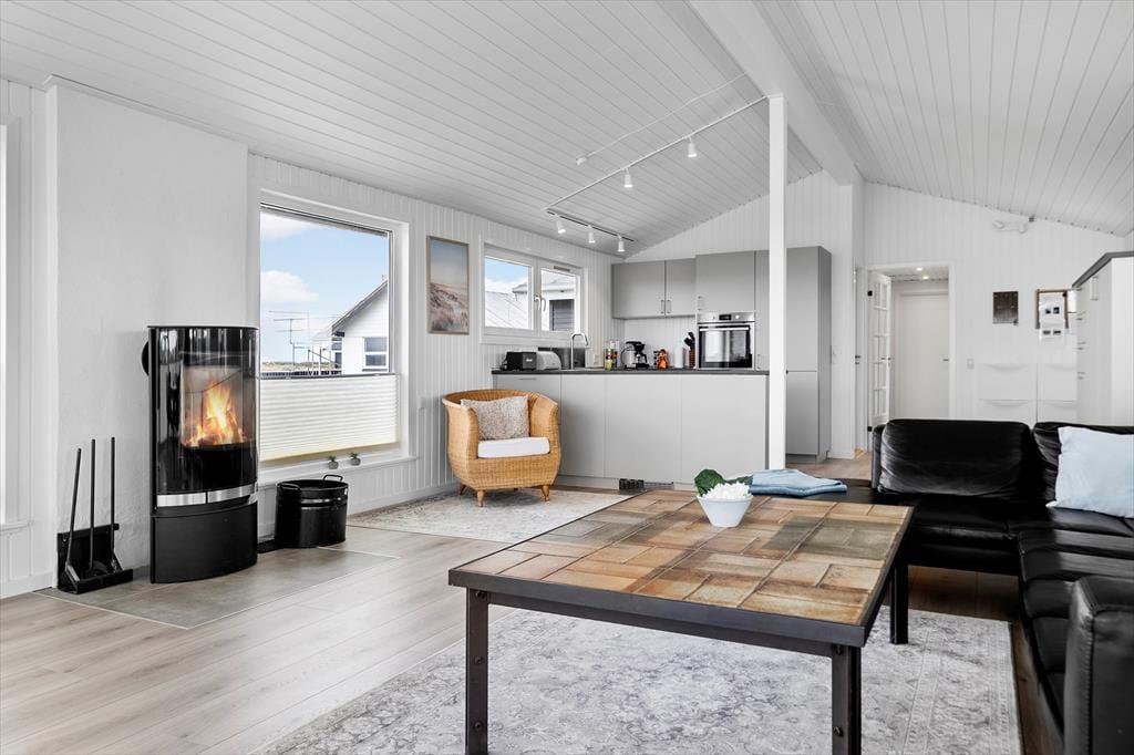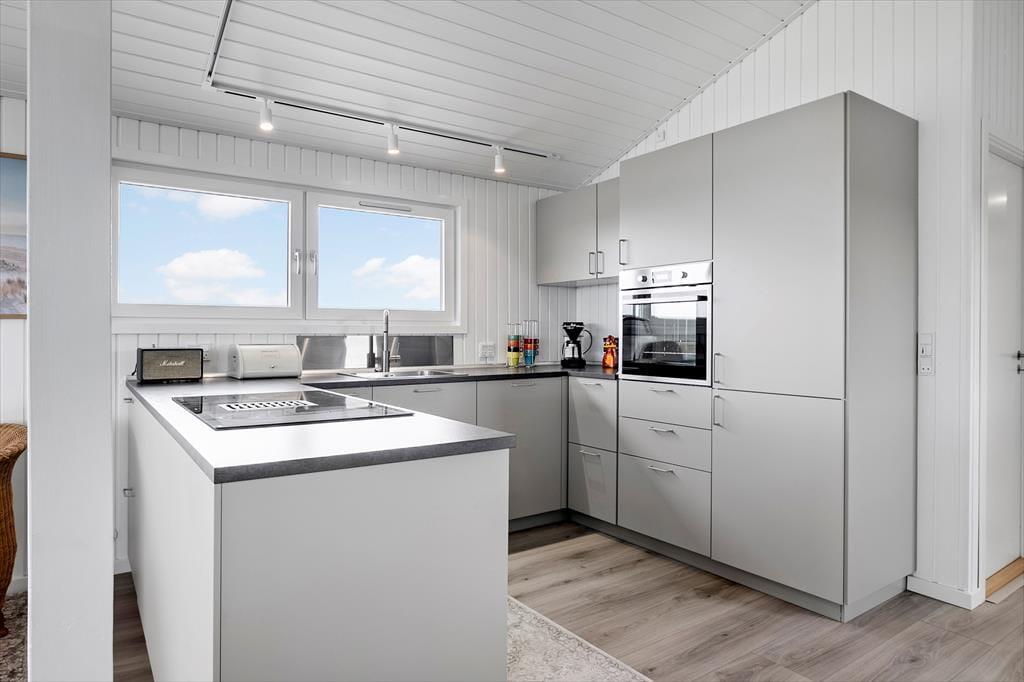 Drinnen empfängt Sie das Ferienhaus mit einem modernen und einladenden Design, bei dem sowohl Funktionalität als auch Ästhetik bedacht wurden. Die große, offene Küche ist eines der absoluten Highlights des Hauses, in dem Sie in ruhiger Umgebung köstliche Mahlzeiten zubereiten können. Die cleveren Details und hochwertigen Materialien schaffen eine warme und einladende Atmosphäre, die es zu einem angenehmen Ort macht, Zeit mit der Familie zu verbringen. Hier gibt es viel Platz, um sich zu versammeln, sei es zum Abendessen oder zum Entspannen nach einem erlebnisreichen Tag. Die drei Schlafzimmer bieten Platz für bis zu sechs Personen, und der helle, offene Wohnbereich sorgt für viel natürliches Licht.
