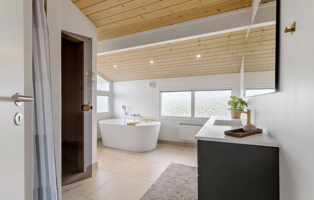 Ontsnap naar dit energiezuinige vakantiehuis in Skallerup met sauna, houtkachel en prachtig uitzicht op de duinen.
