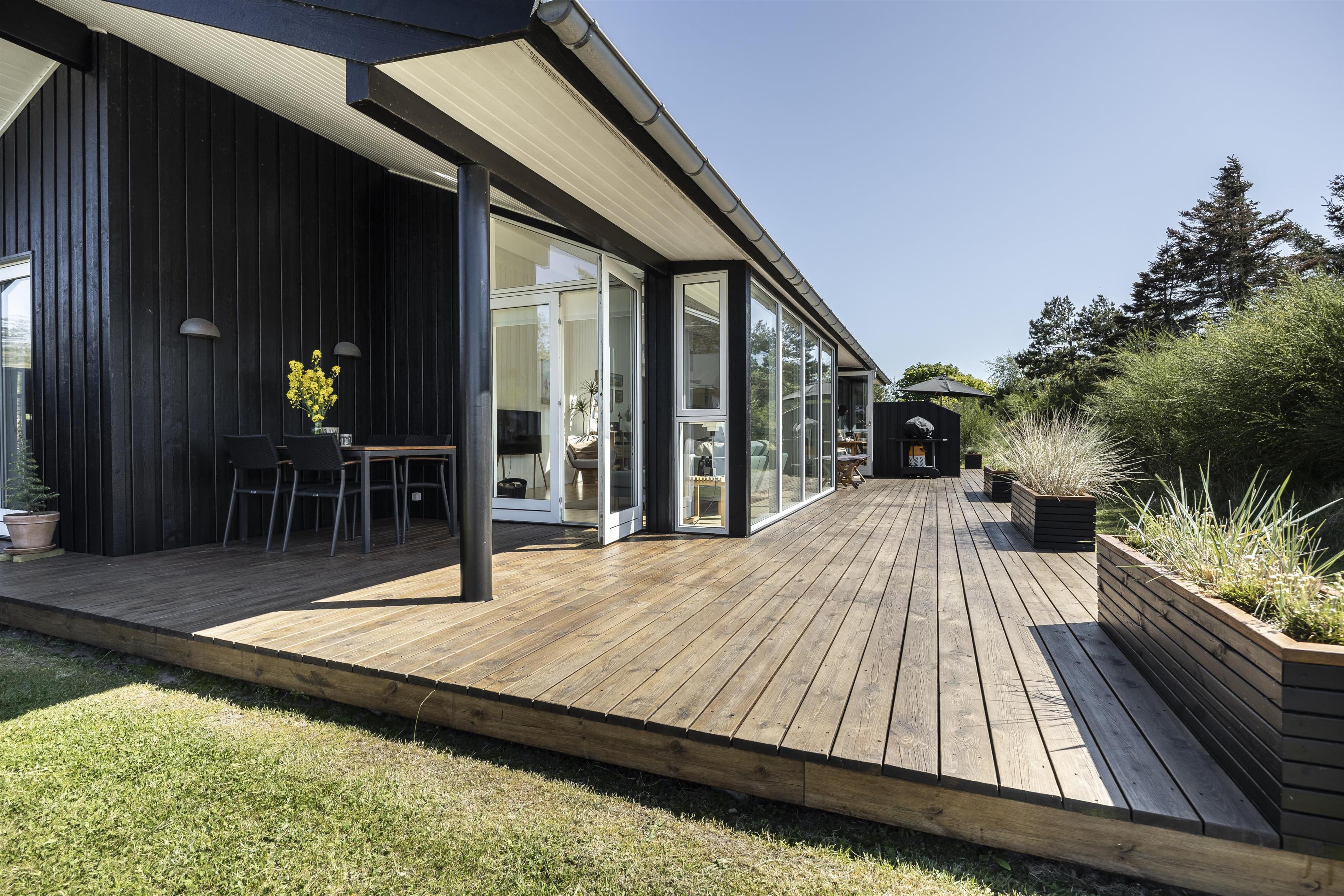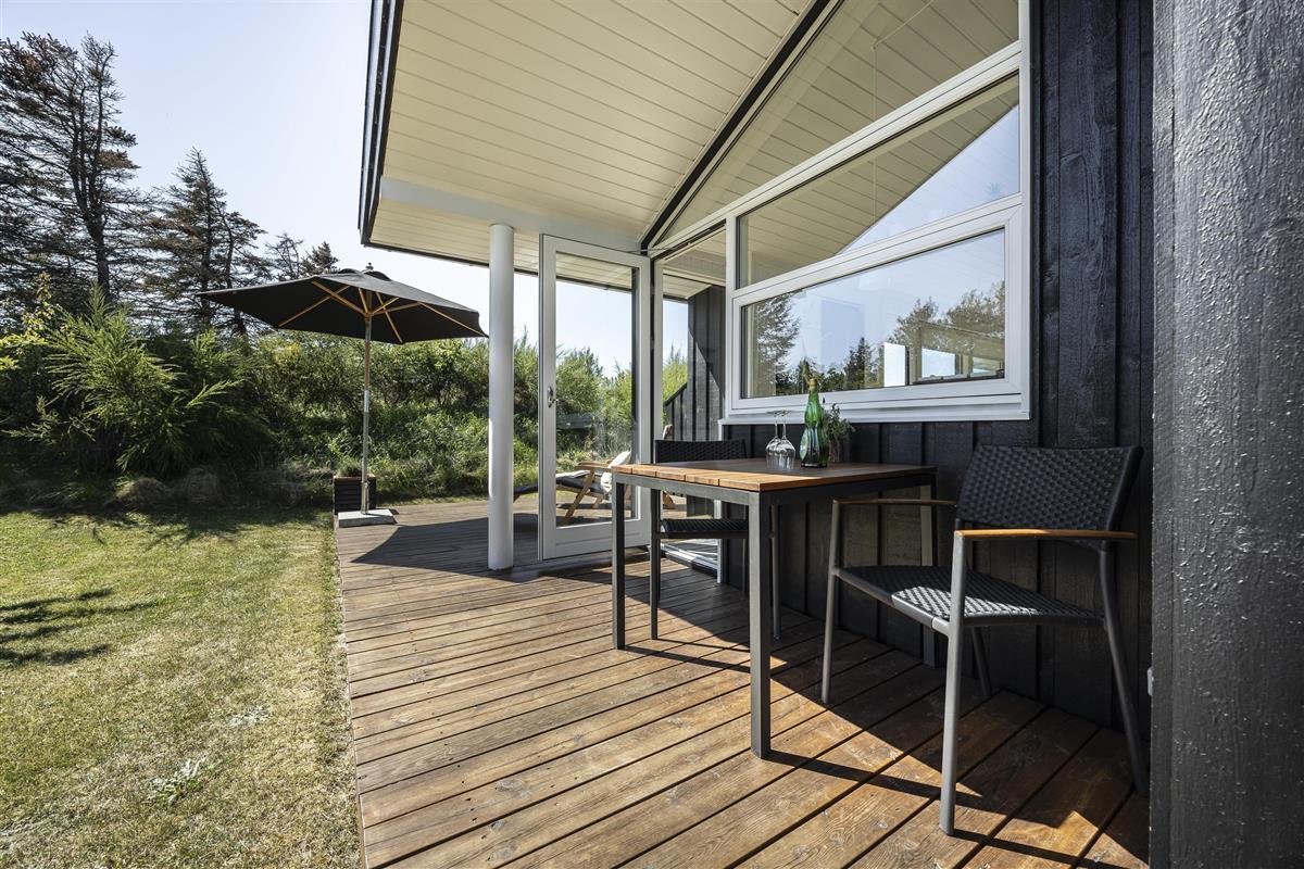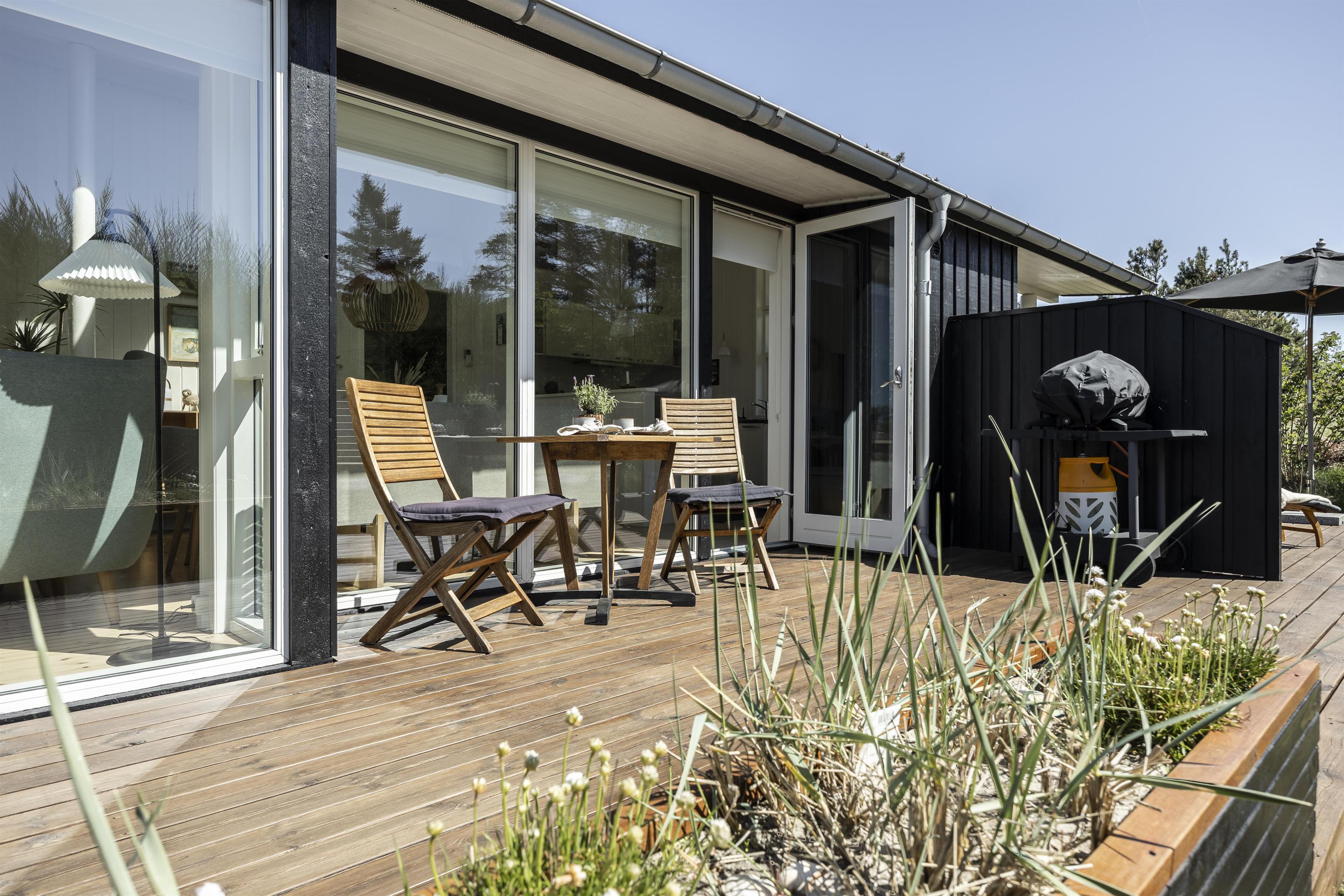 The lovely terrace wraps around the entire house, allowing you to follow the sun throughout the day or find shelter from the occasionally brisk westerly winds. Enjoy a delicious BBQ evening on the terrace and end the day by watching the sunset from the west-facing terrace. At either end of the house, there are covered terrace areas where you can retreat when the evening dew begins to fall.