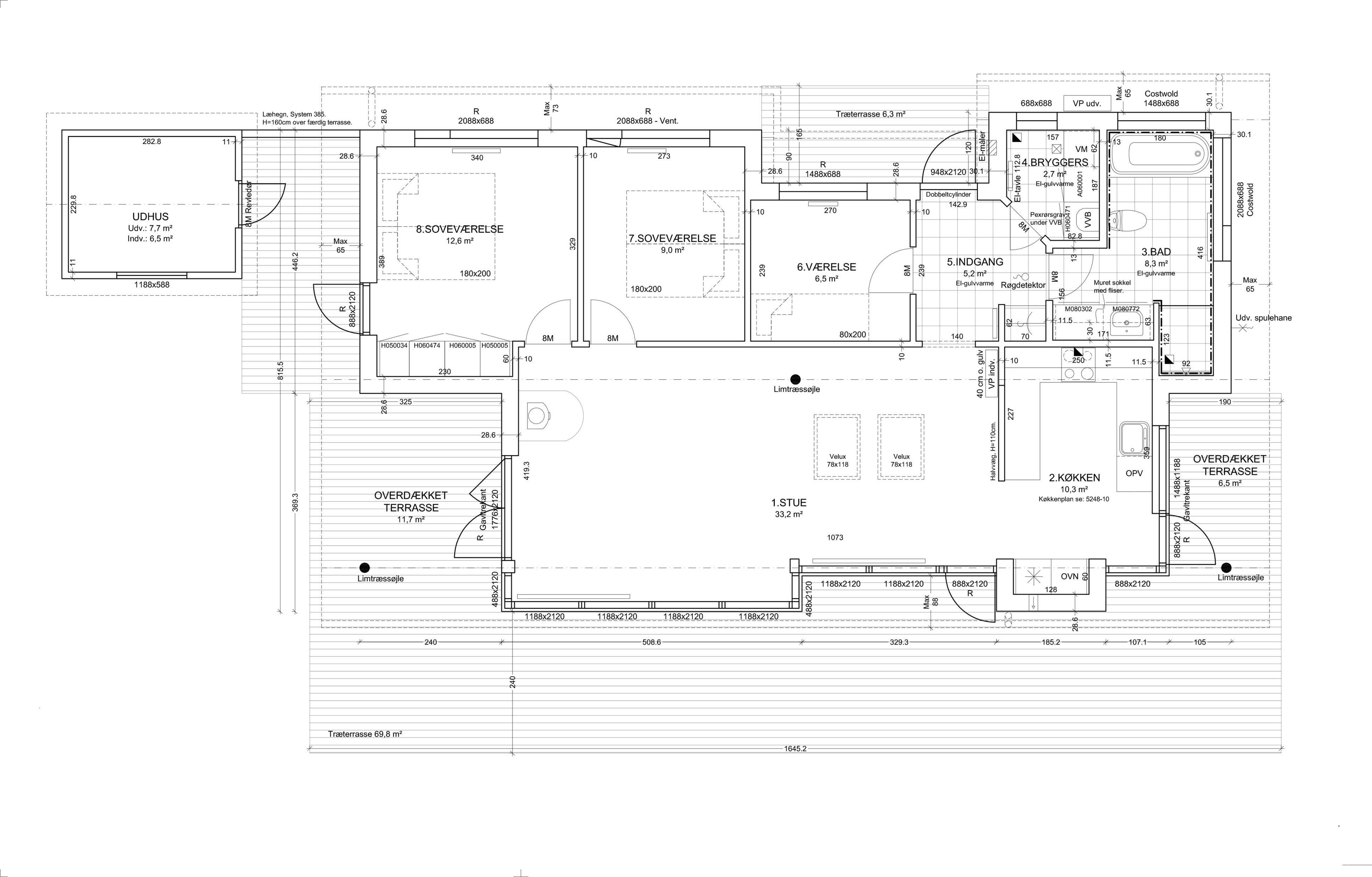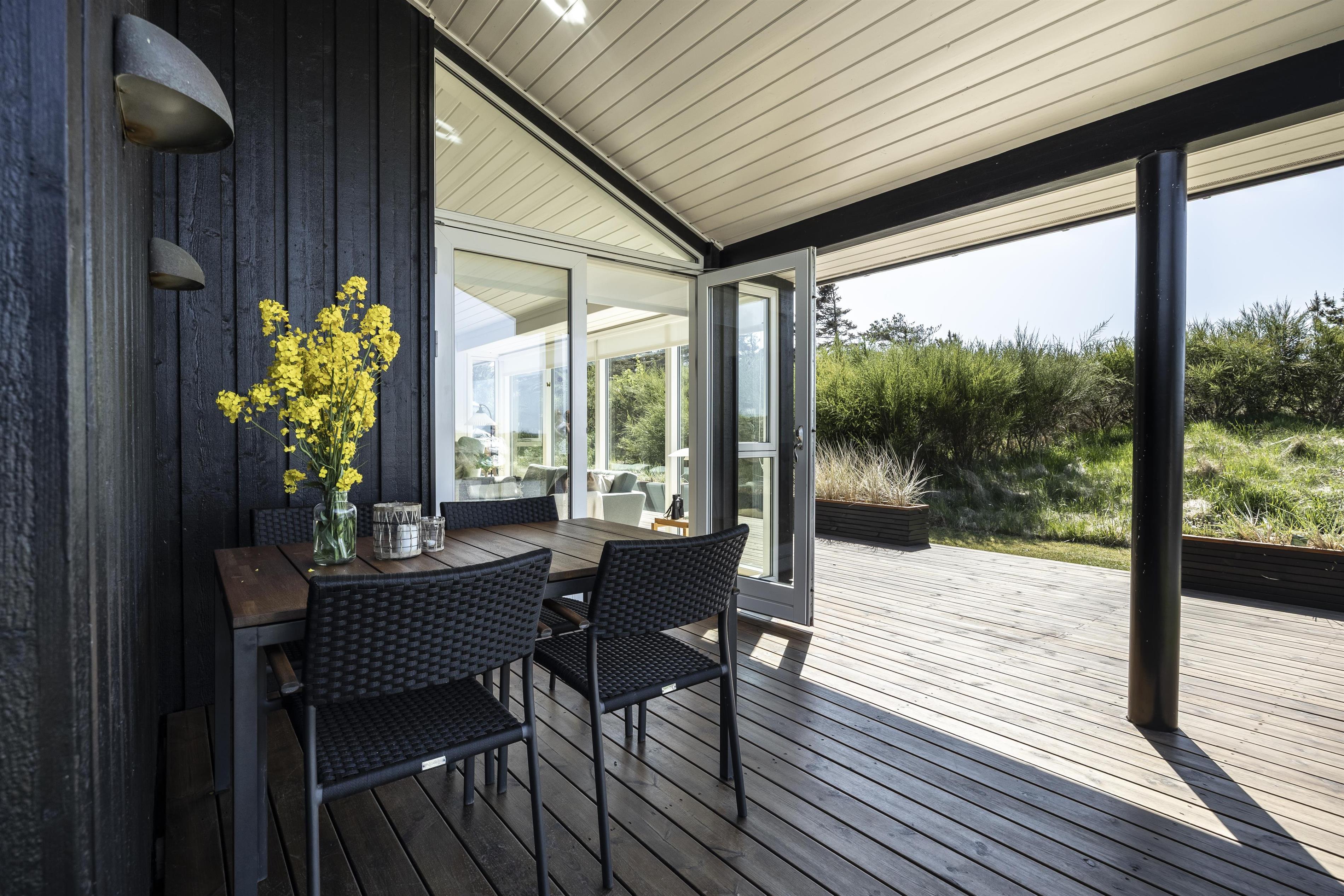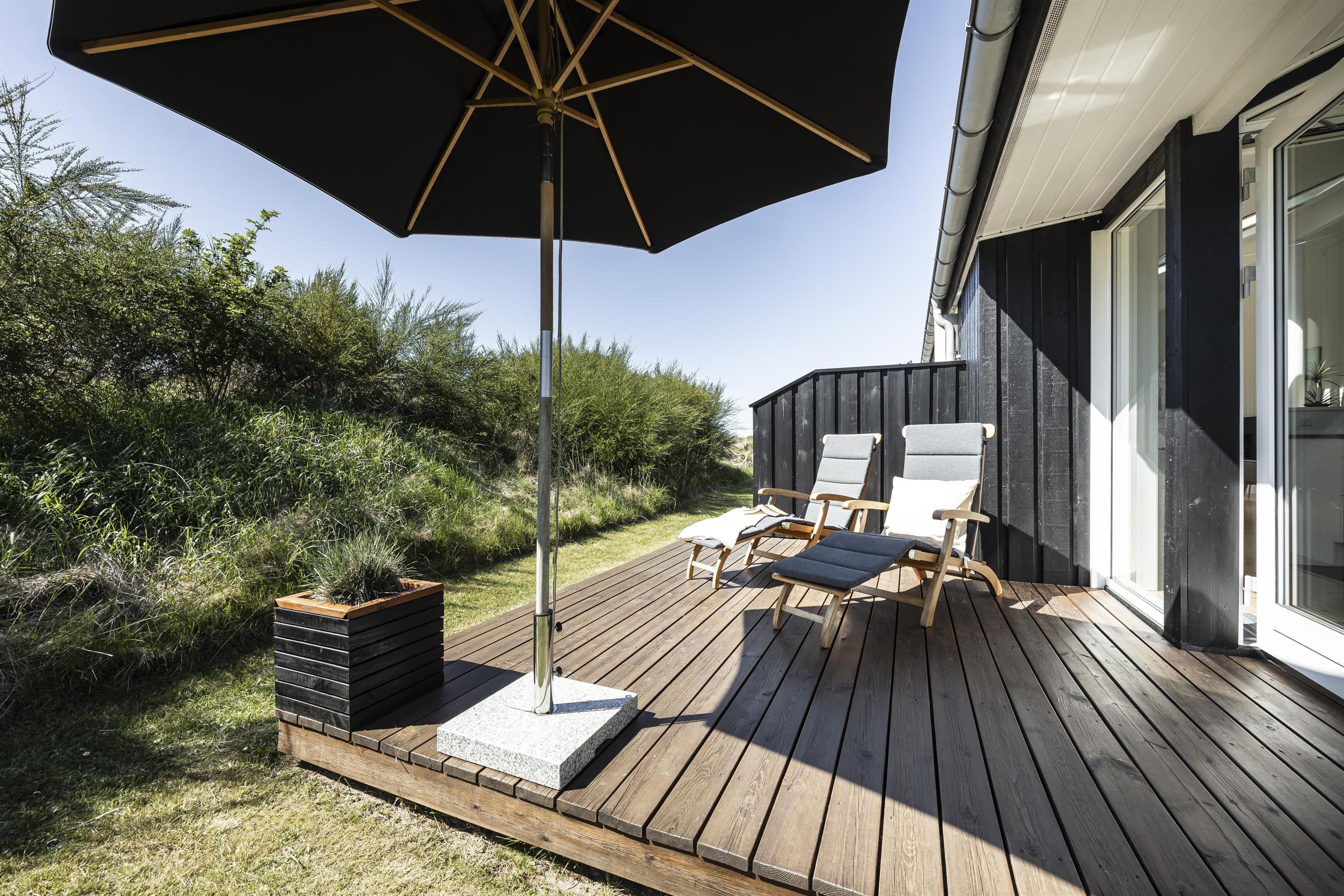 The lovely terrace wraps around the entire house, allowing you to follow the sun throughout the day or find shelter from the occasionally brisk westerly winds. Enjoy a delicious BBQ evening on the terrace and end the day by watching the sunset from the west-facing terrace. At either end of the house, there are covered terrace areas where you can retreat when the evening dew begins to fall.