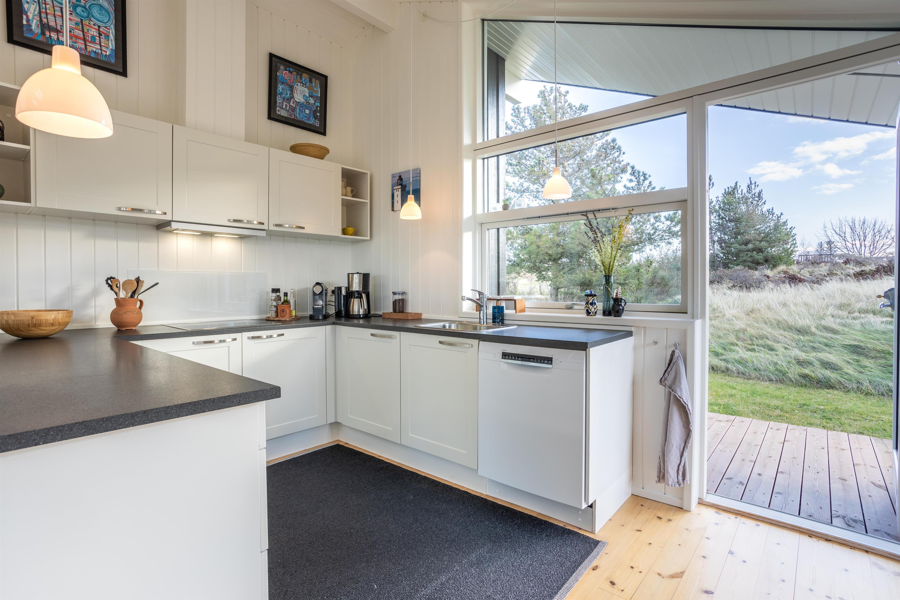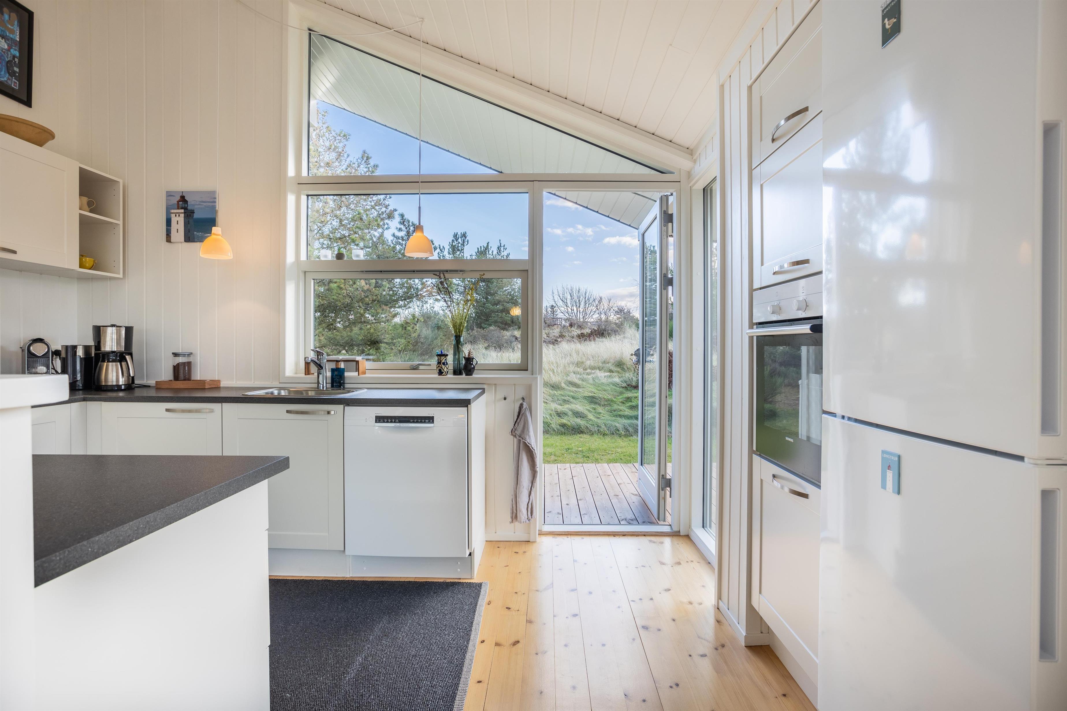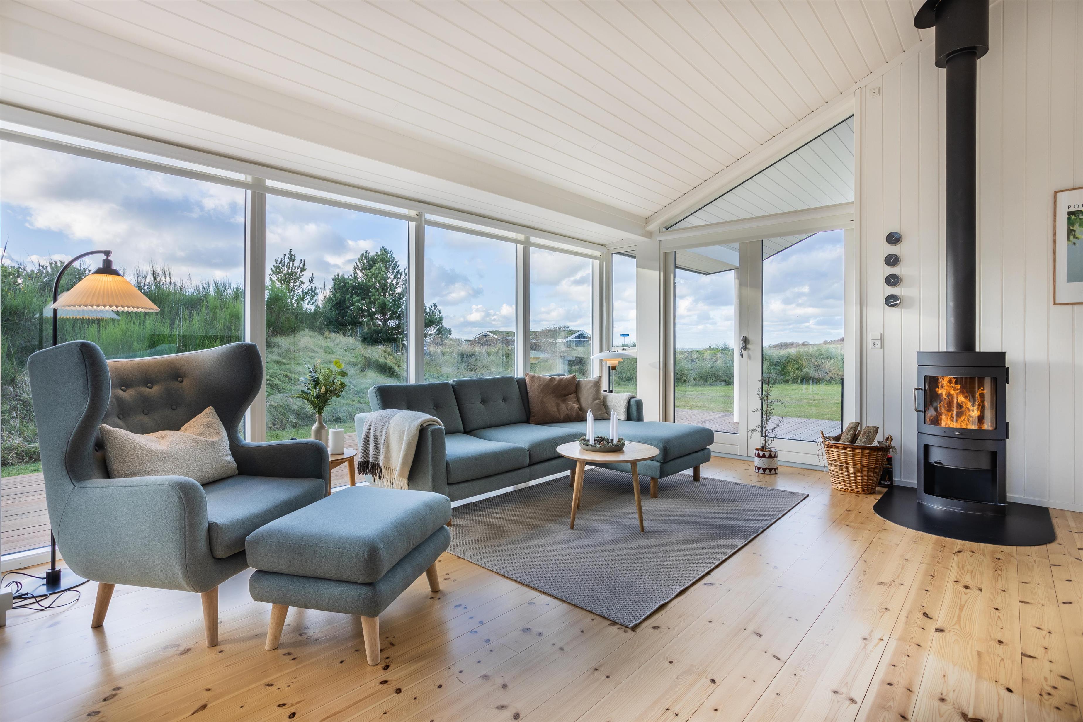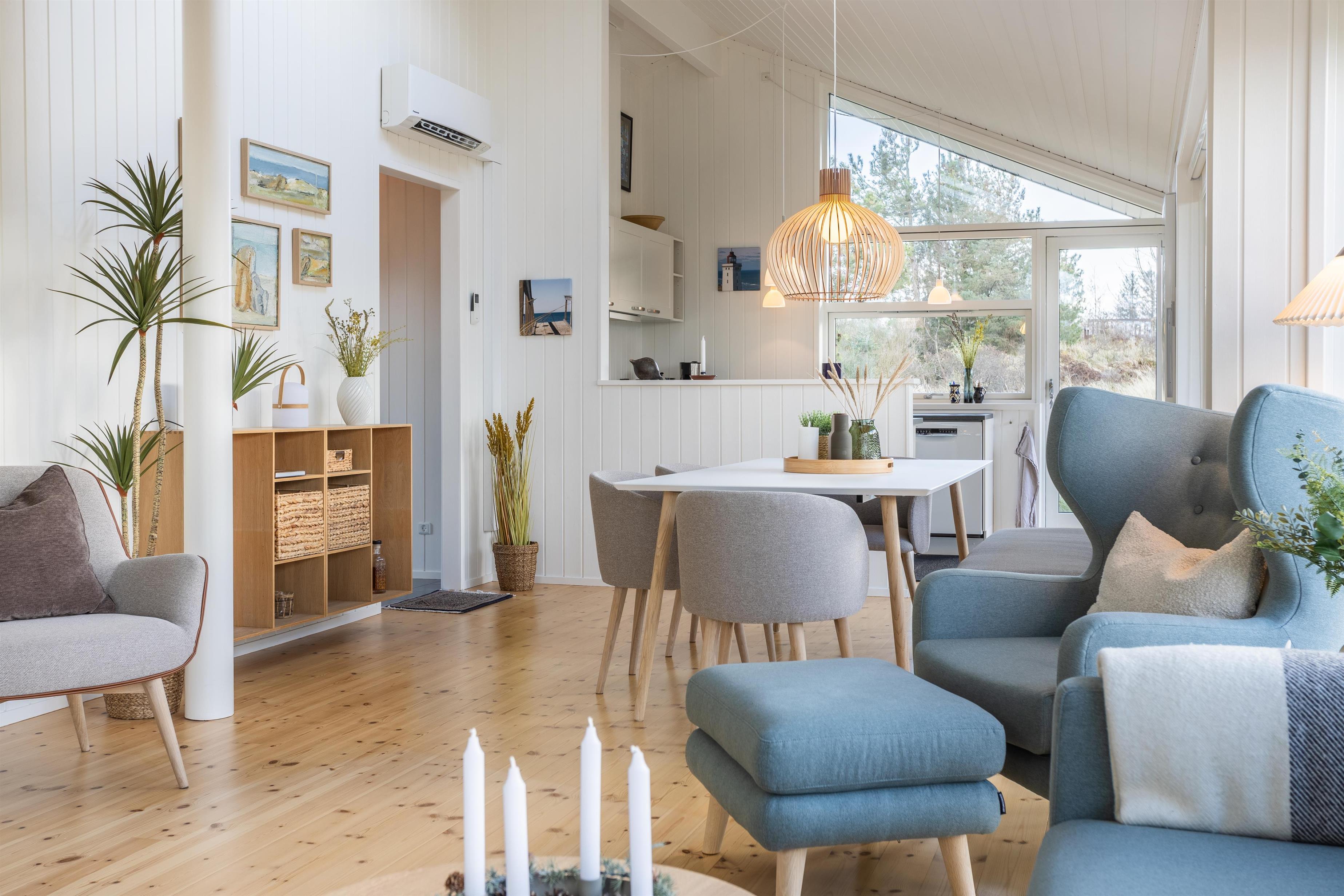 Take a deep breath and let the calm settle in. In this holiday home, you’re surrounded by nature, visible from every window. Located on a spacious, private plot, the home offers stunning views of the landscape and sea from the living room and kitchen. During your stay, you may encounter pheasants and deer exploring the natural grounds. From the house, it’s just a short walk to the beach and Skallerup Seaside Resort via nearby trails.