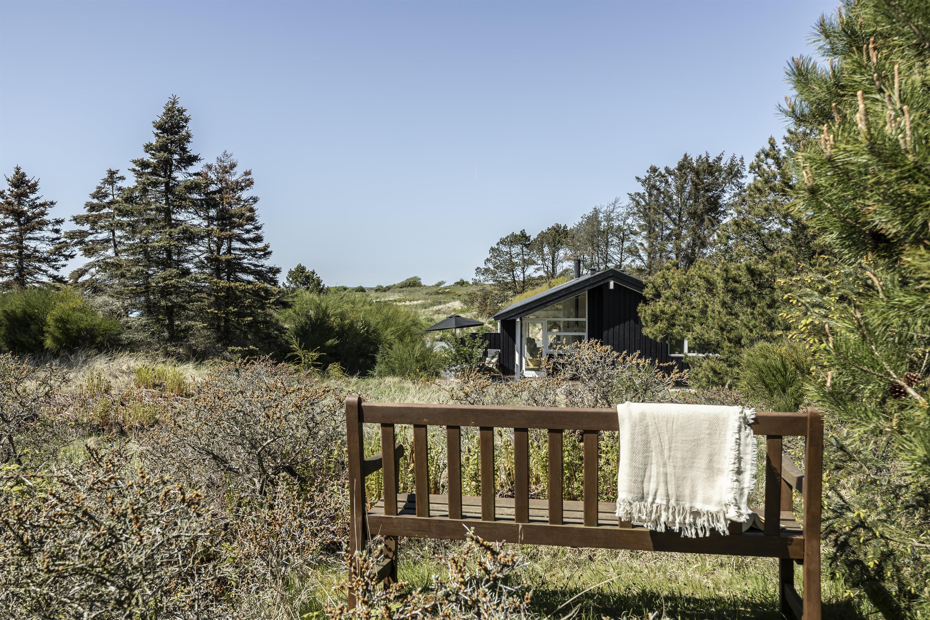 The house is set on a large, undulating, and private natural plot with nature right at your doorstep. Explore the area along the trails, find a bench to sit on, and take in the view. You might even spot a pheasant, hare, or deer close to the house. From here, you can take a short walk to the beach or Skallerup Seaside Resort via trails that wind through the beautiful natural surroundings.
