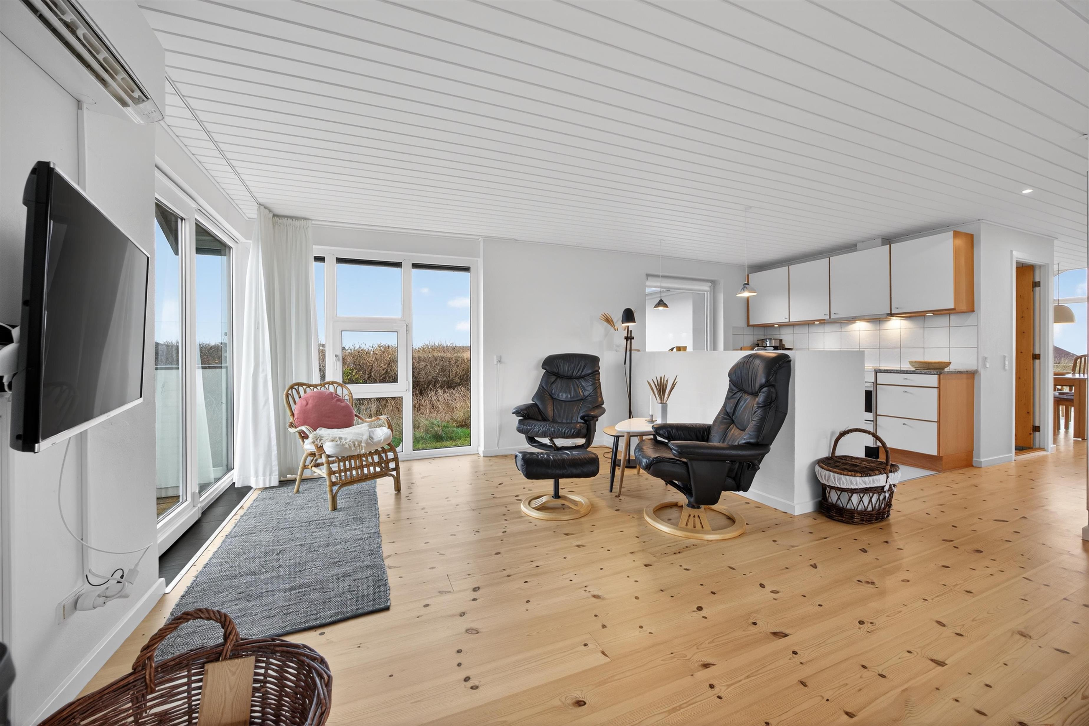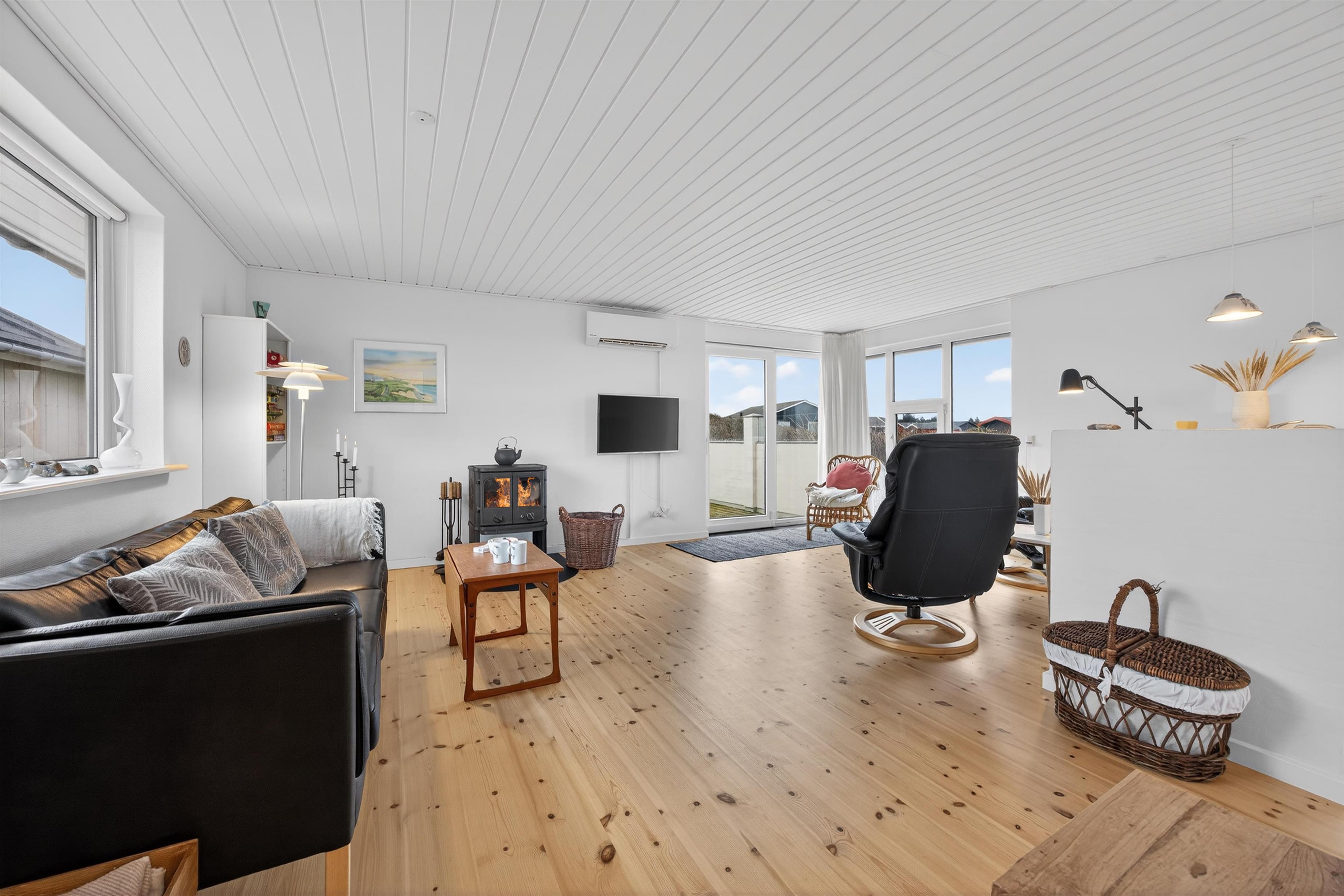 This bright and inviting holiday home in Skallerup is the perfect choice for a family holiday on the North Jutland coast. The house is beautifully situated close to the beach and features large windows that let in plenty of light and bring the impressive sea view directly into the living area.