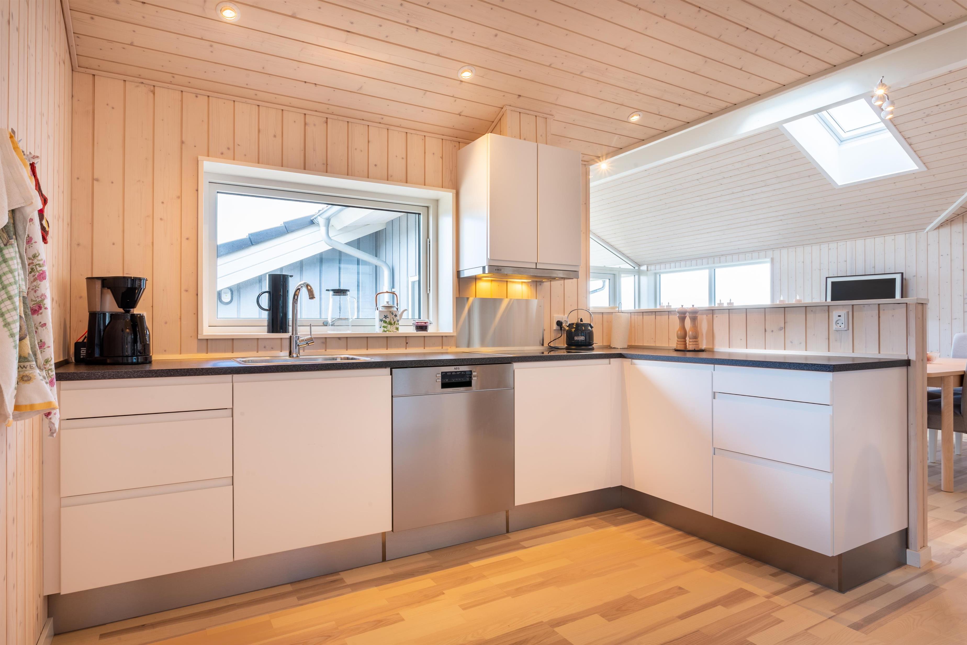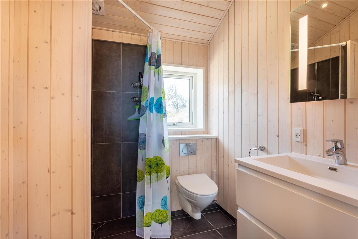 The house is both functional and elegantly decorated, featuring a roomy kitchen-dining area and living room in an open layout. Large windows flood the space with natural light and offer beautiful views of the surrounding area and the sea. From the living room, you have direct access to the terrace, where you can enjoy the fresh air and stunning natural surroundings. Simply open the terrace door, let the fresh sea breeze fill the house, and relax in the tranquility. The holiday home has three comfortable bedrooms and two modern bathrooms, one of which is equipped with a spa – perfect for moments of relaxation. The bathrooms are thoughtfully designed, making the house ideal for families or smaller groups. With room for up to six guests, there's plenty of space to create wonderful memories together. The energy-efficient home is heated with a heat pump and includes an EV charger with a Type 2 connector (cable not provided), making it a modern and environmentally friendly choice for your stay.