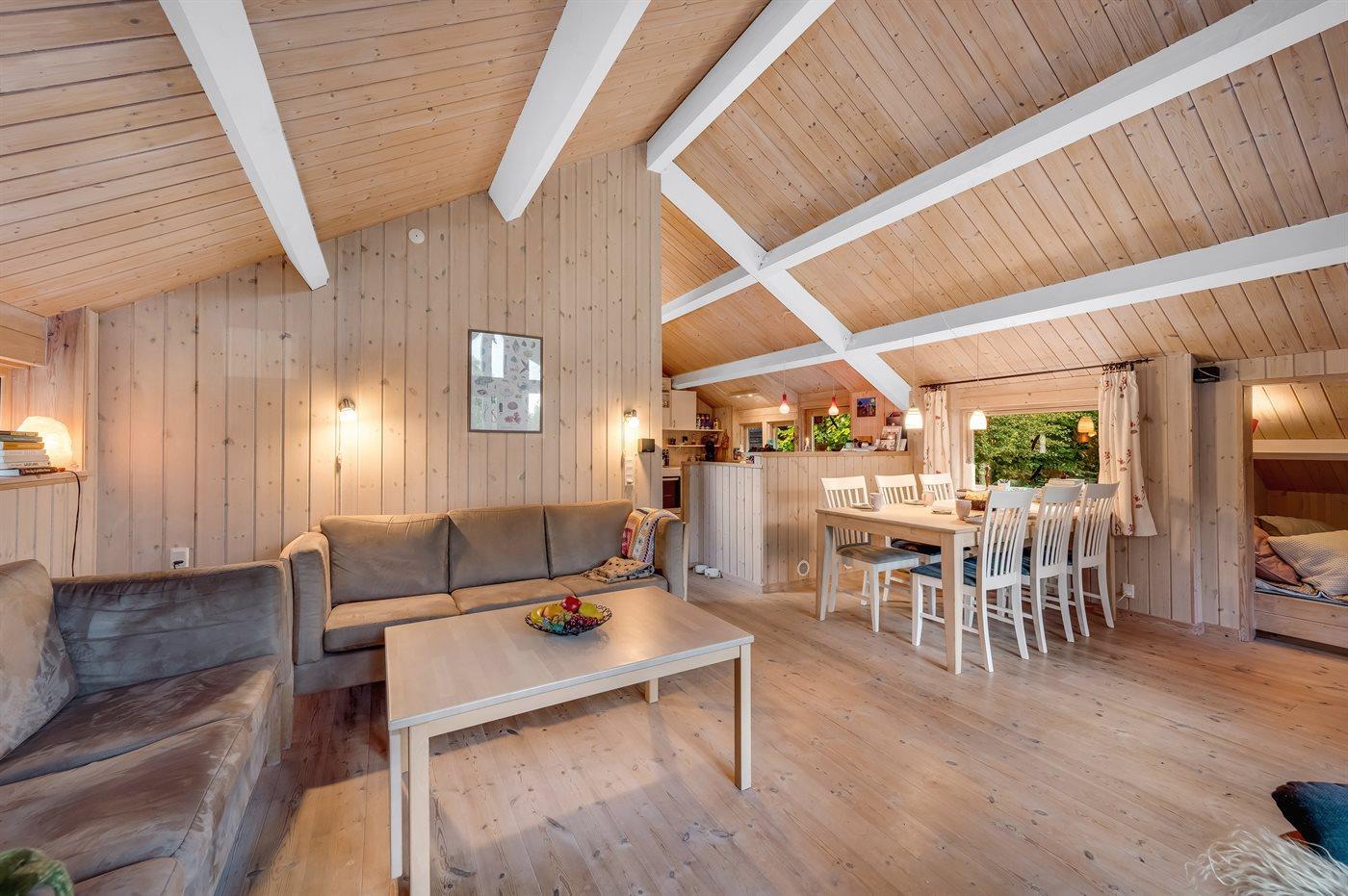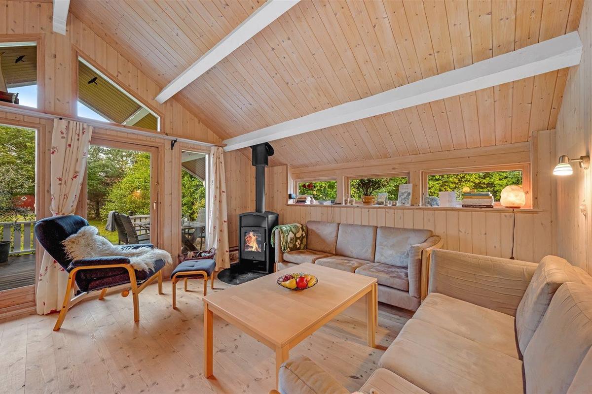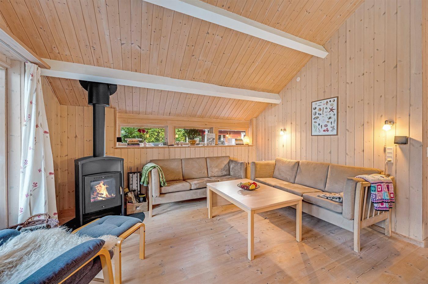 De vakantiewoning is gelegen op een 1022 m² groot natuural grond. Afstand tot de fjord 450 m. Dichtstbijzijnde winkel 7500 m. Bij de vakantiewoning hoort terras. Daarnaast is er een overdekt terras. Tevens heeft u de beschikking over een serre. Gereedschapsruimte. Parkeerplaats bij het huis.