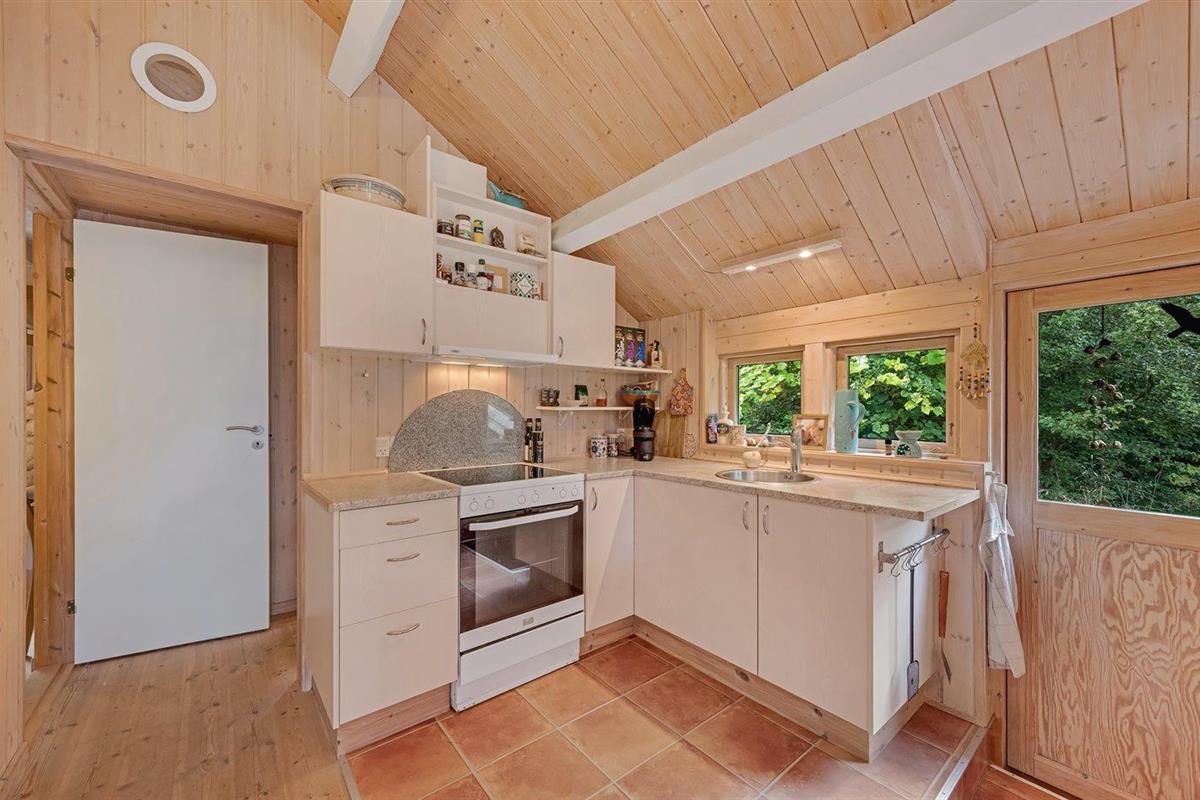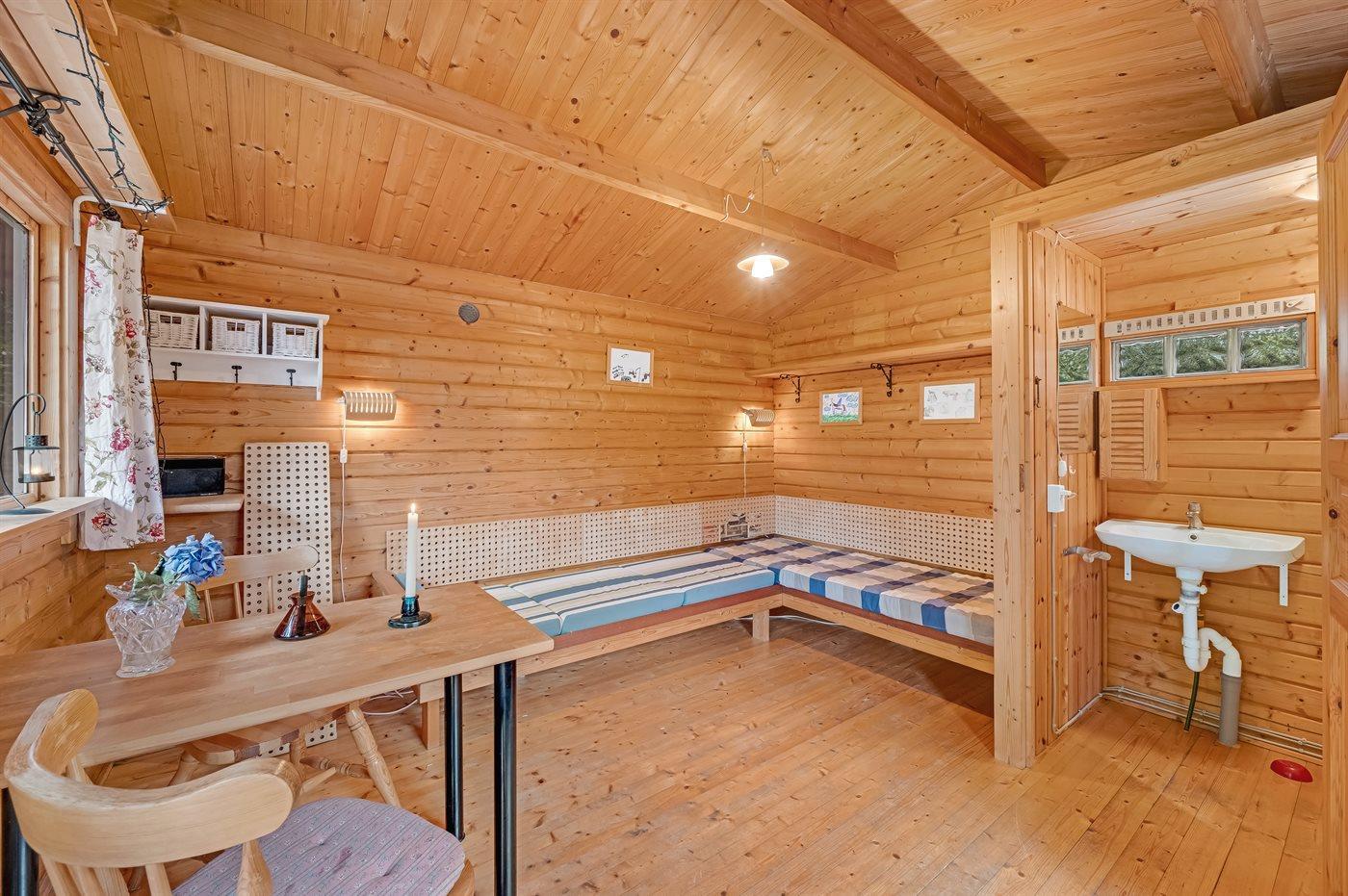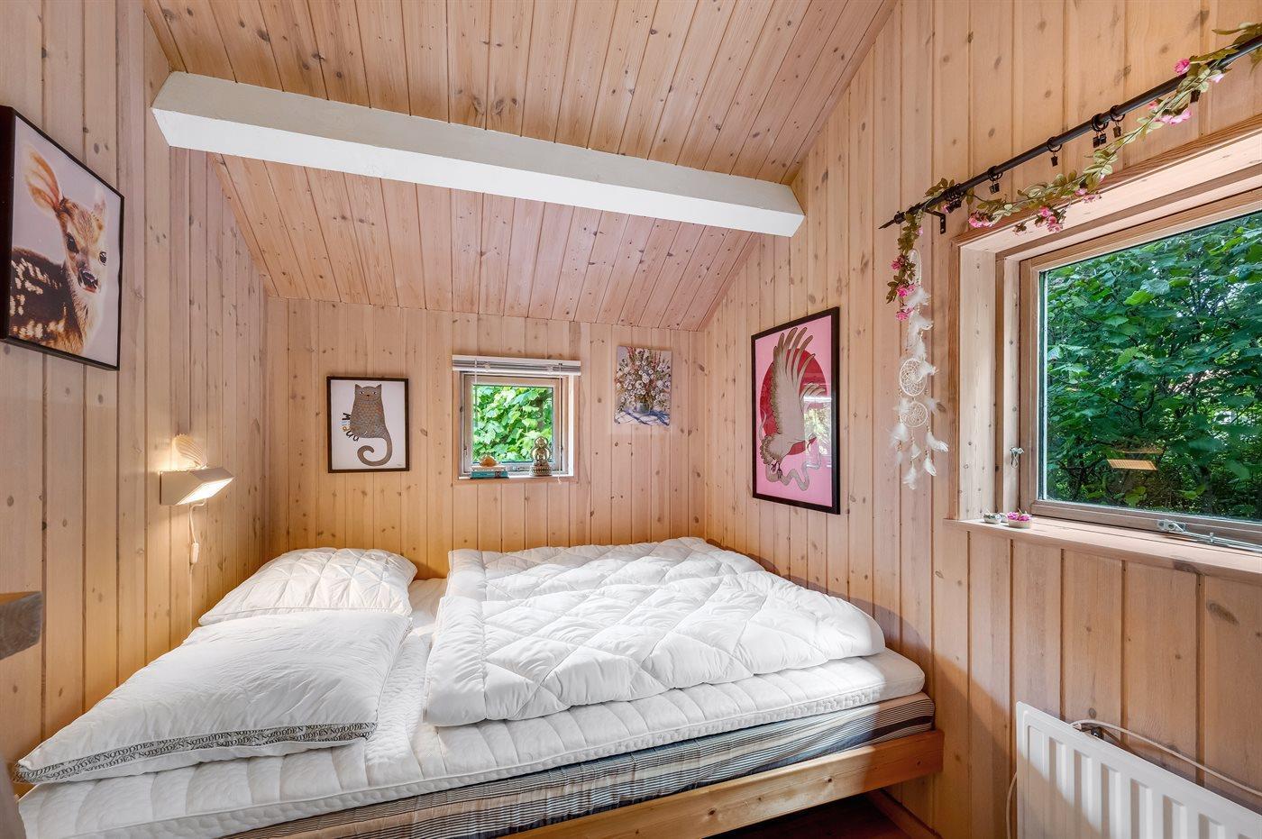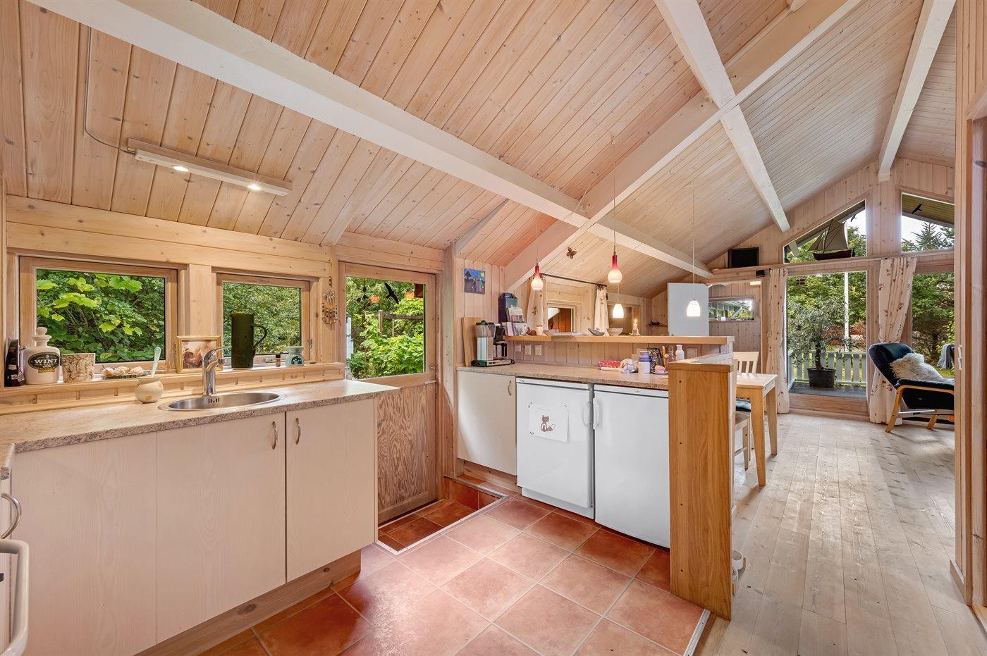 De vakantiewoning is gelegen op een 1022 m² groot natuural grond. Afstand tot de fjord 450 m. Dichtstbijzijnde winkel 7500 m. Bij de vakantiewoning hoort terras. Daarnaast is er een overdekt terras. Tevens heeft u de beschikking over een serre. Gereedschapsruimte. Parkeerplaats bij het huis.