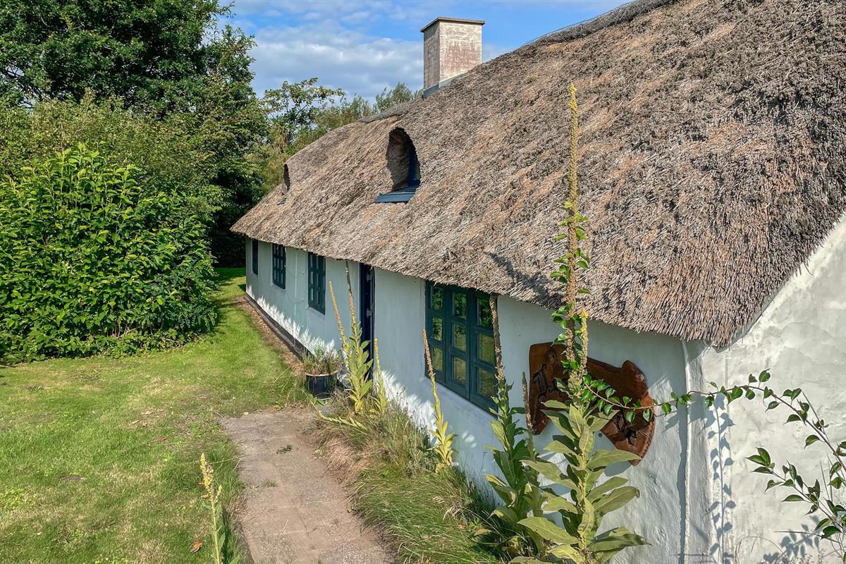 Ontspan in dit charmante vakantiehuis met rieten dak, omgeven door rust en natuur in Vemb, Denemarken.