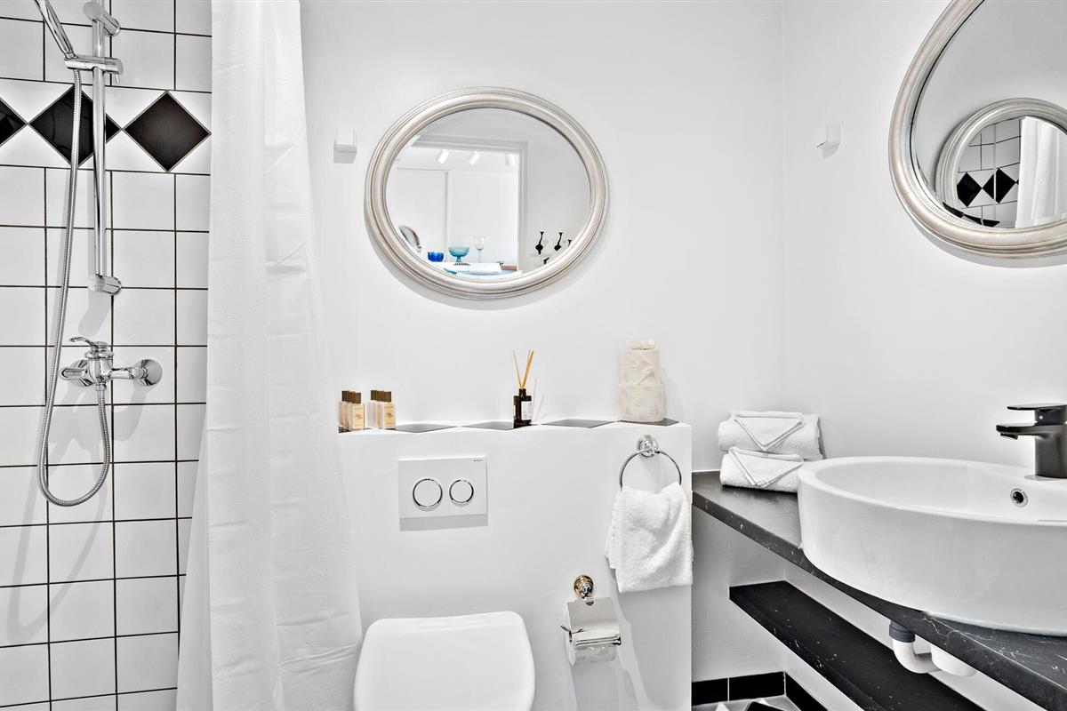 Badkamer (nr. 1) - Toilet: warm en koud water. Douche