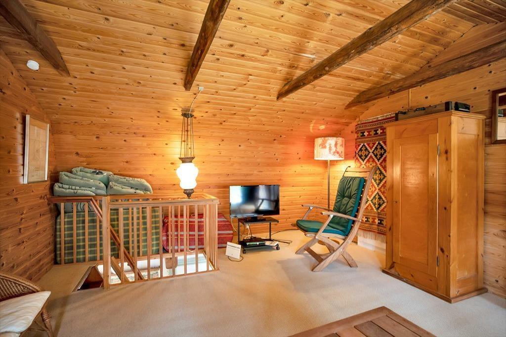 Mit freiliegenden Balken im Obergeschoss und Holzfußböden und Holzwänden harmoniert das einzigartige Ferienhaus wunderbar mit dem riesigen Naturgrundstück. Dich erwarten ein Maximum an Charme und Nostalgie, an Wärme und Seele. Vom ersten Moment an wirst du dich mit deiner Familie in diesem Ferienhaus heimisch und wohl fühlen. Der Wintergarten, der mit einem tollen Meerblick verzaubert, wird im Nu zu deinem Lieblingsplatz avancieren. Von der Küche aus blickst du ebenfalls auf das Wasser. Nachdem du die ein wenig steile Treppe in den ersten Stock bewältigt hast, begrüßen dich zwei Schlafräume mit Meerblick und ein gemütliches Sofa, auf dem du in aller Ruhe die Erlebnisse des Tages Revue passieren lässt.