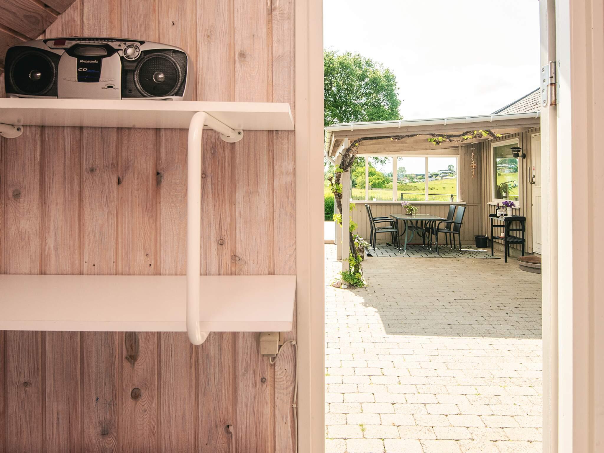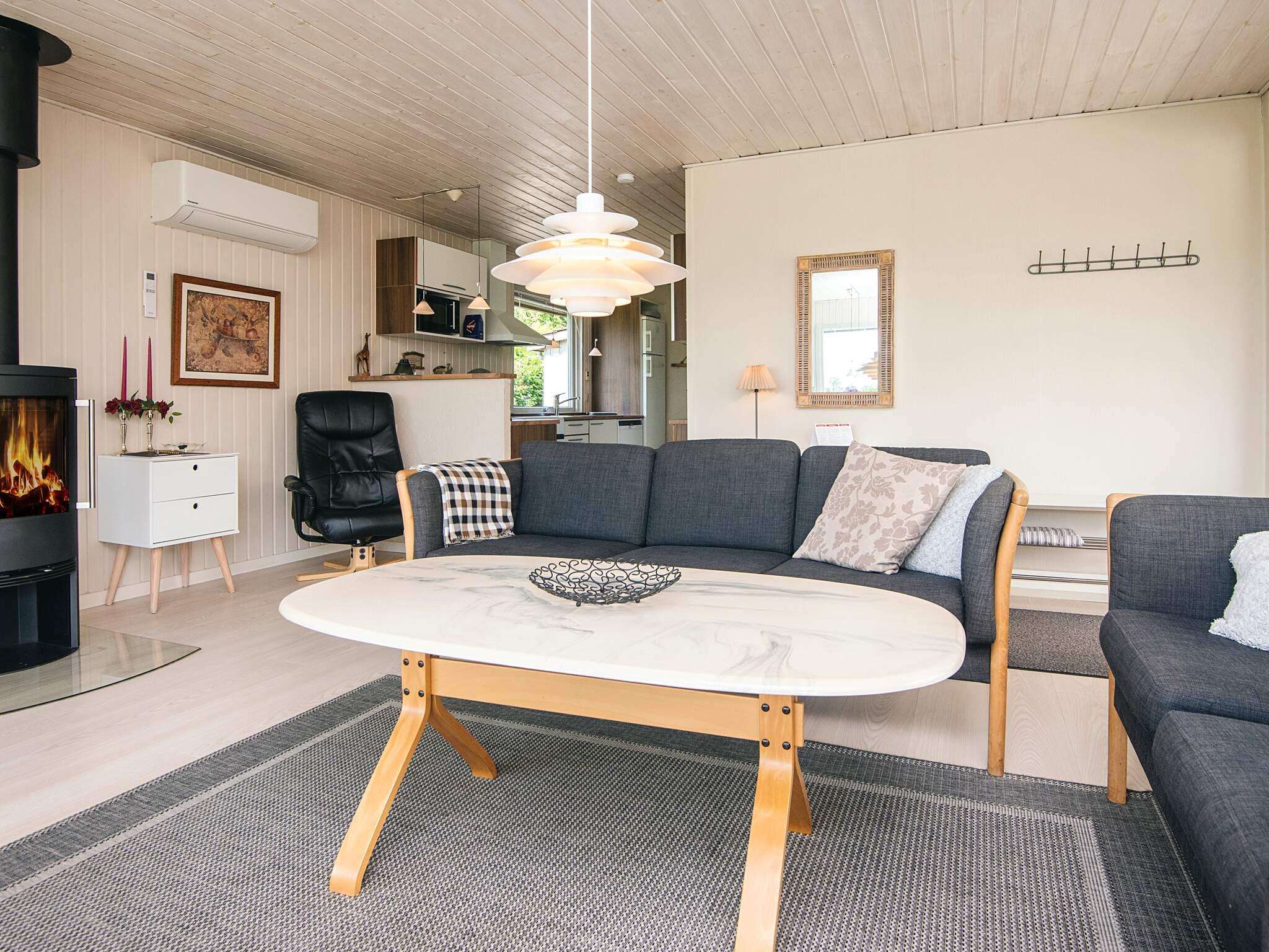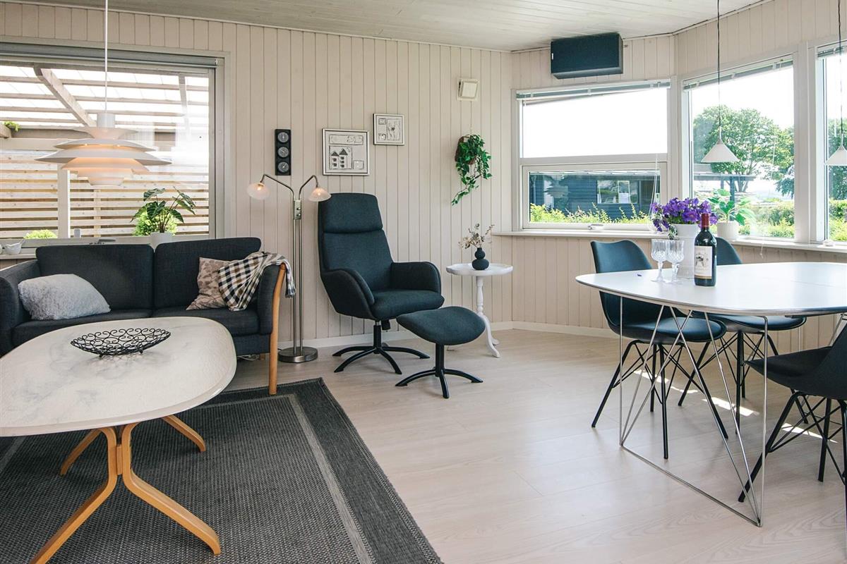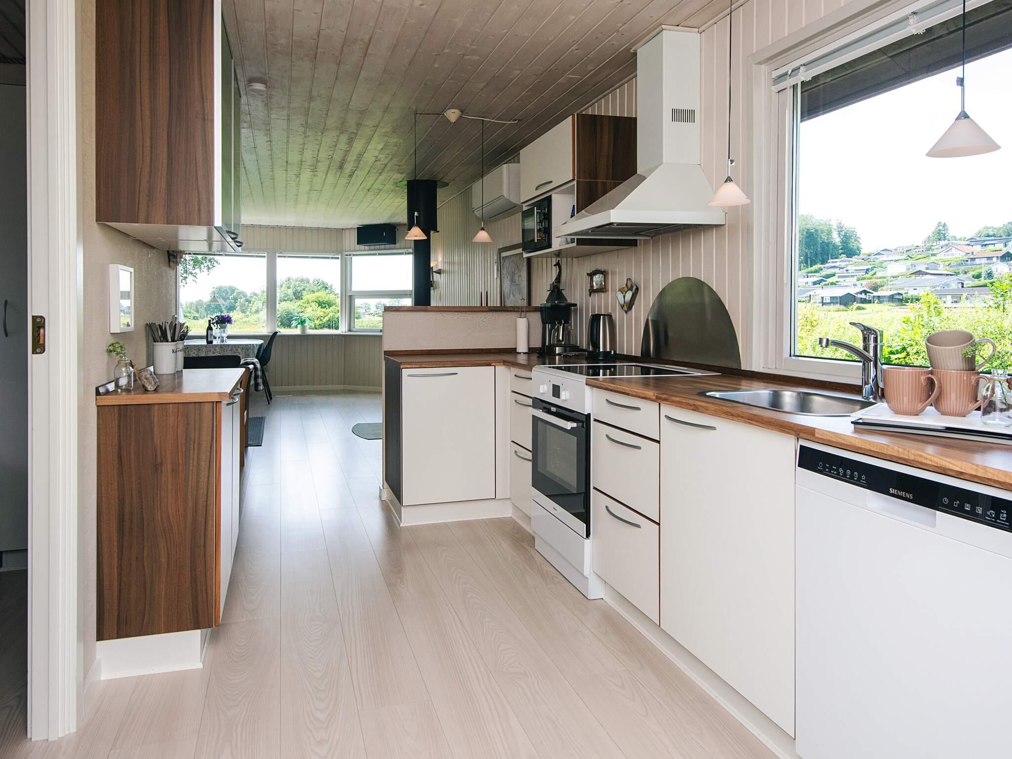 Und: Innenhof, Terrasse, überd. Terrasse, E-Heiz., Luft-Luft-Wärmepumpe, Spielgeräte, Grill, Naturgrundst. m. Bäumen 720 m2, moderne Möblierung, Meerblick/Seeblick, Nichtraucherhaus