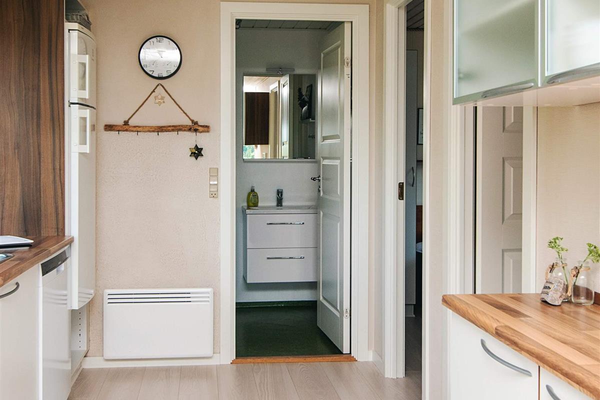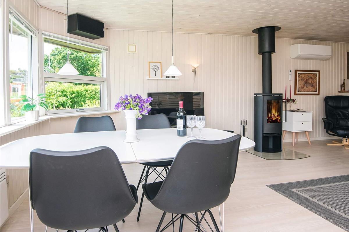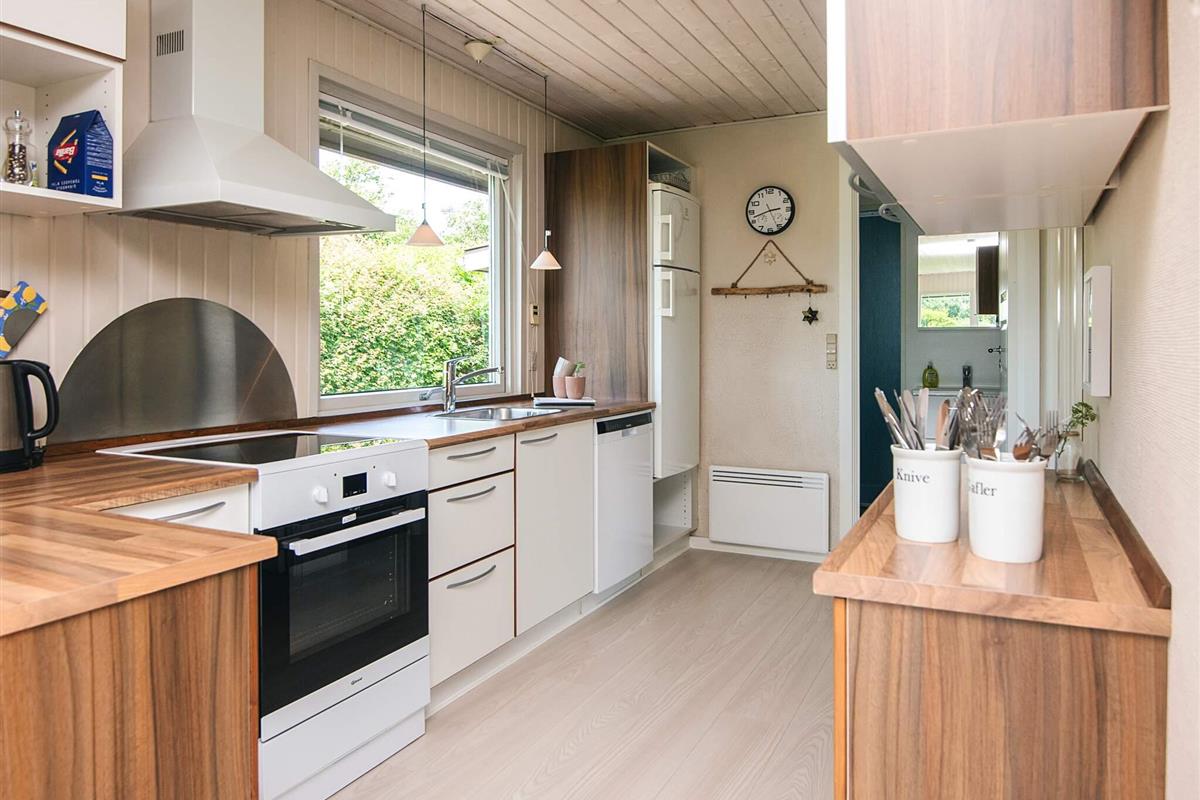 zum Aabenraa Fjord. Im Jahr 2024 wurde eine große Holzterrasse gebaut und im Wohnzimmer ein neuer, schöner Holzofen installiert. Das Badezimmer wurde 2023 saniert, Böden und Türen 2017 und die Küche ist von 2009.