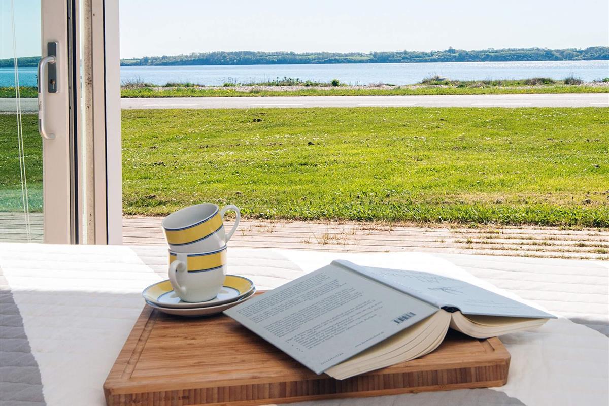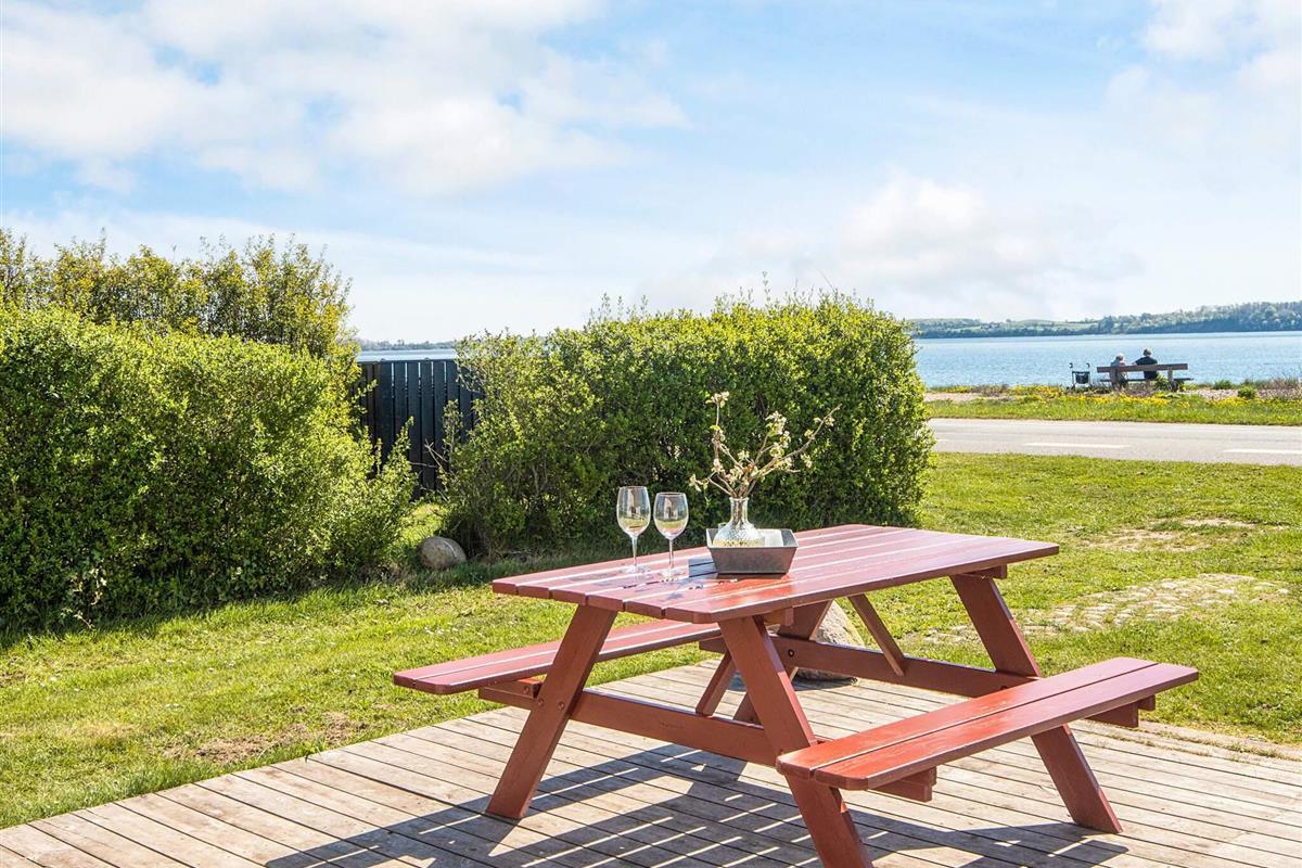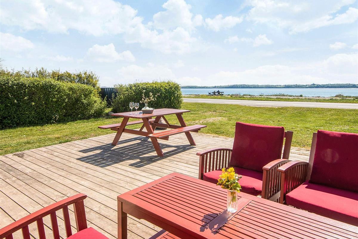 Das Leben im Freien spielt sich auf zwei einladenden Terrassen ab. An der Vorderseite bietet eine geräumige Terrasse direkten Meerblick und reichlich Gelegenheit, die Küstenlandschaft den ganzen Tag über zu genießen. An der Rückseite bietet eine gemütliche Holzterrasse einen geschützteren Platz mit Blick ins Grüne und Schutz vor dem Wind – ideal für ruhige Momente oder Mahlzeiten im Freien.