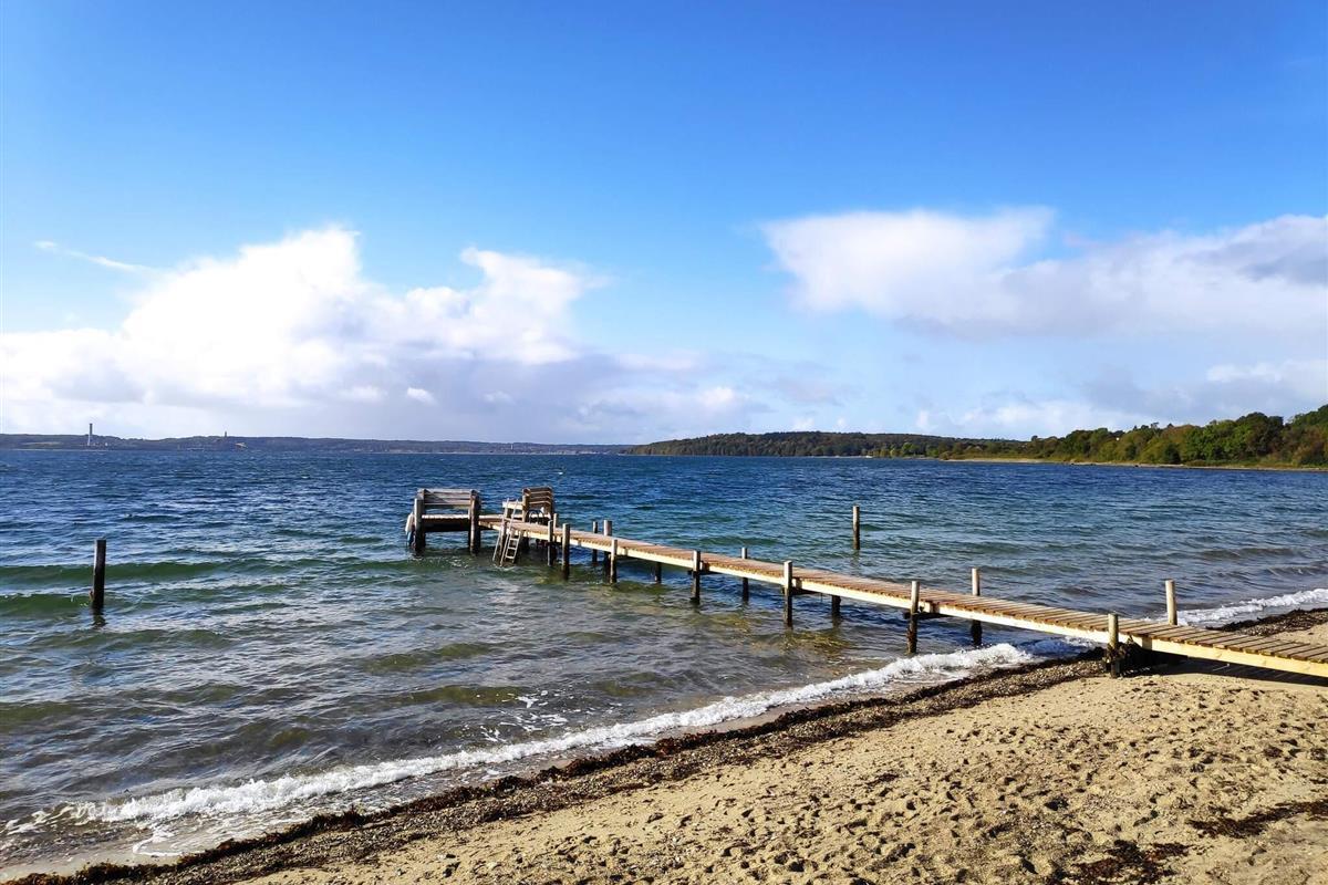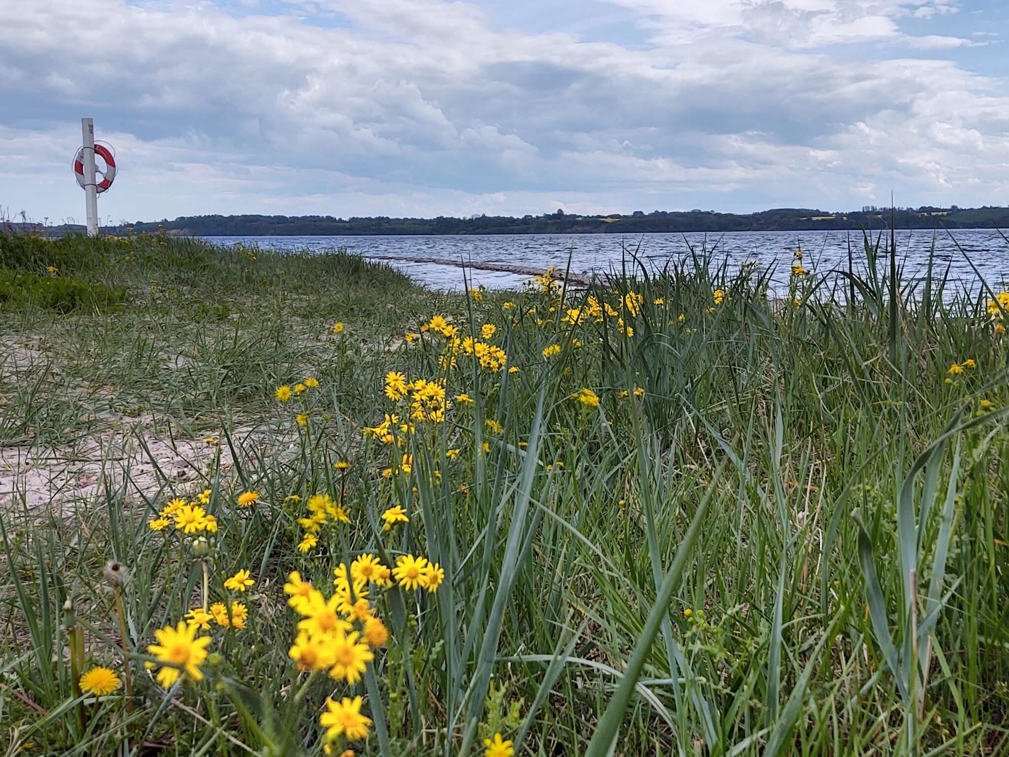 Der schöne Strand von Skarrev ist nur etwa 25 Meter vom Haus entfernt und bietet unter anderem einen Pétanque-Platz und ein Fußballtor sowie einen kleinen Spielplatz auf dem nahegelegenen Campingplatz, den Sie gerne nutzen können. Nach einem erfrischenden Bad im Meer können Sie sich unter der Außendusche auf der Rückseite des Hauses abduschen. Das Ferienhaus liegt auf einem großen Naturgrundstück und verfügt über einen großen Gemeinschaftsbereich, der sich hervorragend für Ballspiele etc. eignet.