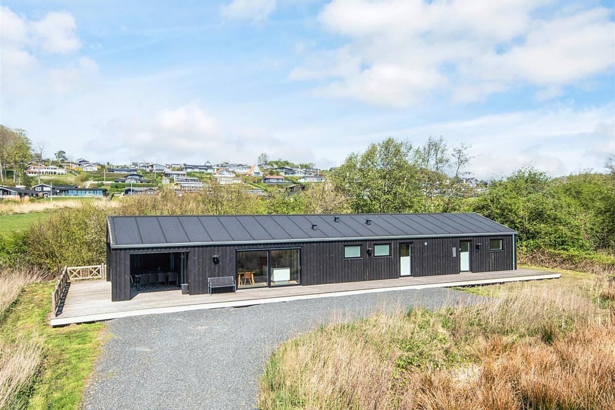 Sehr attraktives Ferienhaus in erster Reihe an der Küste von Skarrev. Lage und Ausstattung der Extraklasse! Das Ferienhaus besticht durch seine architektonisch ansprechende Gestaltung, wobei die längste Seite des Hauses dem Wasser zugewandt ist.