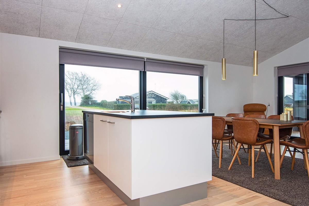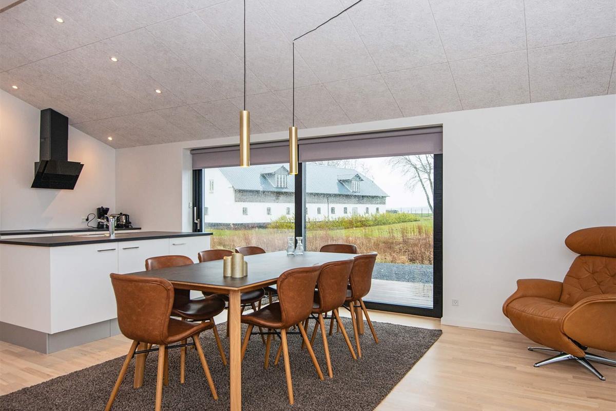 Von der sehr großen Wohnküche des Hauses genießen Sie einen herrlichen Blick auf das Wasser! Alle Räume verfügen über eine komfortable Fußbodenheizung. Die Inneneinrichtung ist im schönen nordischen Stil gehalten. Dieses geräumige Ferienhaus wurde 2021 aus hochwertigen Materialien erbaut und verfügt über eine offene Küche, die mit dem Wohnzimmer verbunden ist. Dort gibt es einen Fernseher und direkten Zugang zur teilweise überdachten Terrasse. Im Außenbereich befinden sich ein Grill und Gartenmöbel. Das Haus verfügt außerdem über vier Schlafzimmer und zwei gute Badezimmer.