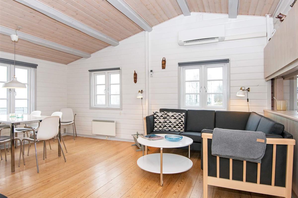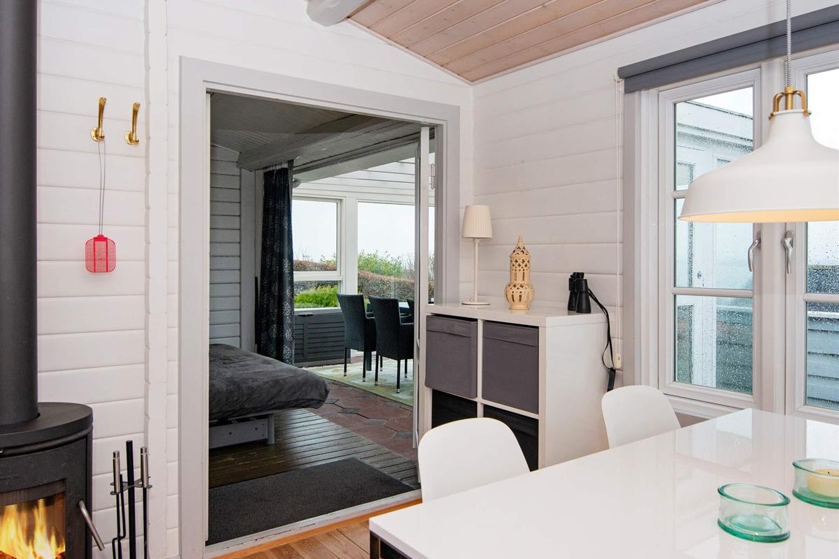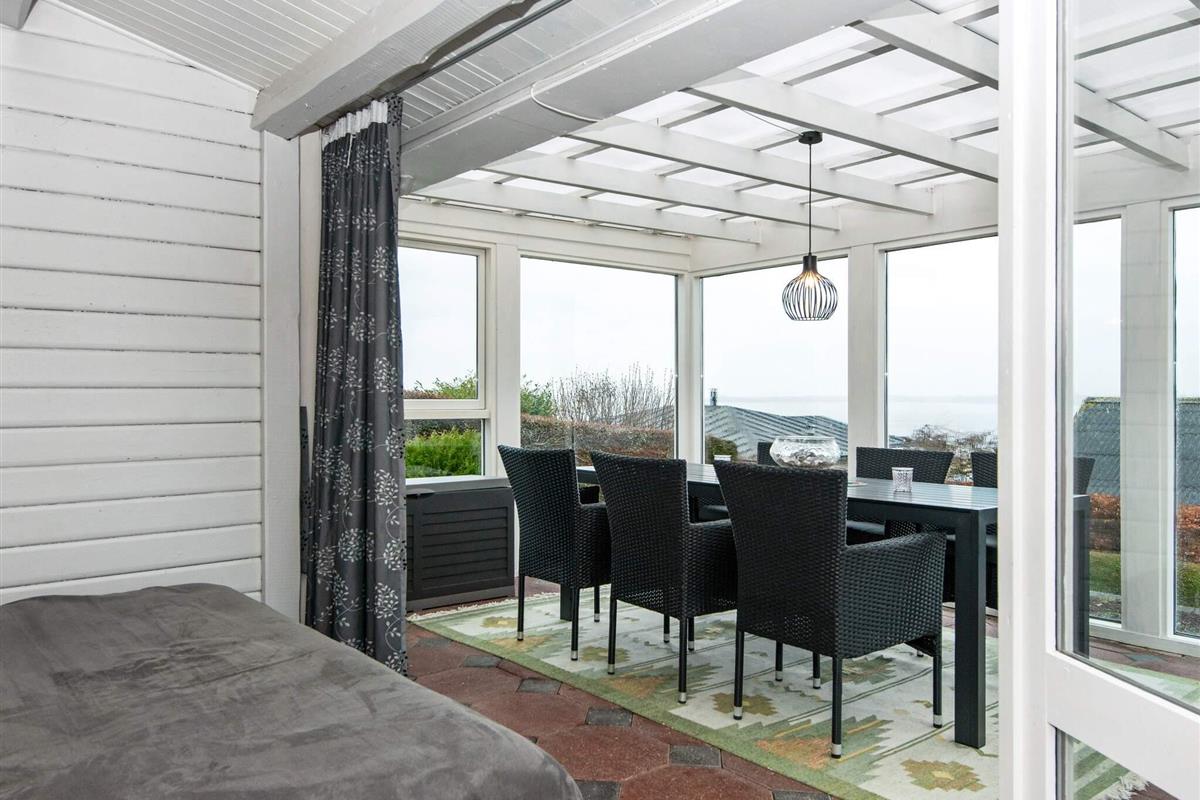 Das Ferienhaus ist hell eingerichtet und hat auch einen 20 m2 großen Wintergarten mit Fjordblick, der sich z.B. für kühlere Abende anbietet. Dort stehen auch zwei Schlafplätze bereit. Genießen Sie Sonnenstunden draußen auf der großen, abgeschirmten Terrassenfläche mit Gartenmöbeln und zwei Sonnenliegen. Zudem extra Gefrierkapazität im Schuppen.
