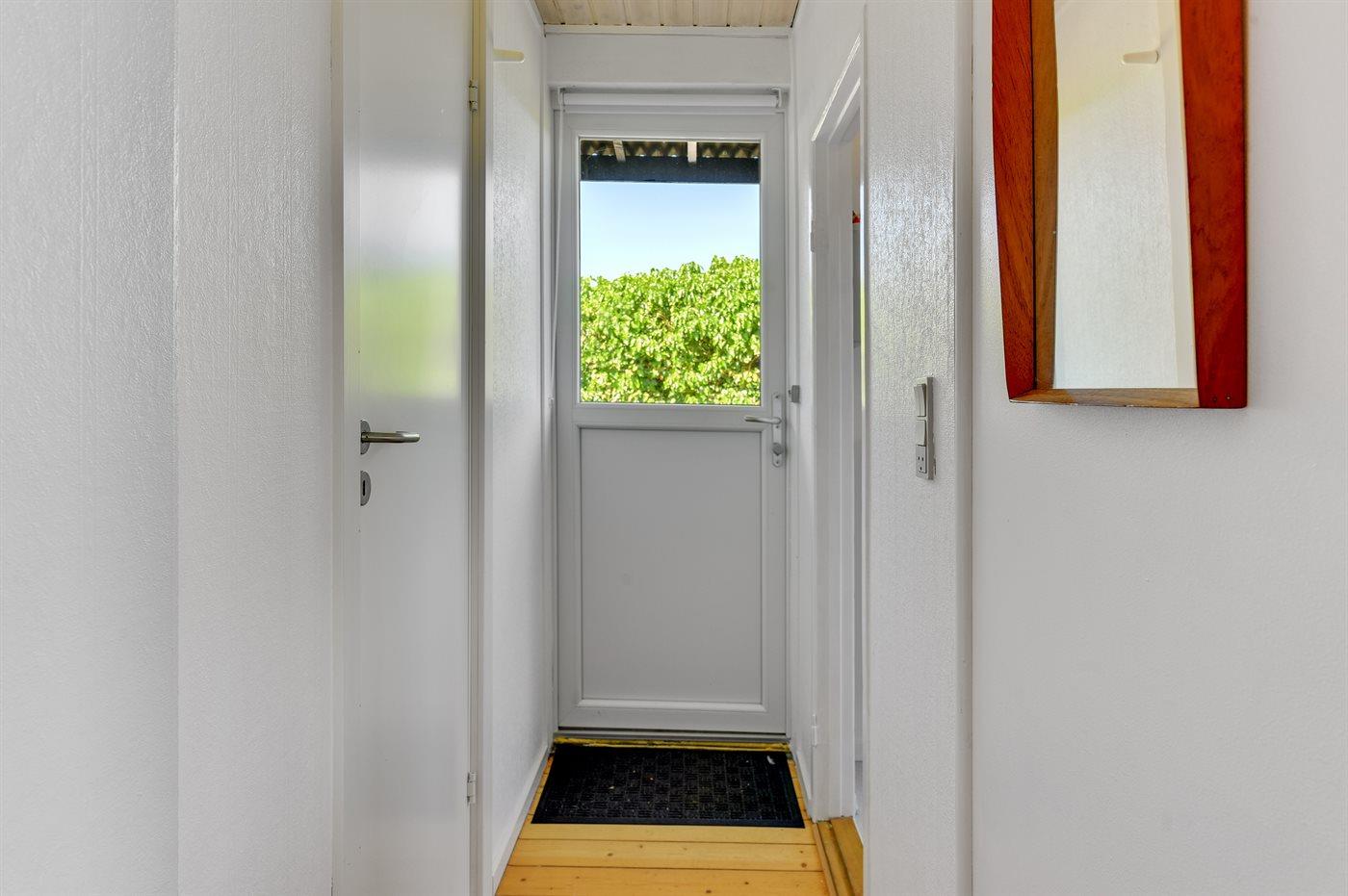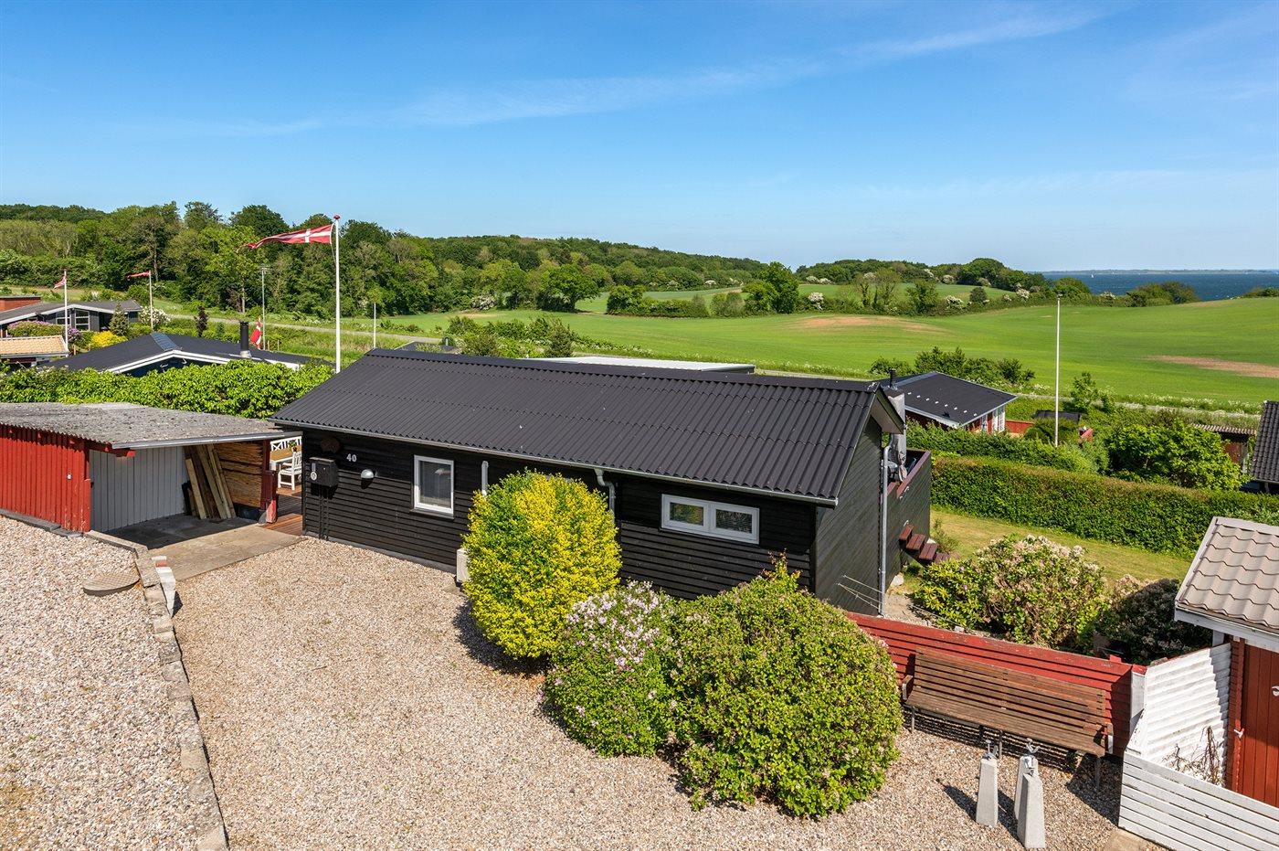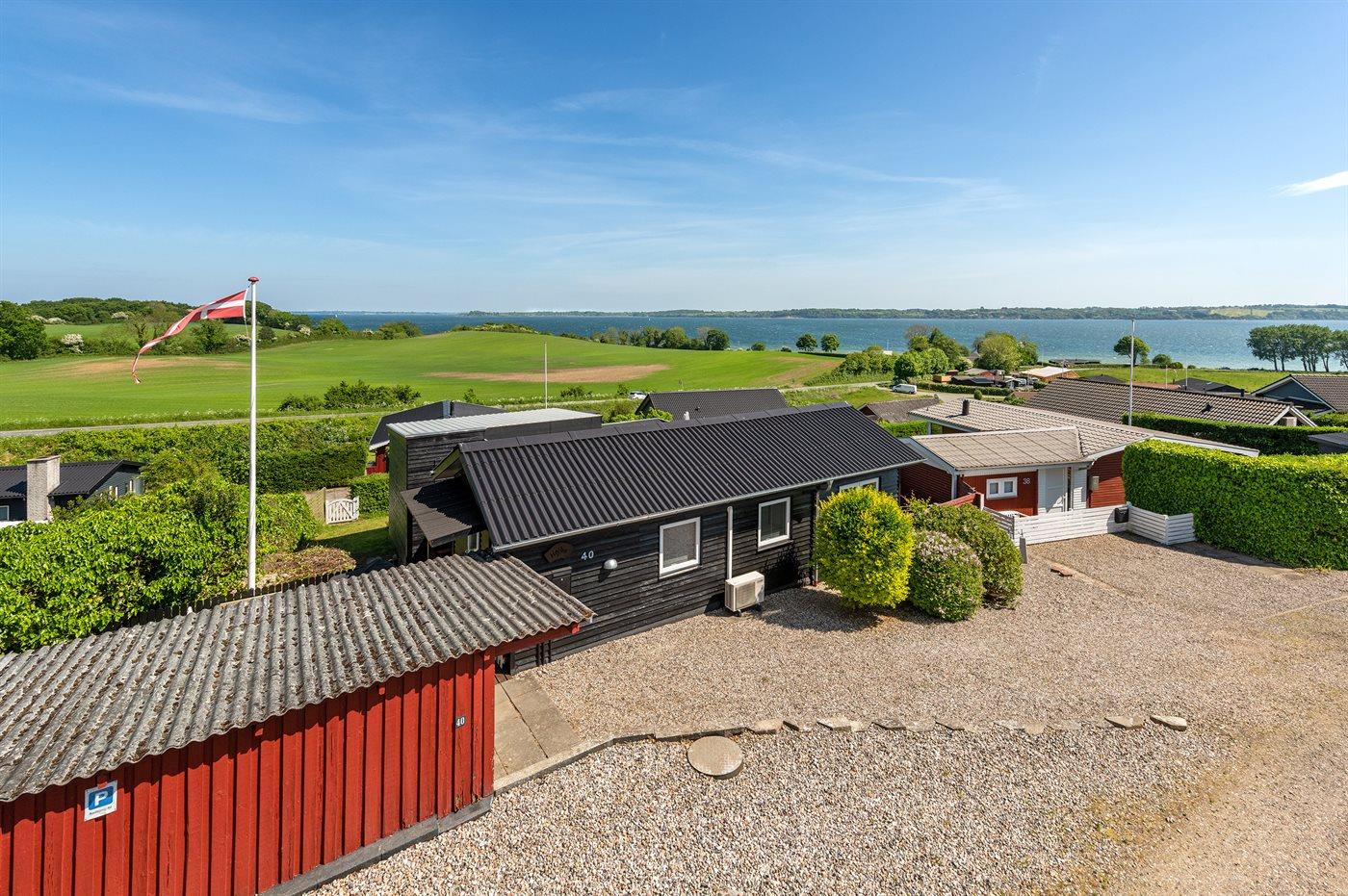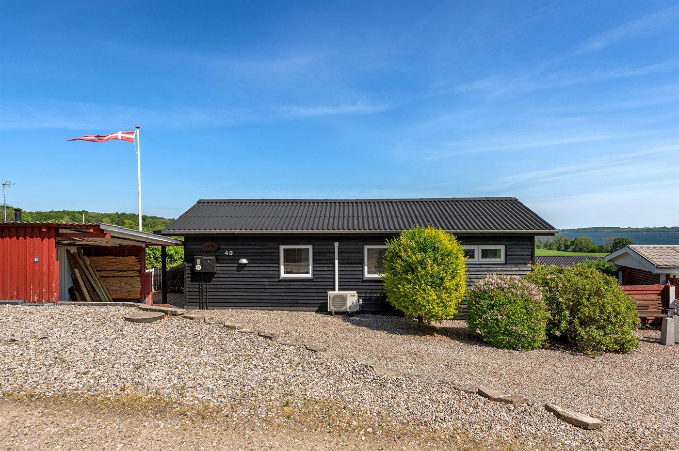 De vakantiewoning is gelegen op een 514 m² groot aangelegde tuin. De grond is omheind. Afstand tot de fjord 300 m. Er is een zwemsteiger in de buurt. Dichtstbijzijnde winkel 5000 m. Er is een golfbaan op een afstand van 7000 m. Bij de vakantiewoning hoort terras. Tevens heeft u de beschikking over een serre. Barbecue. Parkeerplaats bij het huis.