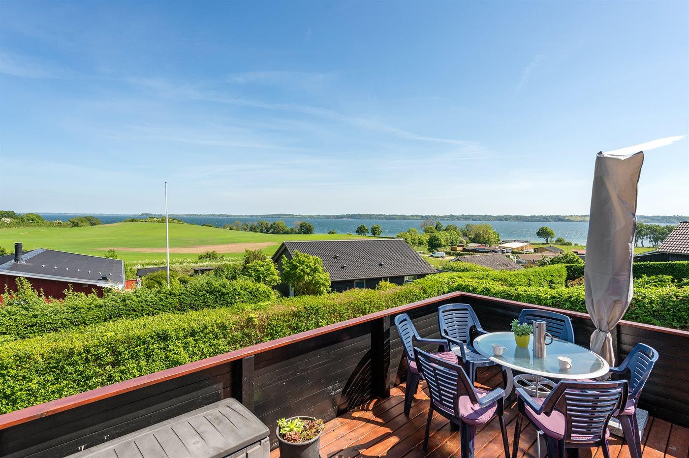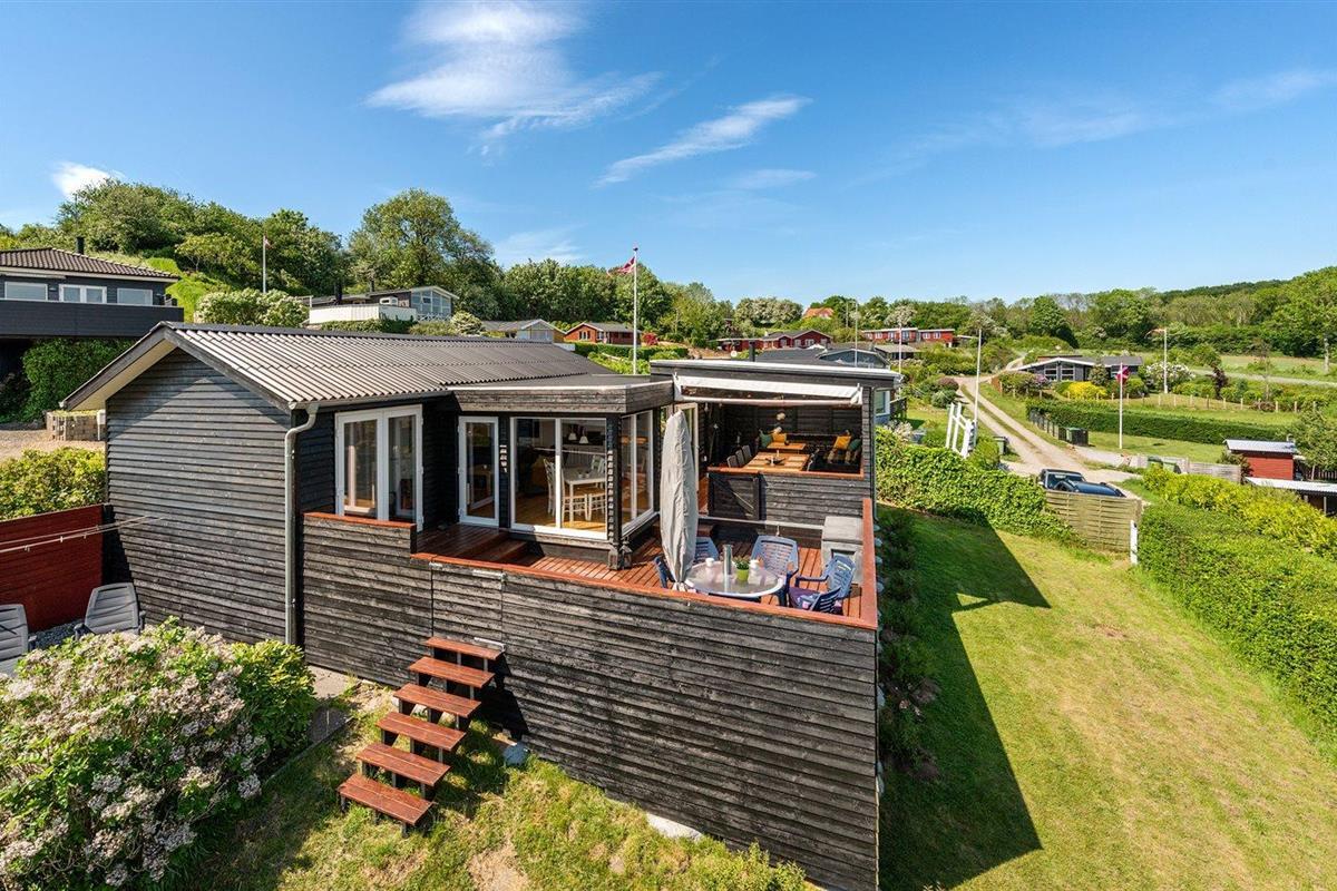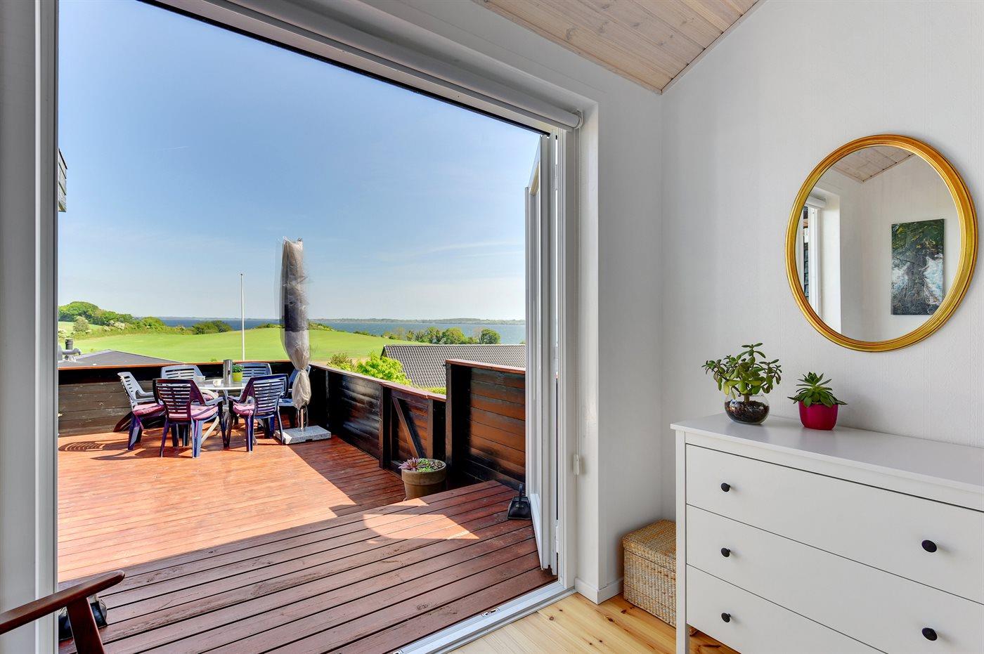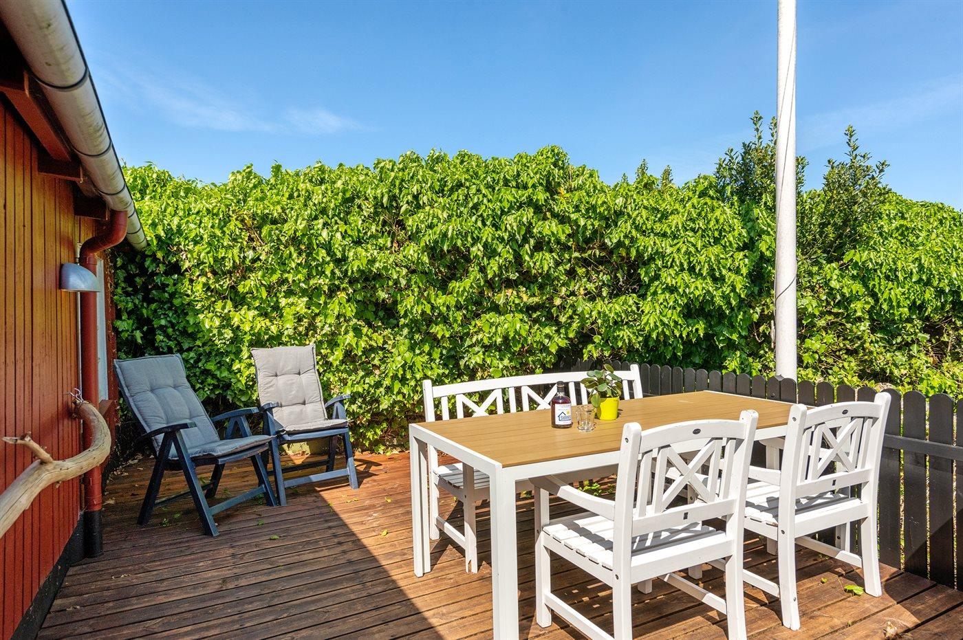 De vakantiewoning is gelegen op een 514 m² groot aangelegde tuin. De grond is omheind. Afstand tot de fjord 300 m. Er is een zwemsteiger in de buurt. Dichtstbijzijnde winkel 5000 m. Er is een golfbaan op een afstand van 7000 m. Bij de vakantiewoning hoort terras. Tevens heeft u de beschikking over een serre. Barbecue. Parkeerplaats bij het huis.
