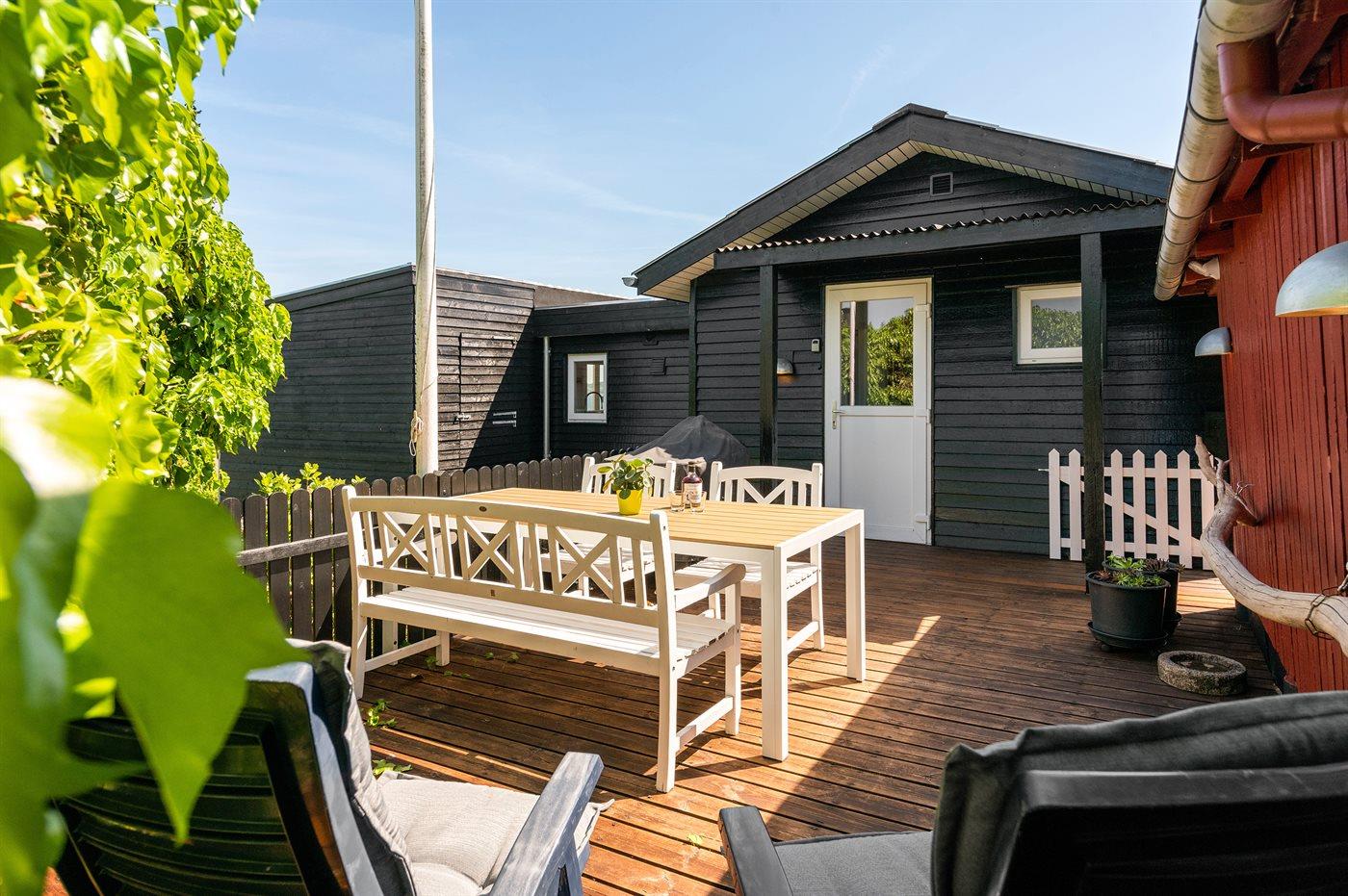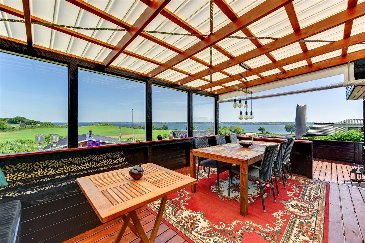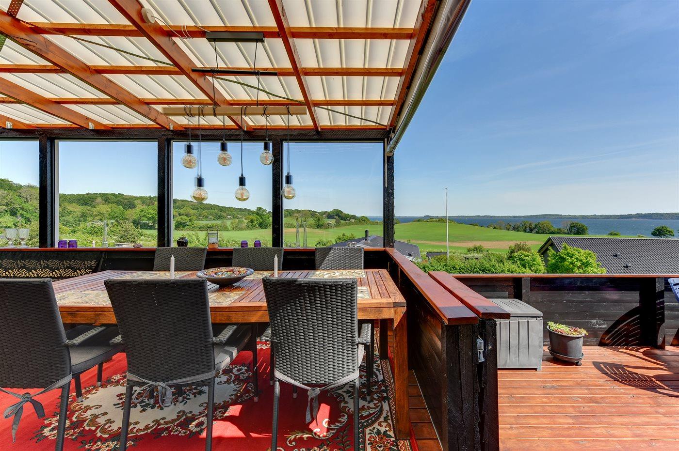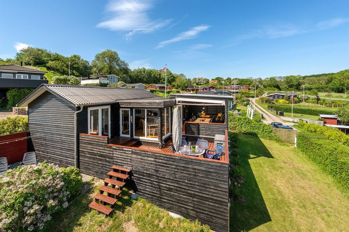 De vakantiewoning is gelegen op een 514 m² groot aangelegde tuin. De grond is omheind. Afstand tot de fjord 300 m. Er is een zwemsteiger in de buurt. Dichtstbijzijnde winkel 5000 m. Er is een golfbaan op een afstand van 7000 m. Bij de vakantiewoning hoort terras. Tevens heeft u de beschikking over een serre. Barbecue. Parkeerplaats bij het huis.