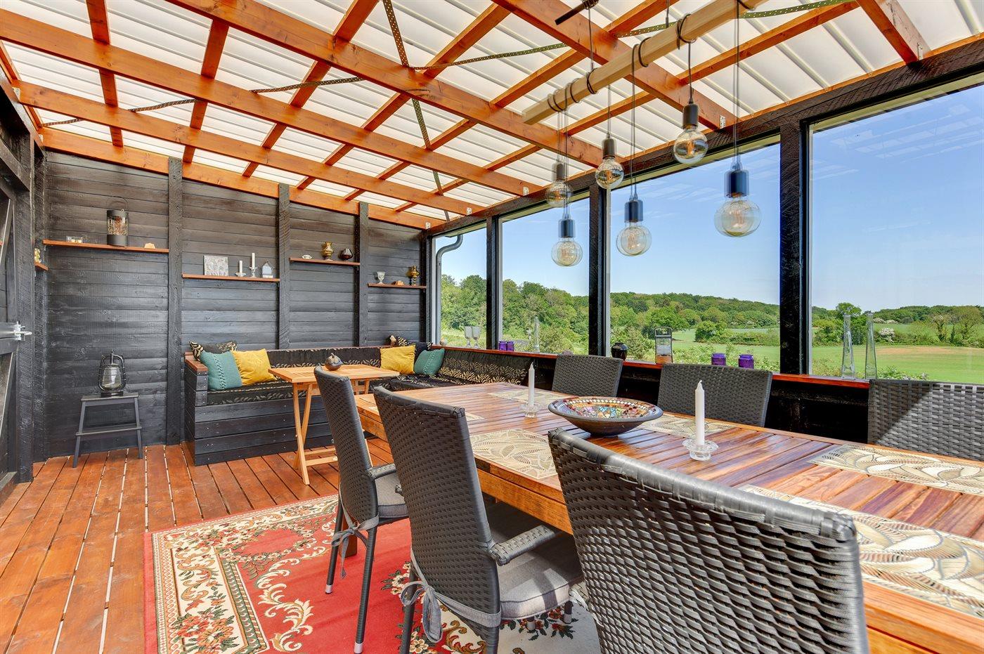 Modern gerenoveerd vakantiehuis nabij de fjord met tuin, serre en houtkachel voor een ontspannen verblijf.
