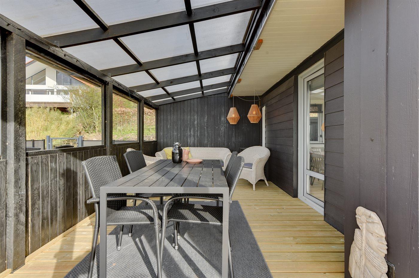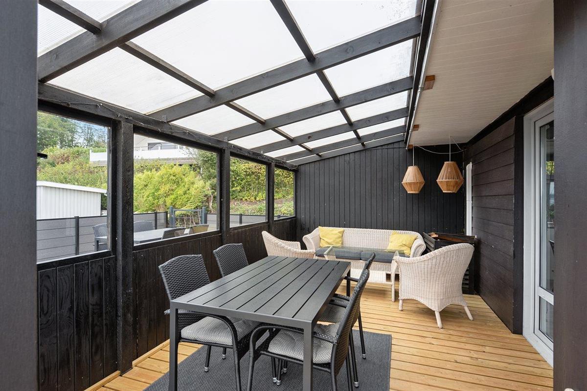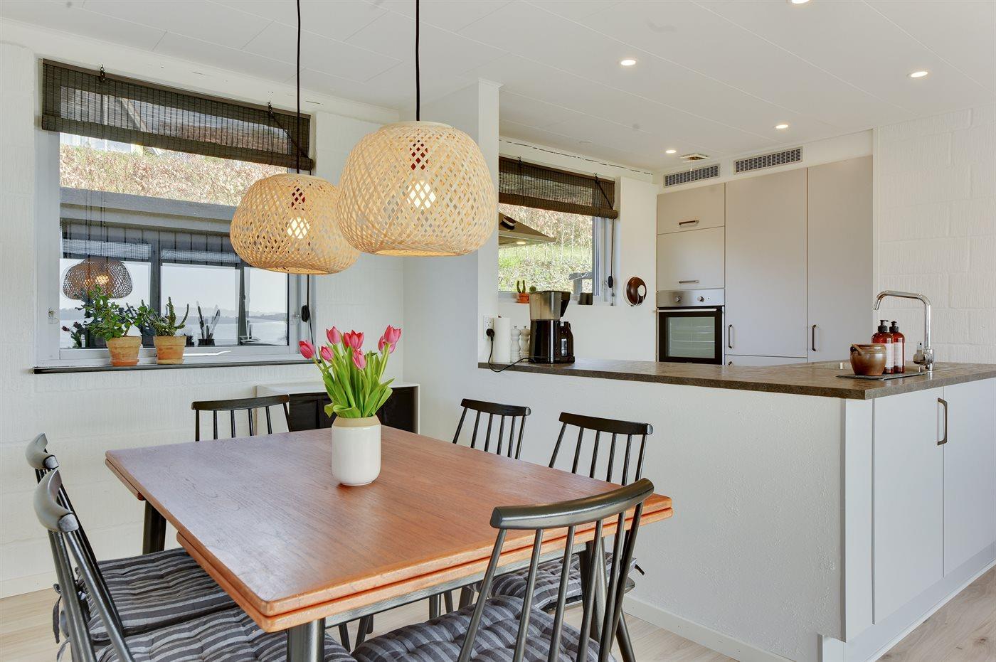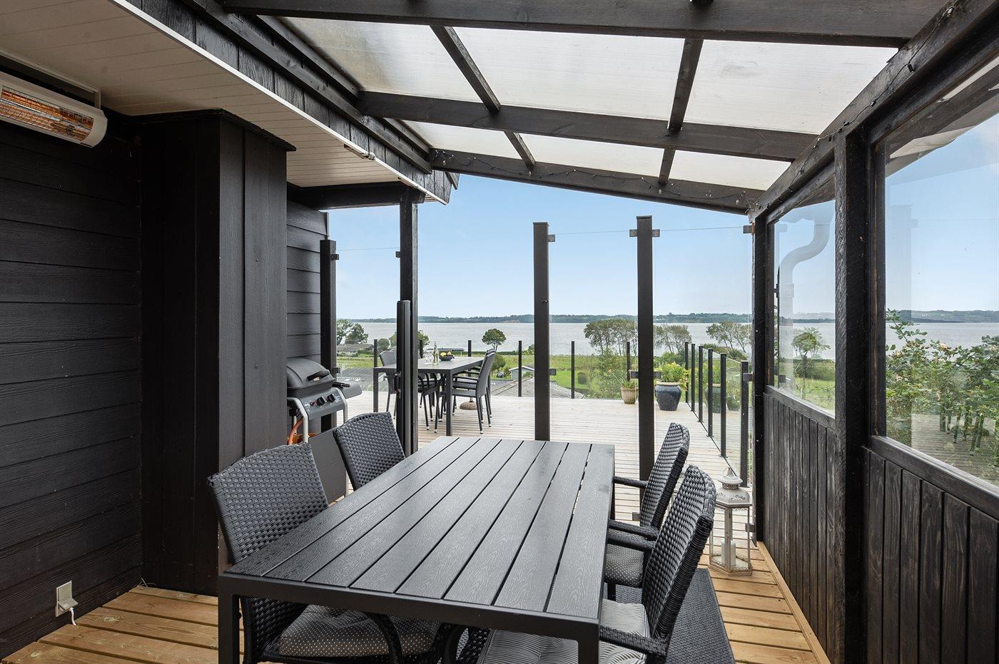 De vakantiewoning is gelegen op een 600 m² groot natuural grond. Afstand tot de fjord 330 m. Dichtstbijzijnde winkel 6000 m. Daarnaast is er een 15 m² groot overdekt terras. Waarvan in totaal 125 m² beschut terras. Afstand tot speelplaats 300 m. Barbecue. Parkeerplaats bij het huis.