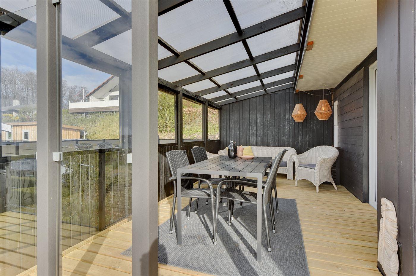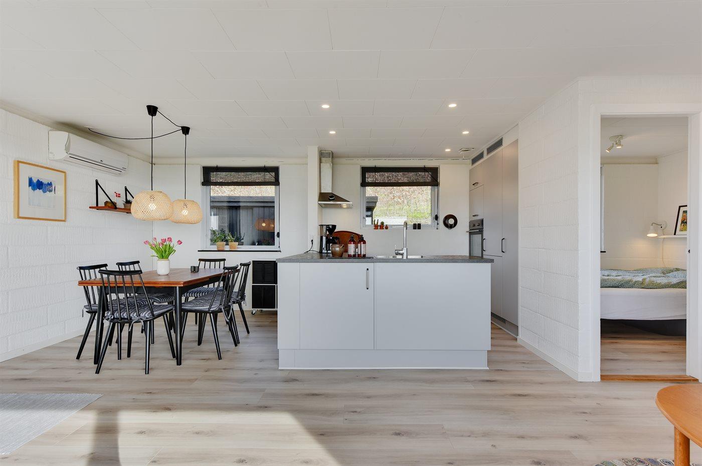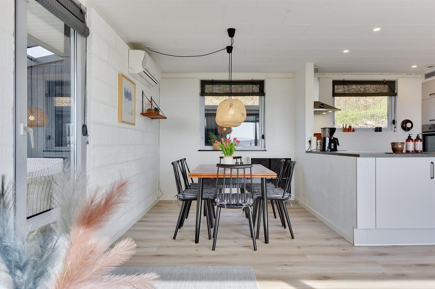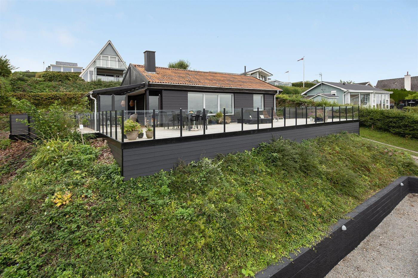 De vakantiewoning is gelegen op een 600 m² groot natuural grond. Afstand tot de fjord 330 m. Dichtstbijzijnde winkel 6000 m. Daarnaast is er een 15 m² groot overdekt terras. Waarvan in totaal 125 m² beschut terras. Afstand tot speelplaats 300 m. Barbecue. Parkeerplaats bij het huis.