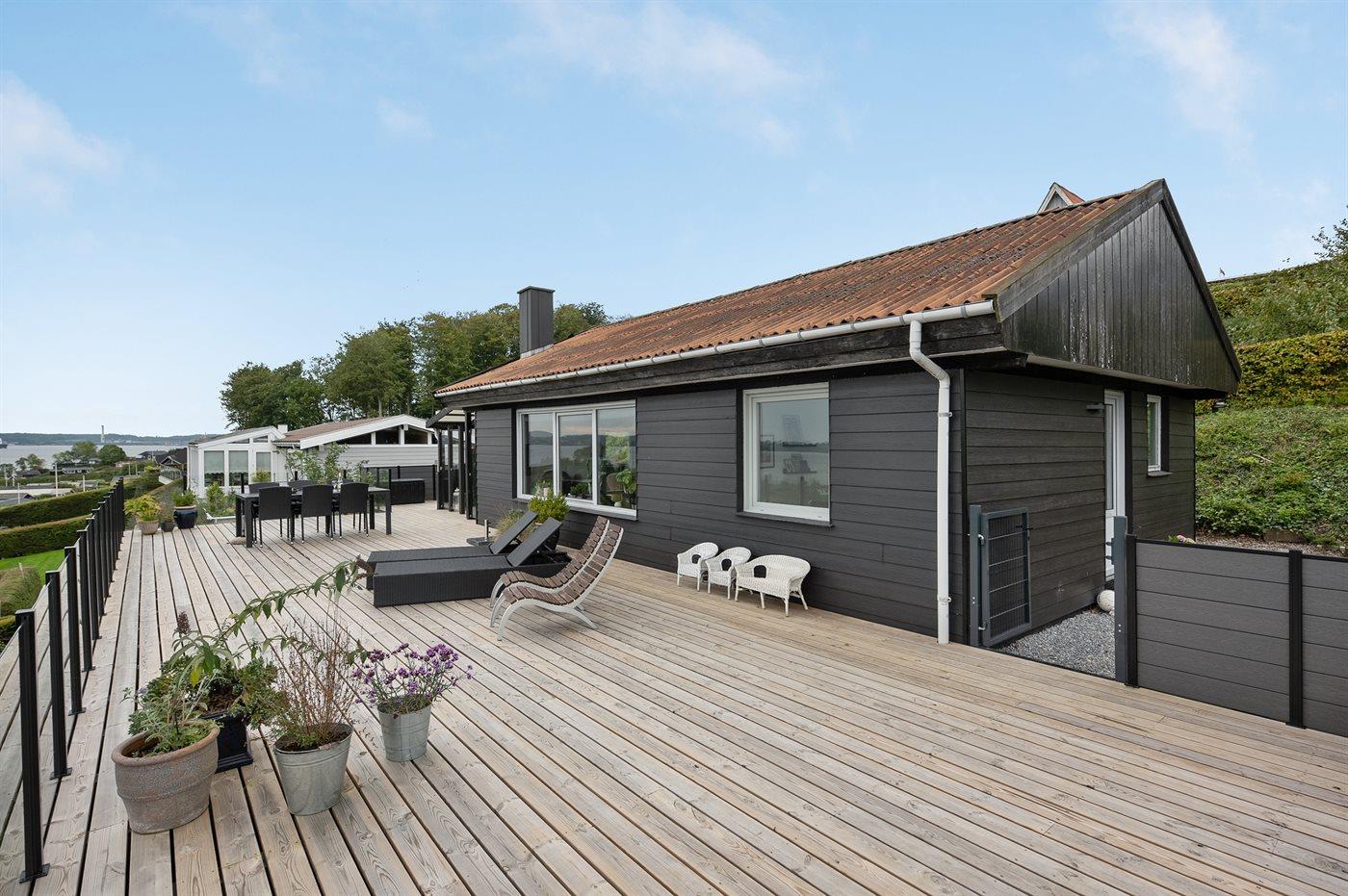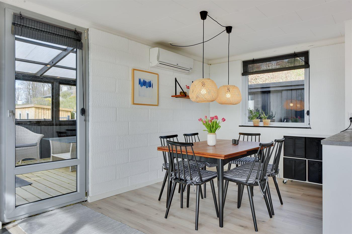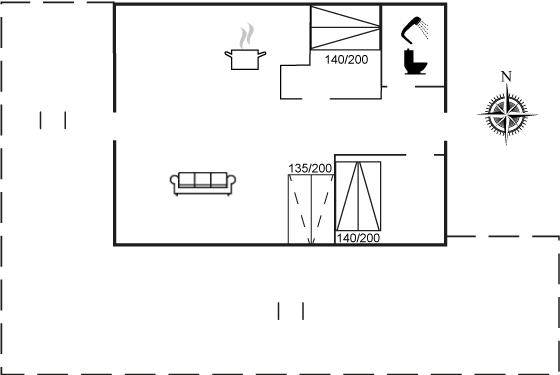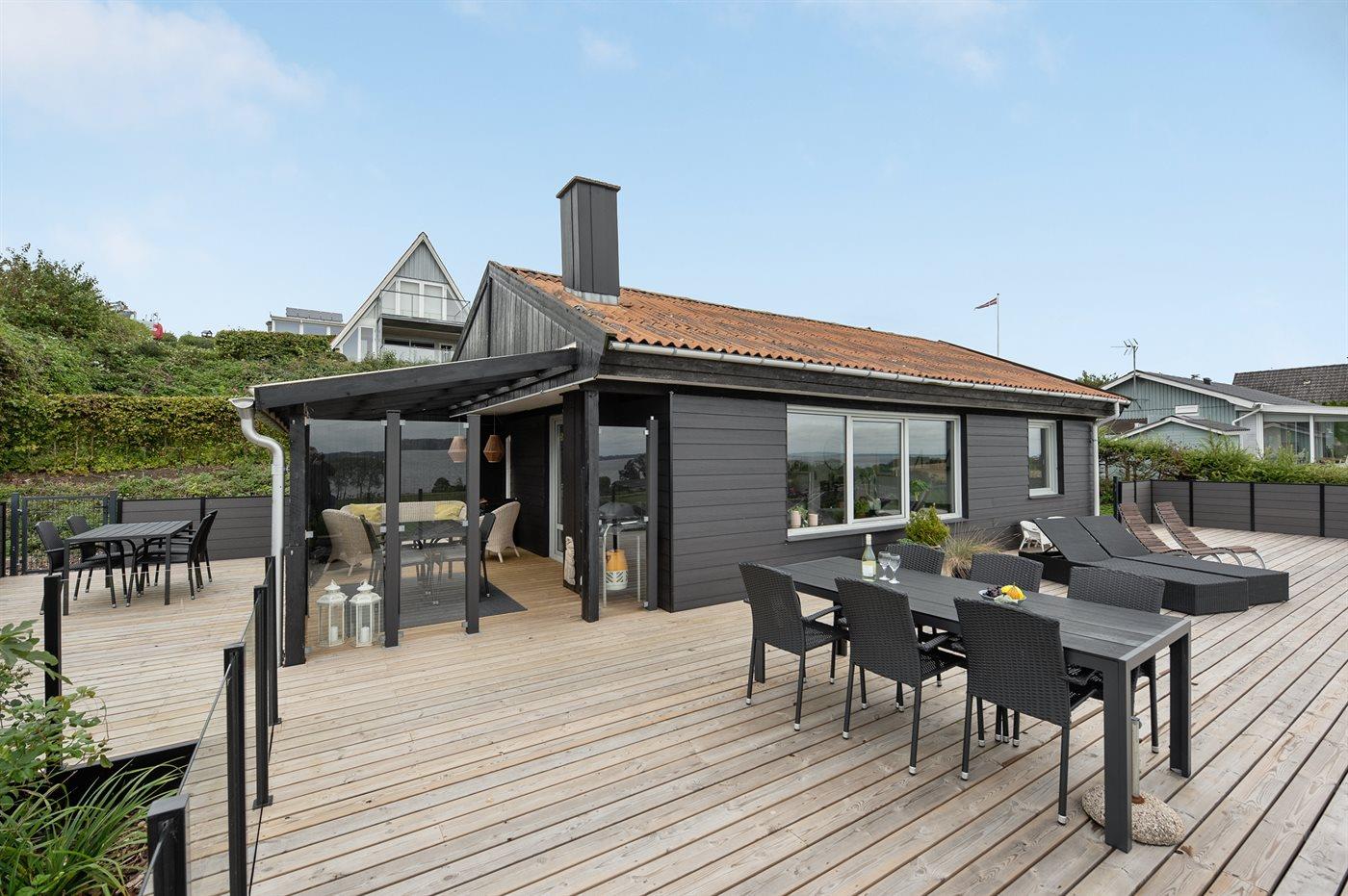 De vakantiewoning is gelegen op een 600 m² groot natuural grond. Afstand tot de fjord 330 m. Dichtstbijzijnde winkel 6000 m. Daarnaast is er een 15 m² groot overdekt terras. Waarvan in totaal 125 m² beschut terras. Afstand tot speelplaats 300 m. Barbecue. Parkeerplaats bij het huis.