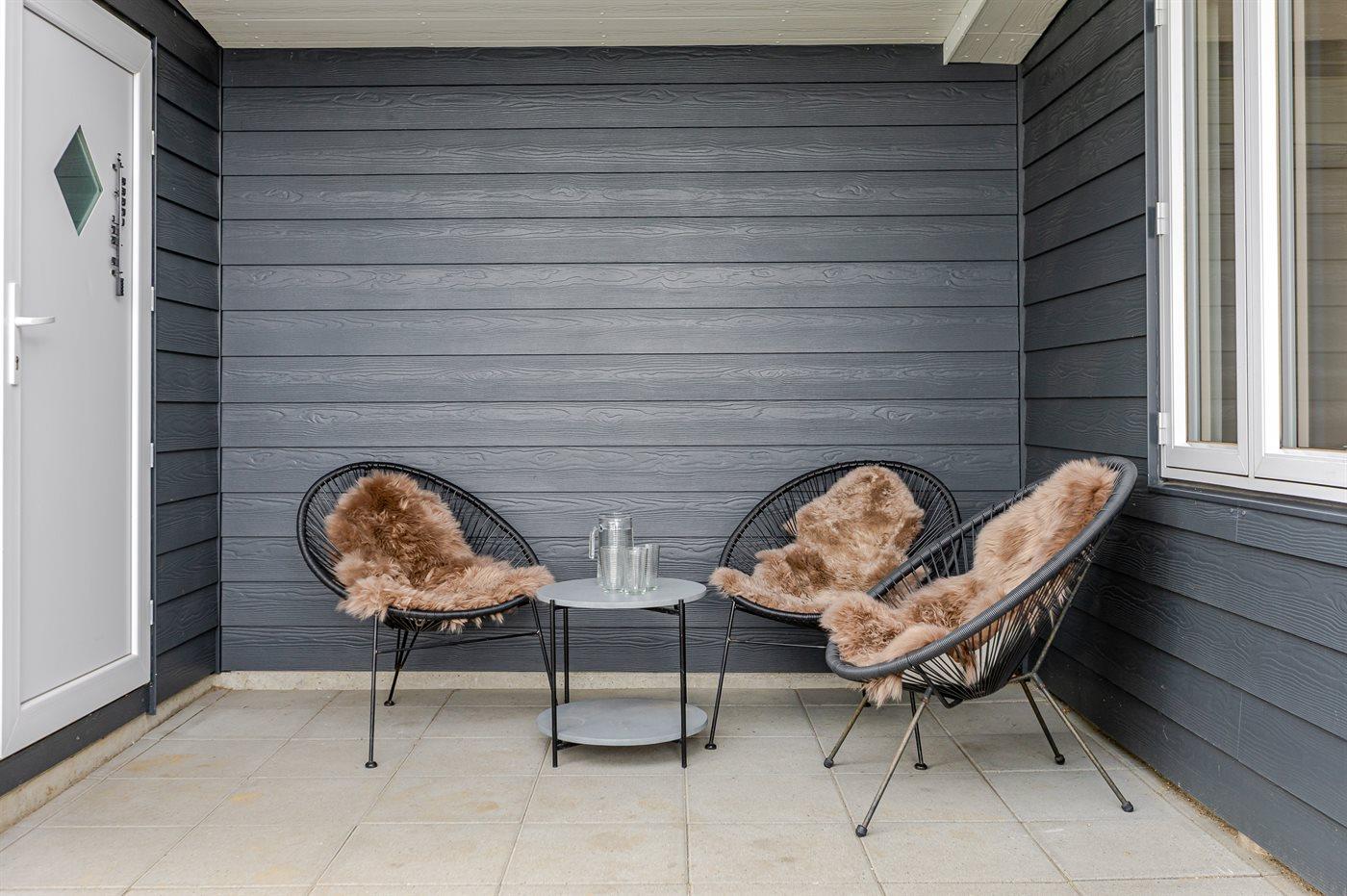 De vakantiewoning is gelegen op een 530 m² groot aangelegde tuin. Afstand tot de zee 350 m. Dichtstbijzijnde winkel 6000 m. Bij de vakantiewoning hoort terras. Daarnaast is er een overdekt terras. Barbecue. Parkeerplaats bij het huis.