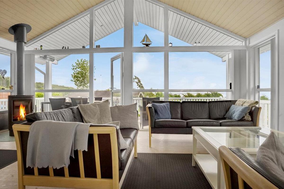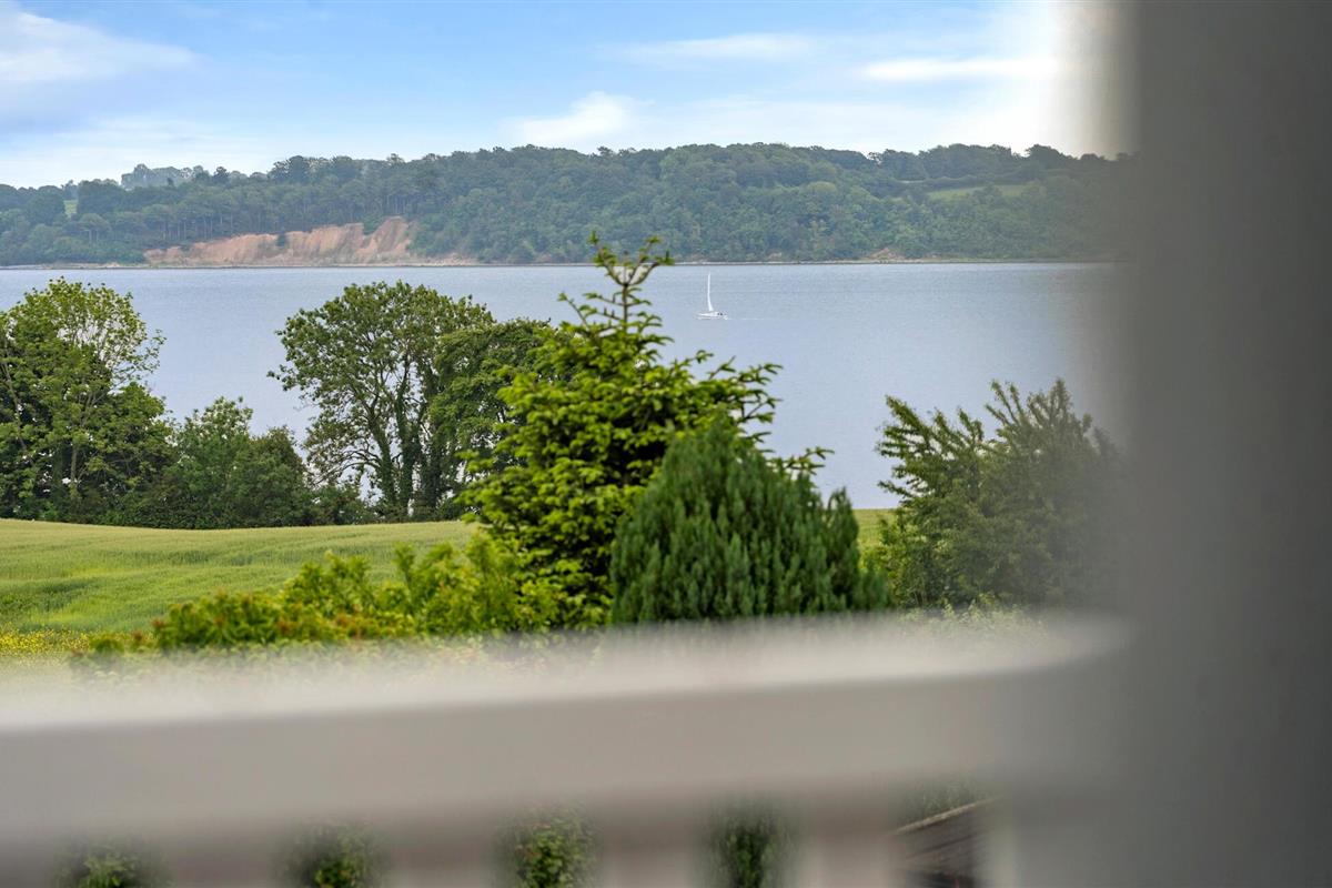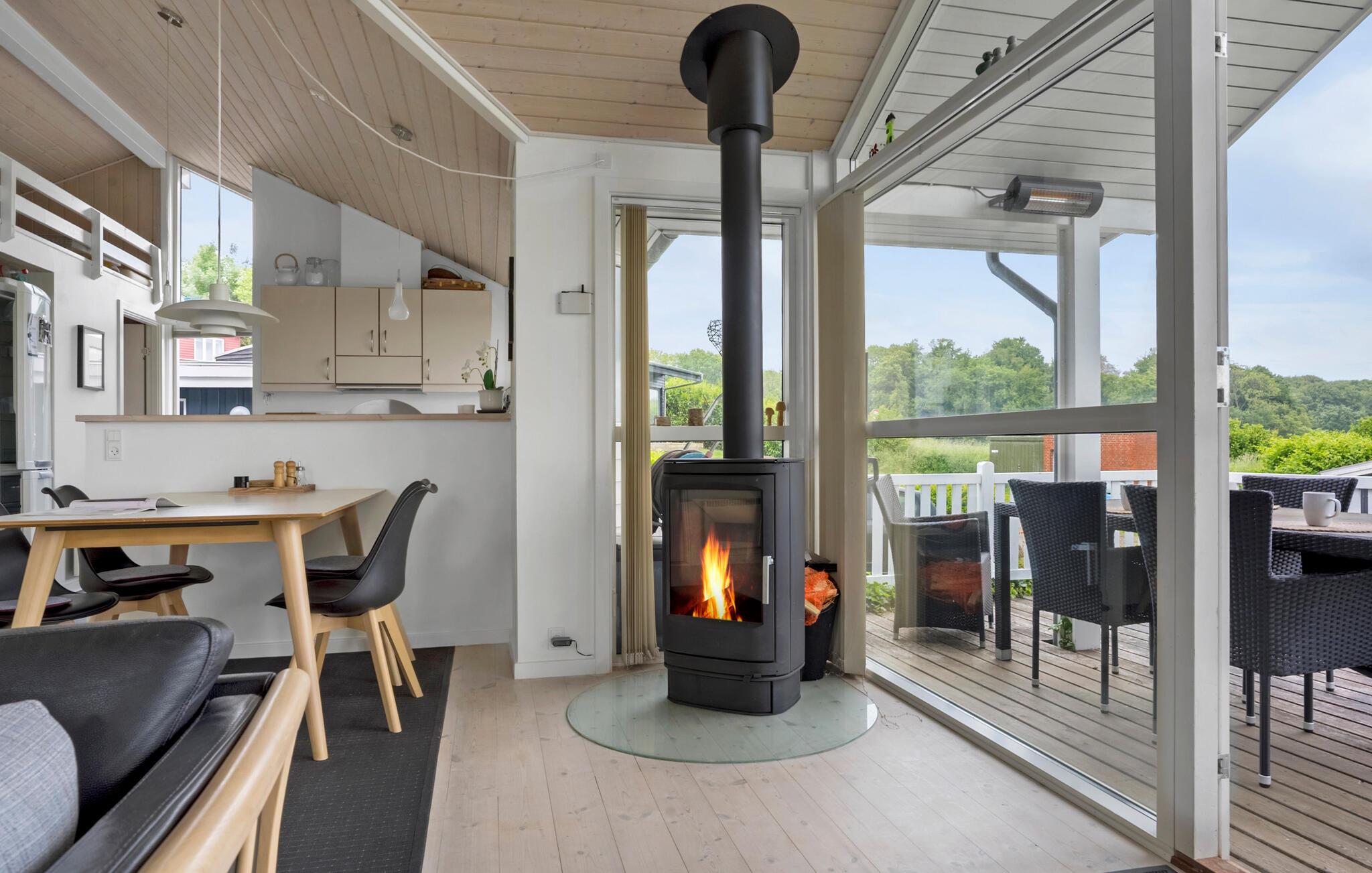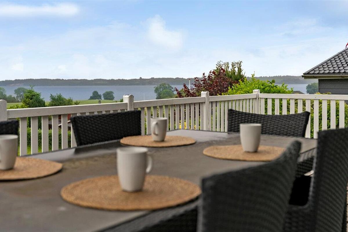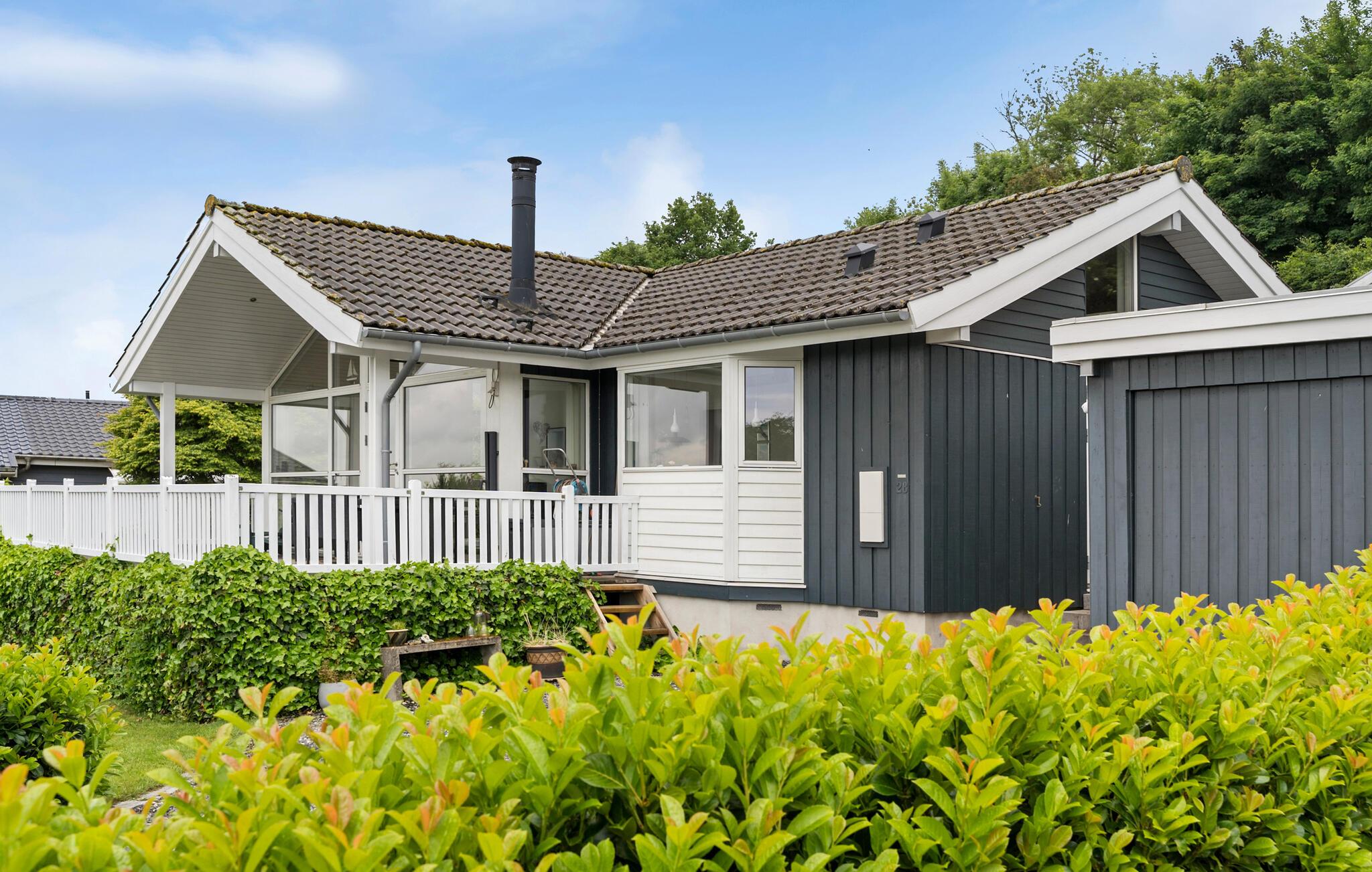 Comfortabel vakantiehuis met panoramisch zeezicht, houtkachel en open terras nabij het strand van Aabenraa.