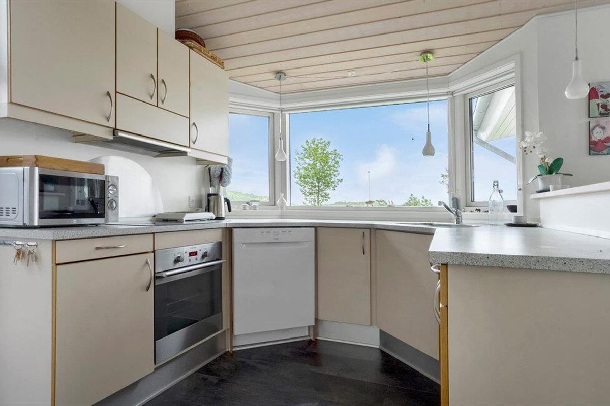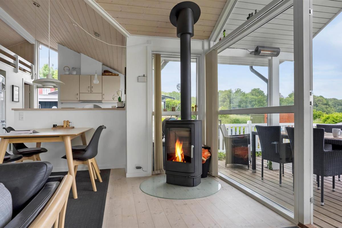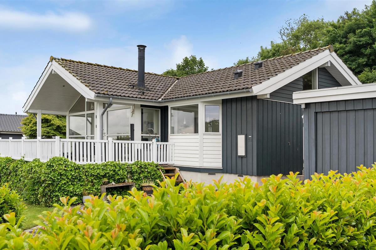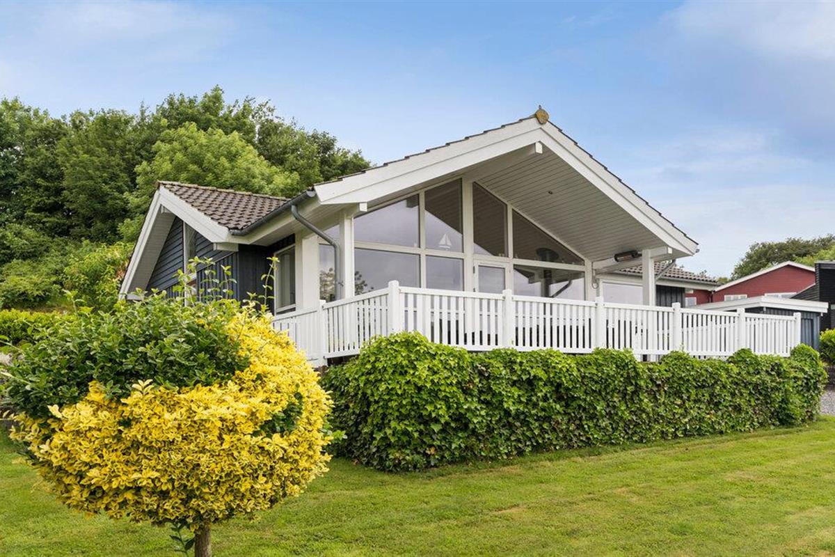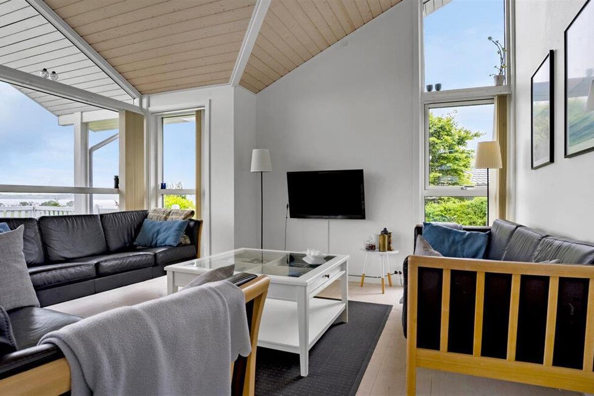 Comfortabel vakantiehuis met panoramisch zeezicht, houtkachel en open terras nabij het strand van Aabenraa.