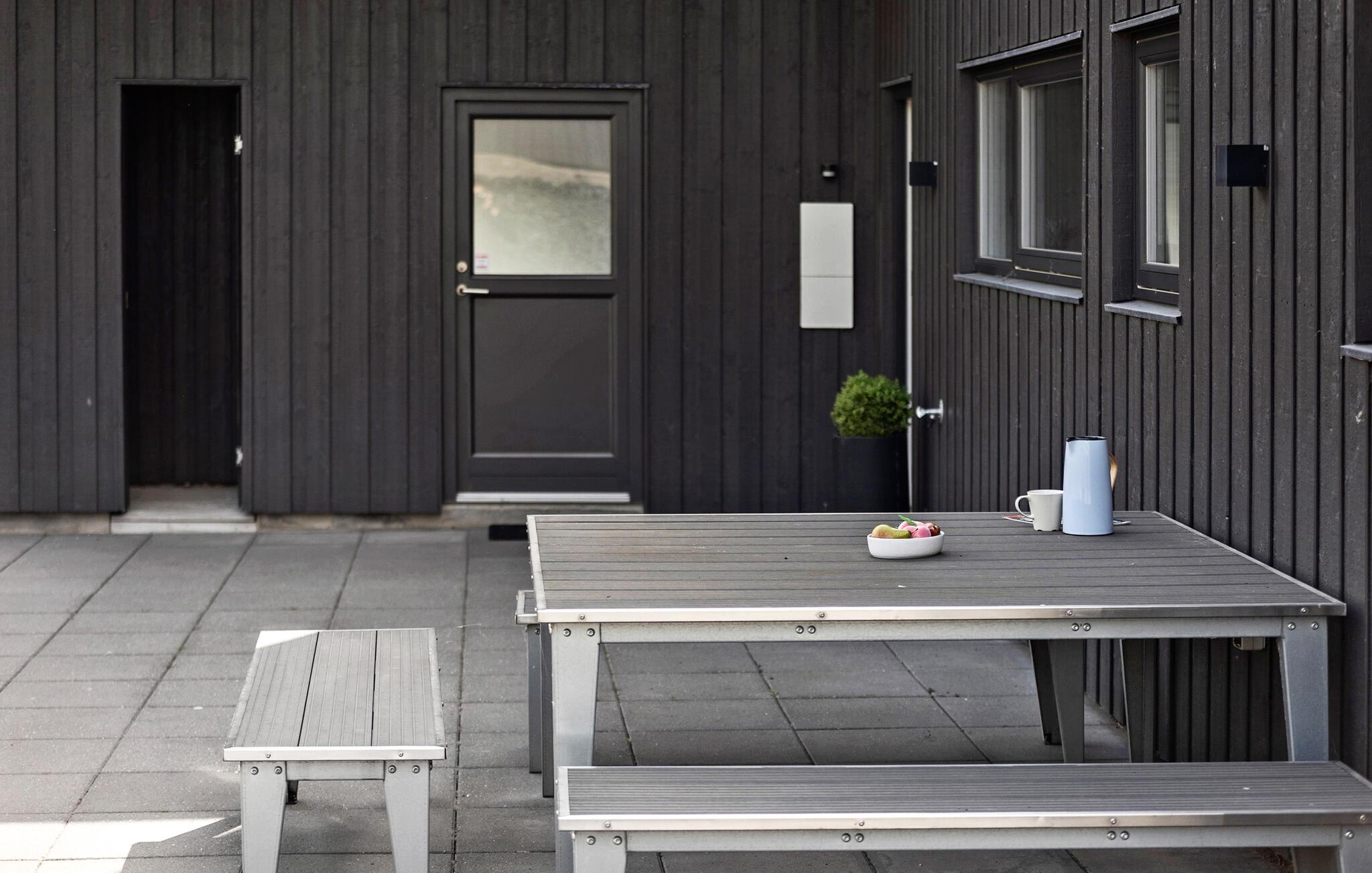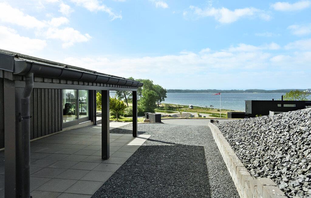 Neem plaats op het overdekte terras en laat je blik dwalen over het water bij het Skarrev strand. Geniet van de frisse lucht en breng gezellige uren buiten door met een barbecue of een glas wijn. De grote buitenruimte nodigt ook uit tot spelen en vertoeven.