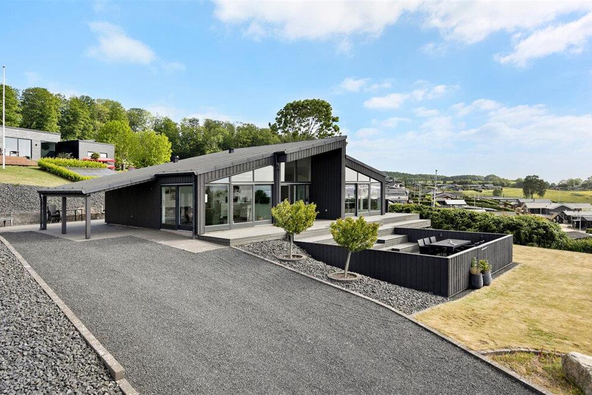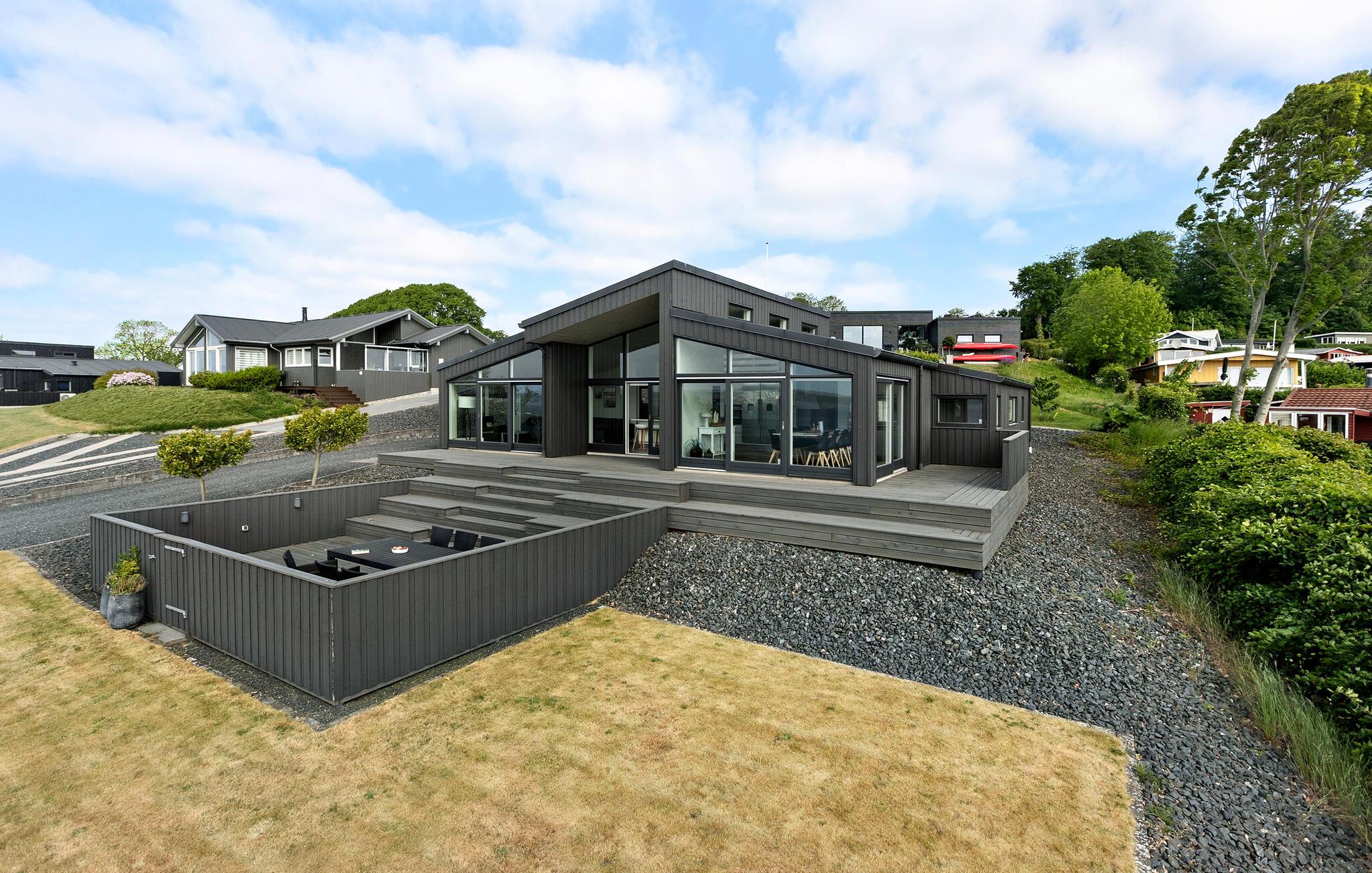 Stijlvol vakantiehuis aan Skarrev Strand met whirlpool, panoramisch uitzicht en directe strandtoegang.