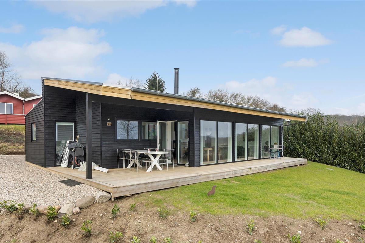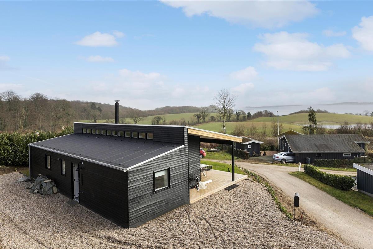 Geniet van een modern vakantiehuis met panoramisch uitzicht op het Apenrad Fjord in Skarrev, Denemarken.