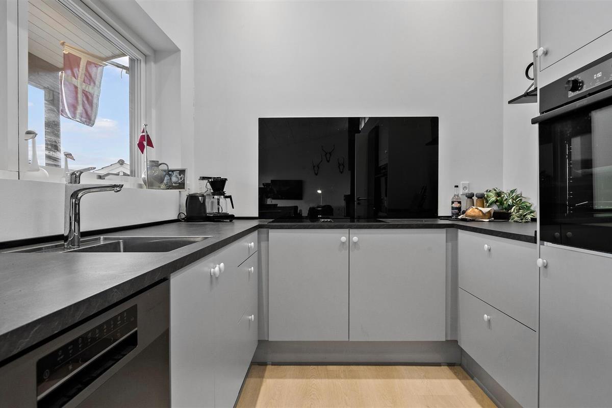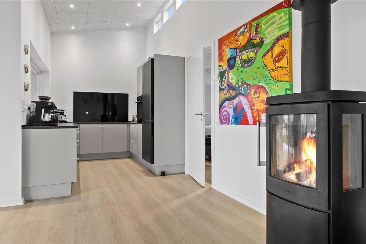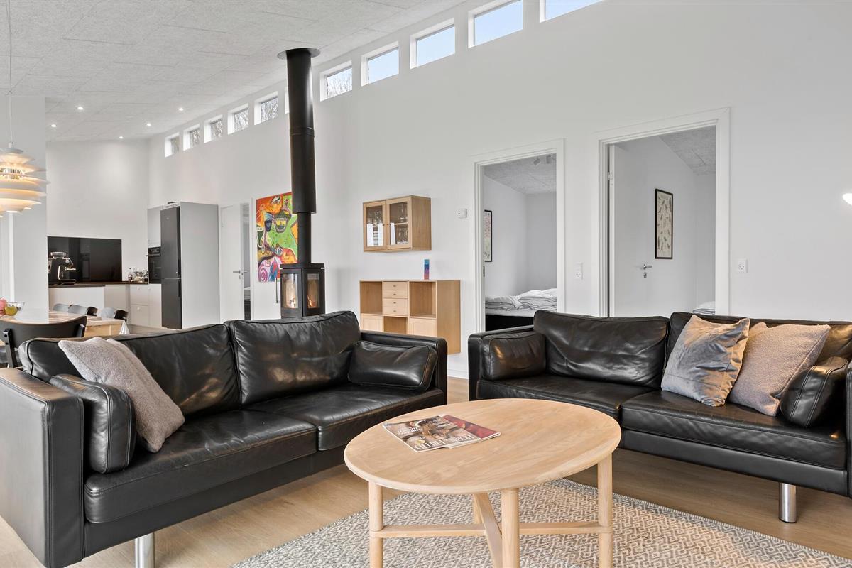 Laat je blik over het glinsterende water dwalen en geniet van de rust in dit stijlvolle vakantiehuis in Skarrev. De lichte woonkamer met hoge plafonds combineert wonen, eten en koken in een harmonieuze sfeer. Modern meubilair en grote vensterpuien creëren een open en uitnodigende sfeer waarin je gewoon kunt ontspannen en genieten van je dagelijkse vakantie. Je kunt genieten van een ontspannen ontbijt op het houten terras of de dag afsluiten met een glas wijn terwijl je kinderen in de tuin spelen.