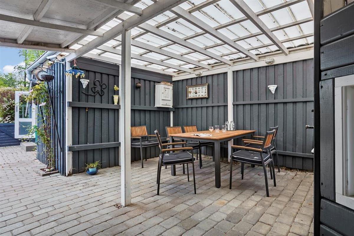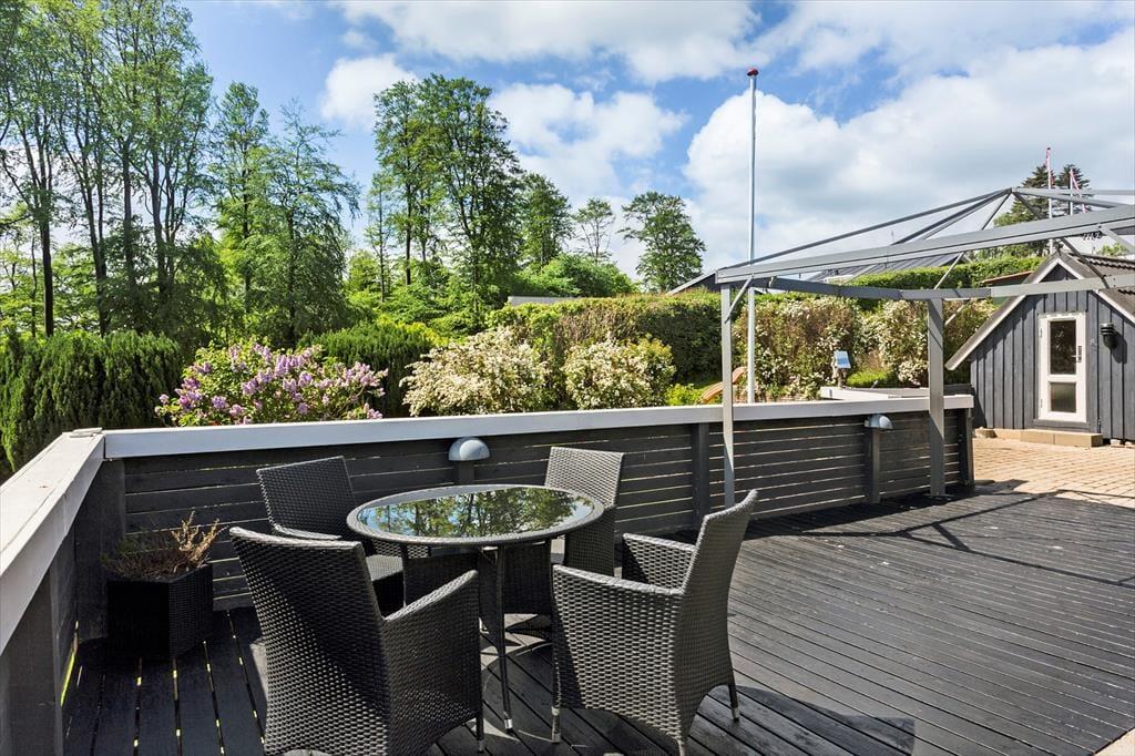 Outside, the relaxed atmosphere continues. The spacious terrace wraps around the house and offers both sun and shade throughout the day. Here you can enjoy your morning coffee with a view of the water or gather the whole family for a barbecue and cozy evenings under the open sky. The garden furniture invites pure relaxation, and it feels natural to lean back and listen to the birdsong from the surrounding trees. The garden is green and inviting, with plenty of space for play and movement for the youngest members of the family, who will surely enjoy the slide. Whether you seek peace in the sun with a good book or fun and activity for the children, the outdoor areas offer every opportunity for quality time in the fresh air.
