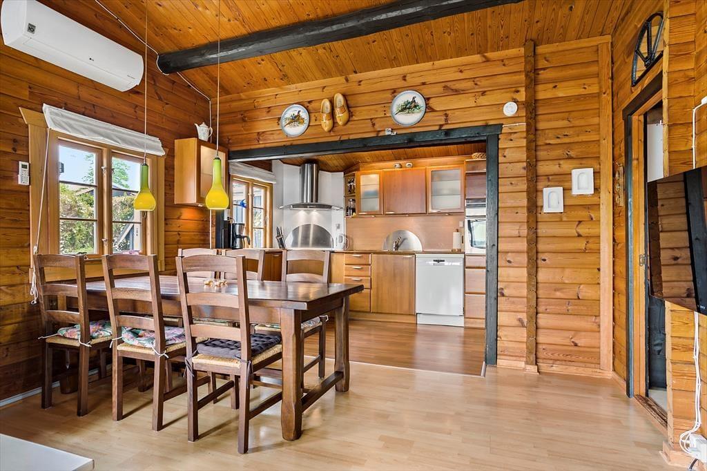 As you step into the holiday home, you are welcomed by a bright and inviting living area where the kitchen and lounge blend harmoniously into one open space. Both aesthetics and functionality have been carefully considered, so you quickly feel at home. Large windows draw in plenty of natural light and offer views of the garden and the surrounding landscape – with glimpses of blue water on the horizon. The interior is modern and well balanced, and the fine details throughout the house create a warm and welcoming atmosphere. This is where you can gather for shared cooking, cozy meals and long evenings filled with games and conversation – all within surroundings that invite togetherness. The bedrooms are calm and comfortable, and the bathroom appears bright and well kept, all contributing to the relaxed holiday mood.