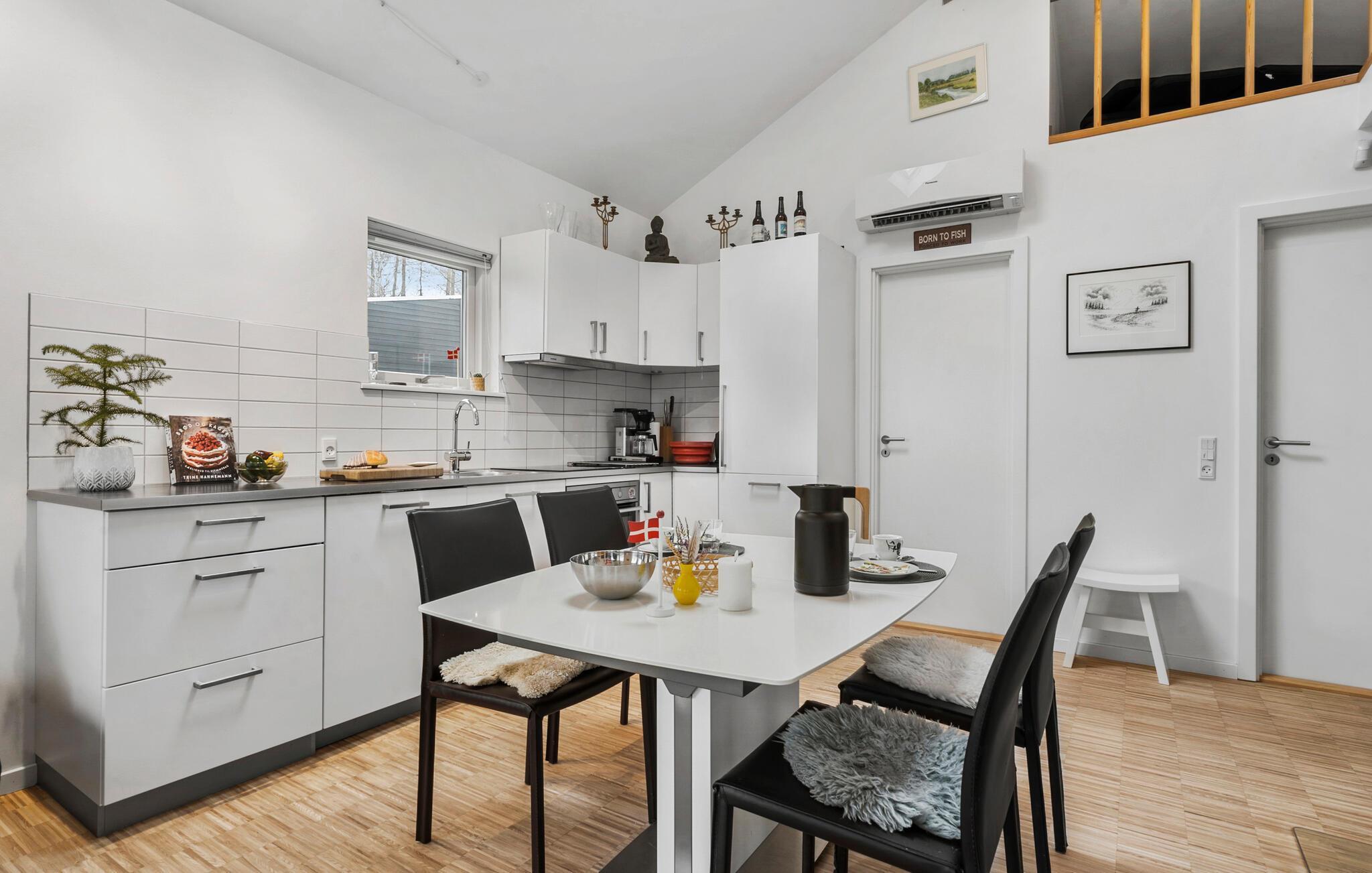 Dit charmante huis ligt vlak bij het idyllische Højkilde Fiskesø en vlakbij Skjern Å. Het is ideaal voor natuurliefhebbers en vissers die willen genieten van de rust van de omgeving terwijl ze hun hobby uitoefenen. Begin de dag met een ontbijt op het overdekte terras, vanwaar je kunt genieten van het uitzicht op de omliggende natuur en het weelderige groen. Het huis is omgeven door een grote, natuurlijke tuin en biedt volop ruimte om te ontspannen en te ontdekken. De gezellige woonkamer is ingericht met comfortabele meubels en nodigt je uit om te blijven hangen. Leun achterover en geniet van de vredige sfeer die dit huis biedt. In de goed uitgeruste keuken kun je de gevangen vis bereiden.