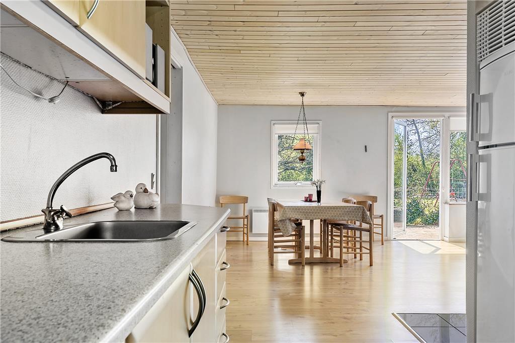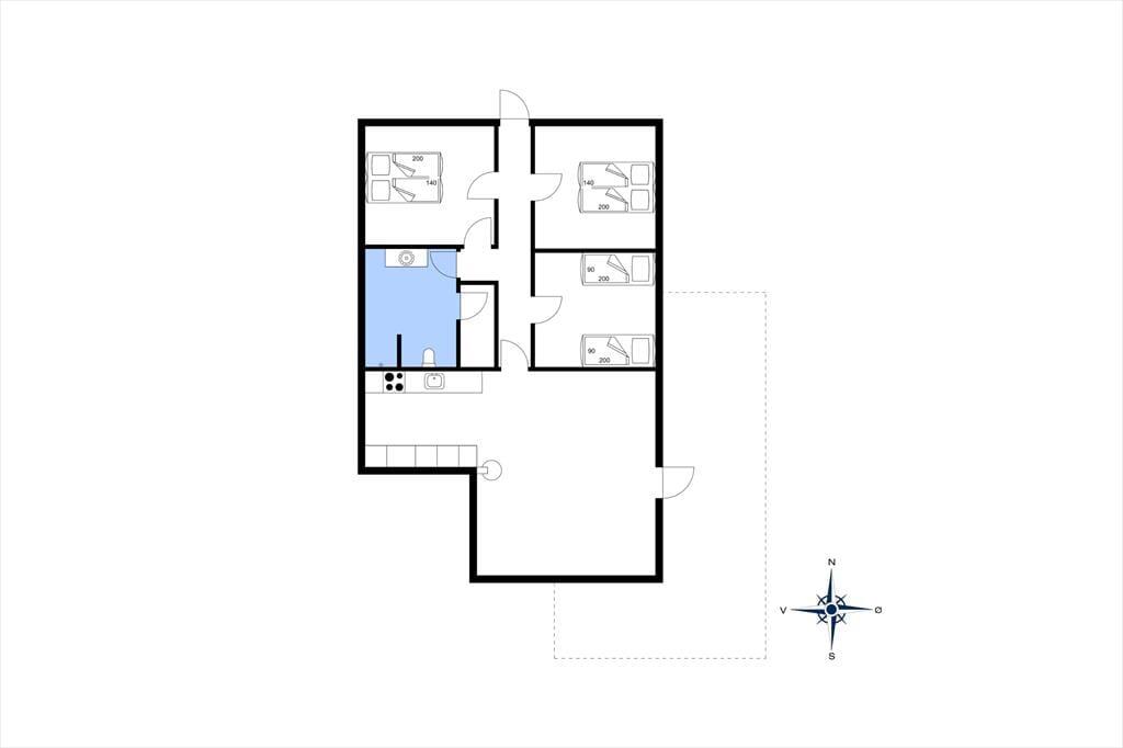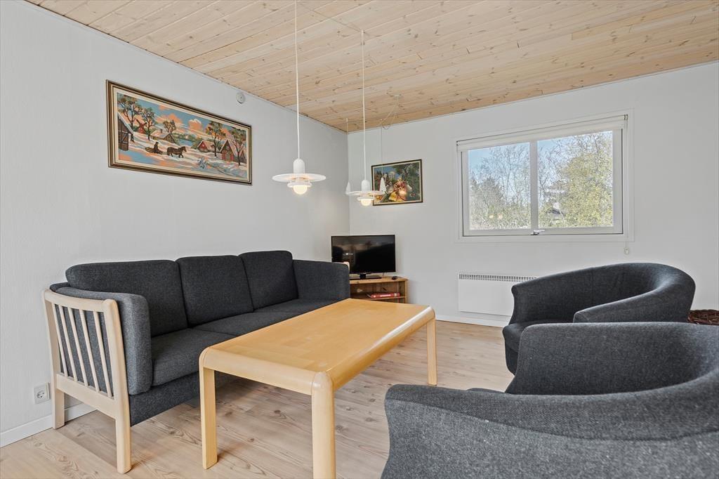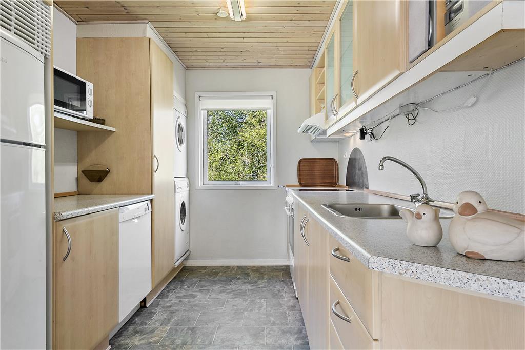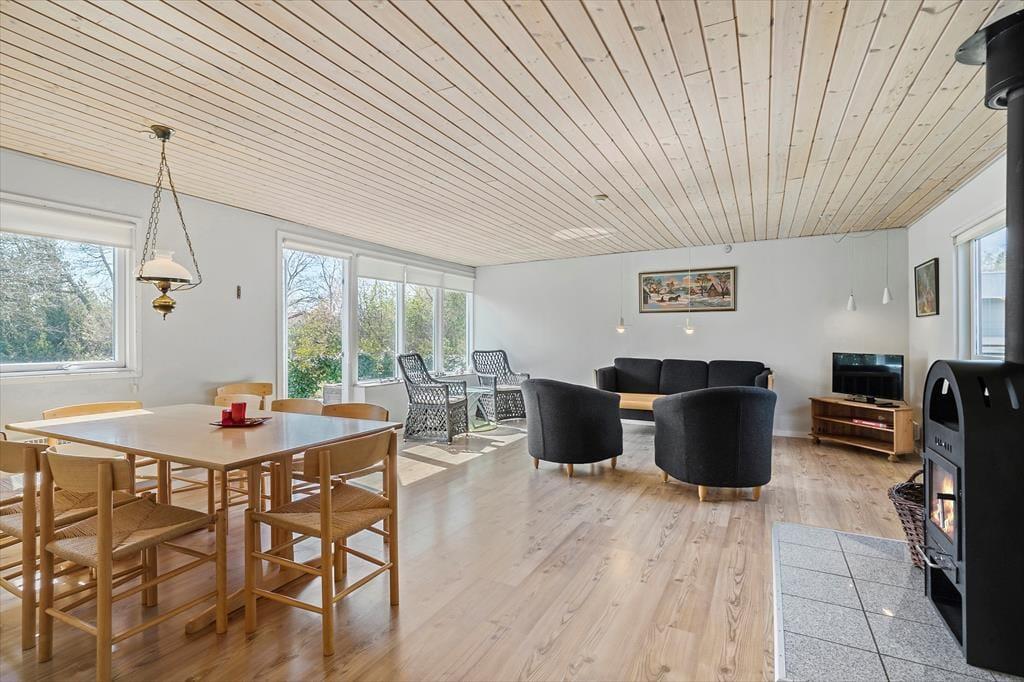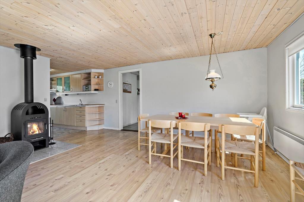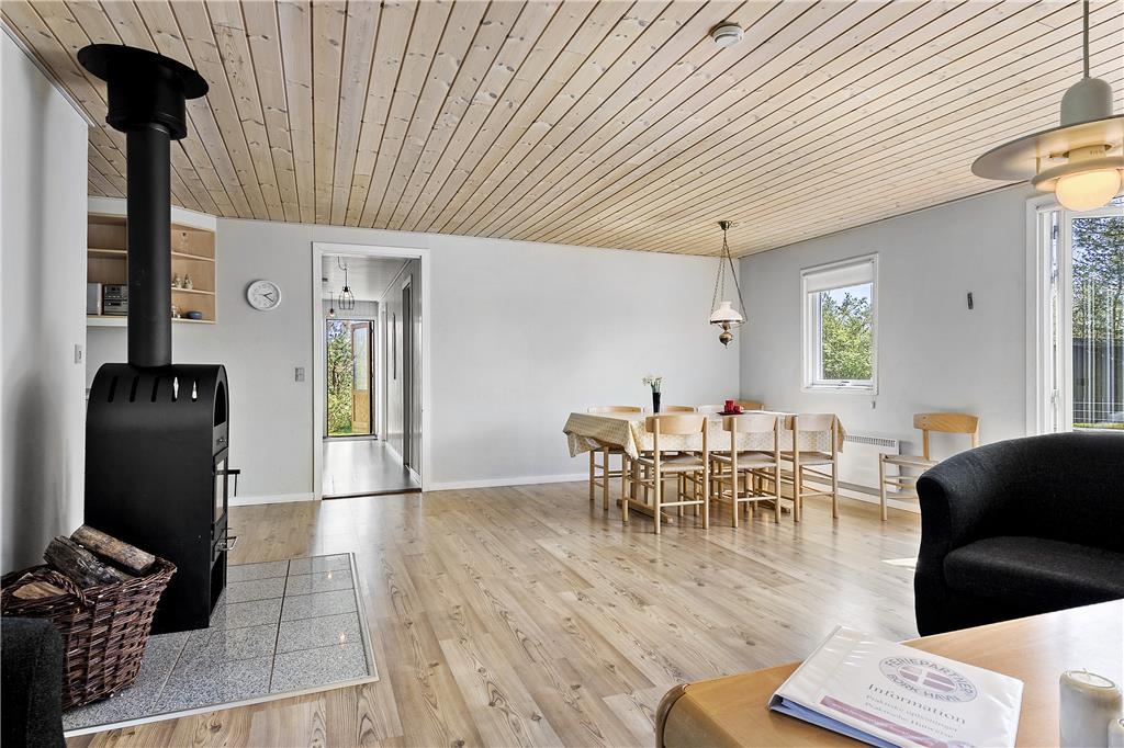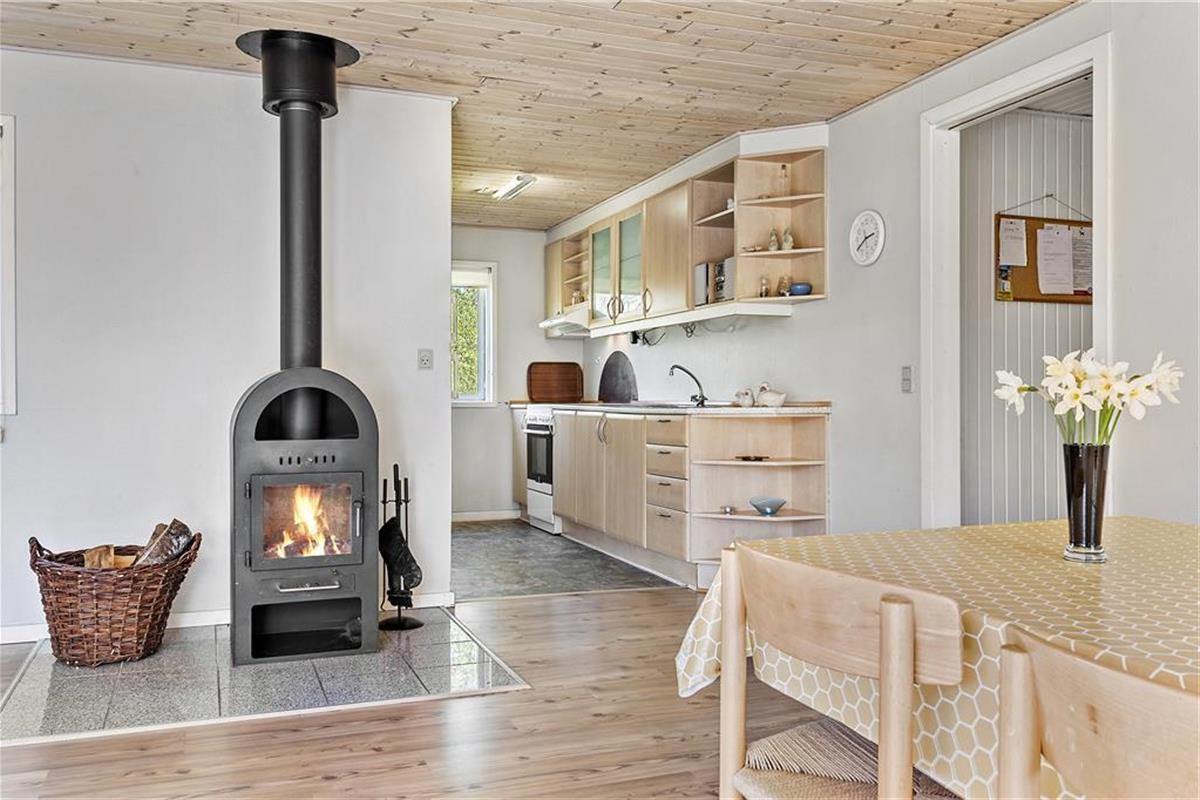 Die 90 m² umfassende Wohnfläche des Mietobjektes wurde gut ausgenutzt und wohl durchdacht aufgeteilt. Somit beherbergt dieses Ferienhaus problemlos bis zu sechs übernachtende Gäste. Zwei der Schlafzimmer empfangen Sie mit je einem Doppelbett. Das dritte Schlafzimmer beinhaltet zwei Einzelbetten. Im Wohnraum sorgt ein romantisch knisternder Kaminofen für behagliche Wärme und ein Maximum an echter dänischer Ferienhausstimmung. In Verlängerung des Wohnraumes ist die gut ausgestattete Küche platziert. In dieser erleichtern Ihnen unter anderem eine Mikrowelle, ein Geschirrspüler sowie eine Waschmaschine und ein Wäschetrockner die Erledigung Ihrer alltäglichen Aufgaben. Wenn Sie vom Surfen, von einem langen, interessanten Ausflugstag oder auch einem erfrischenden Bad im Fjord heimkehren, können Sie sich wunderbar in der hauseigenen Sauna aufwärmen, die müden Muskeln entspannen und neue Kräfte schöpfen.